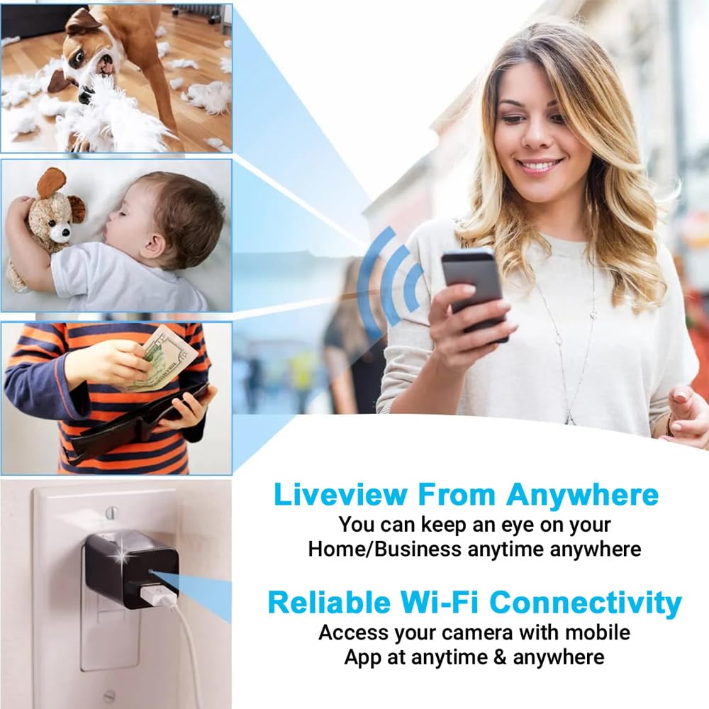 1080P Wi-Fi Mini Spy Camera – USB Charger Hidden Camera with App Control & Live View, SD Card Storage – Supports Up to 256GB Card – Home & Office Security Surveillance Camera (E4SPY-USB02)