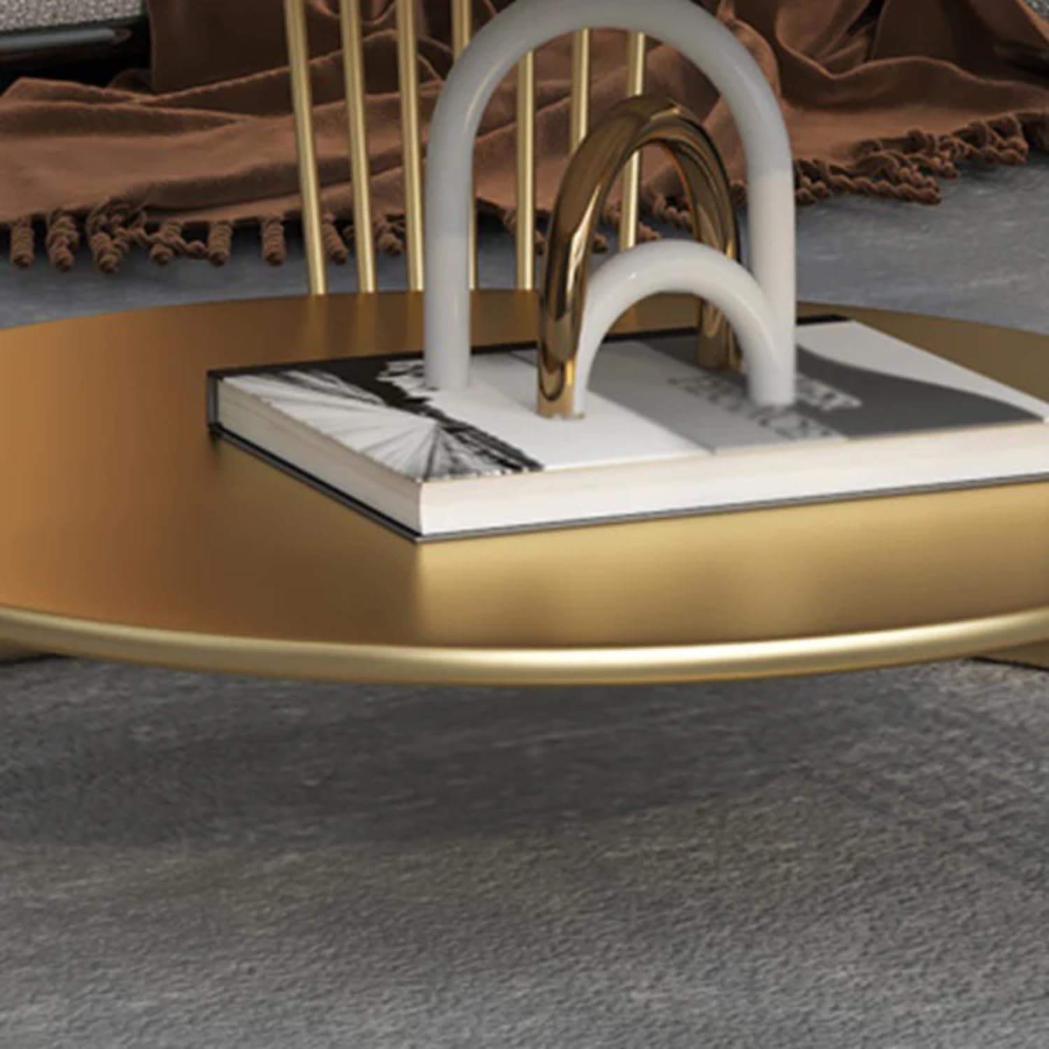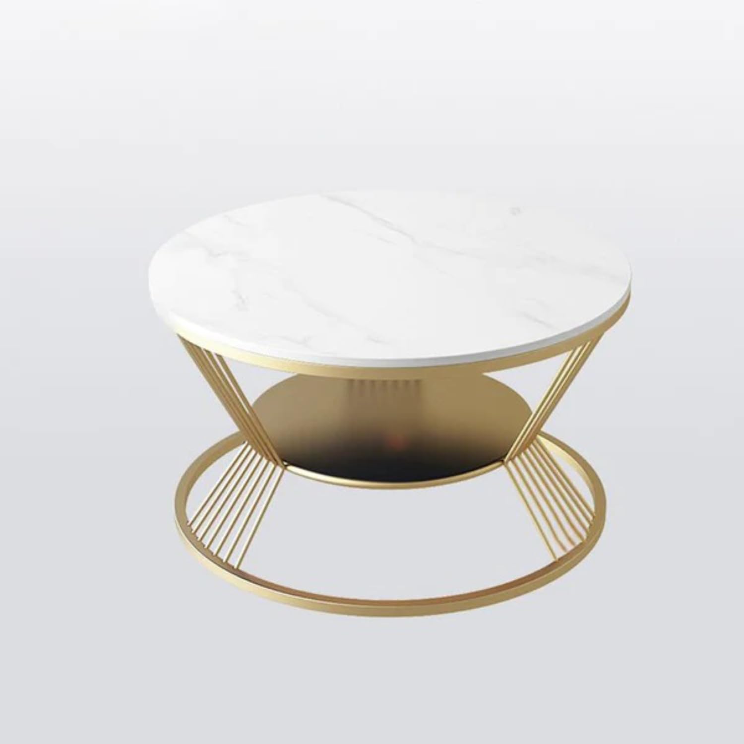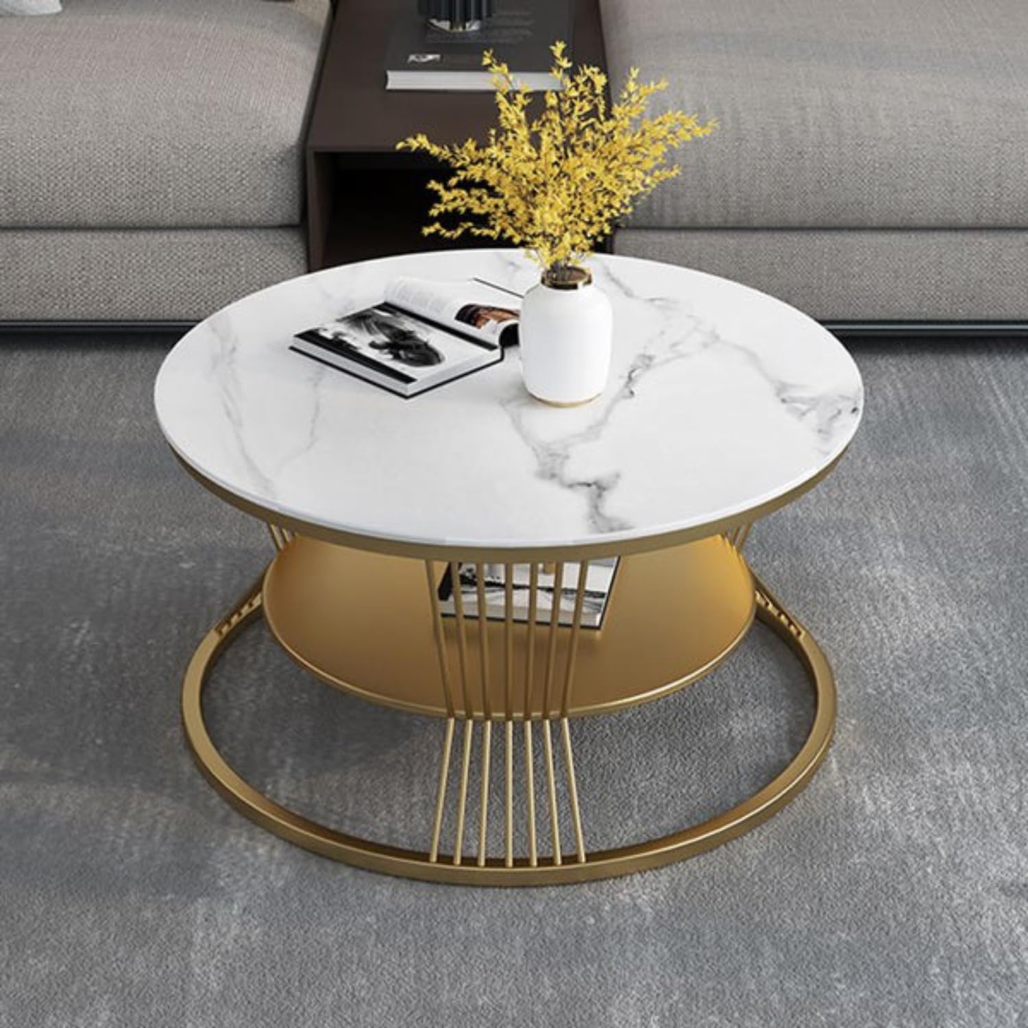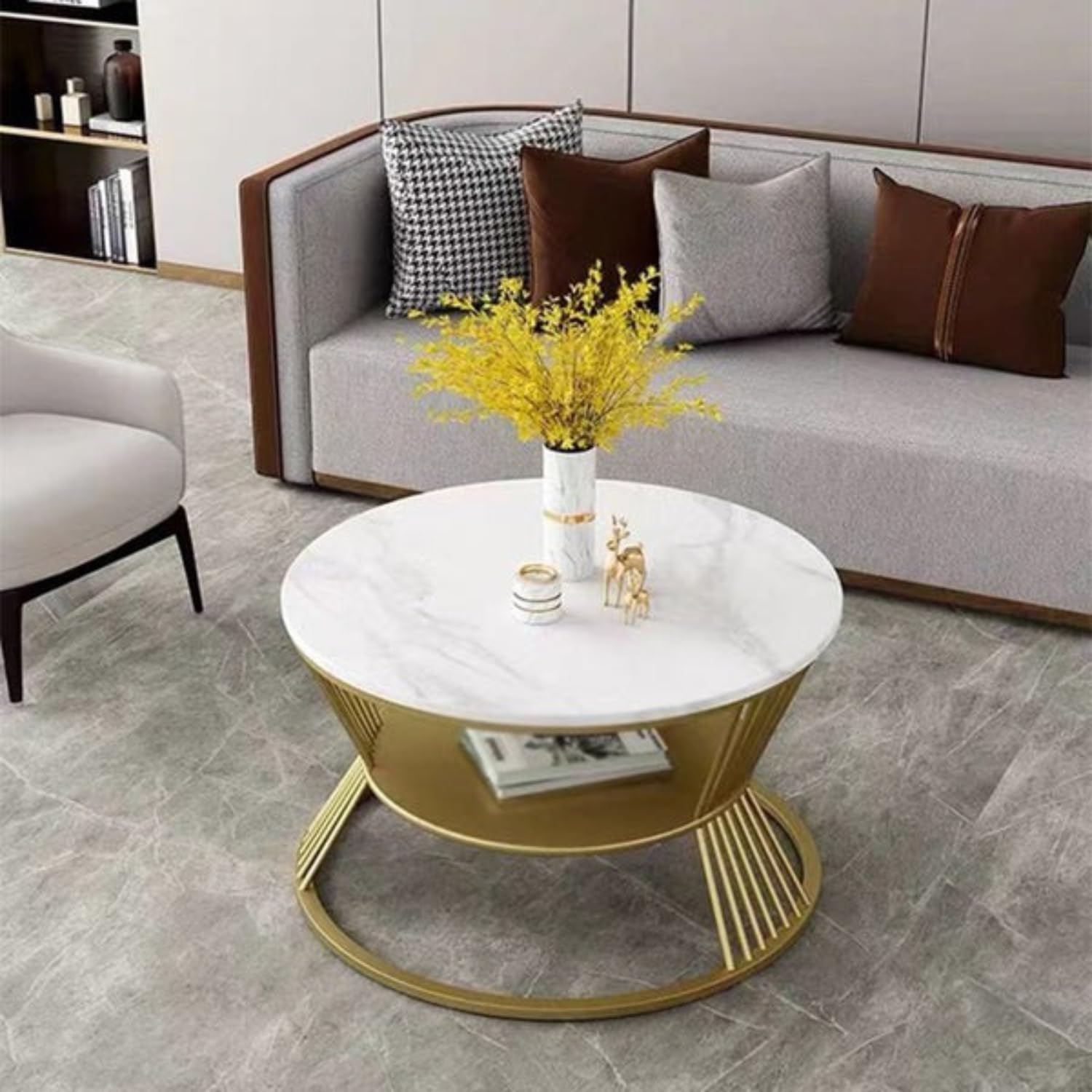 2-Tier Round Coffee Table with Open Storage Shelf for Living Room Wooden Tabletop Metal Frame Simple & Modern End Table for Small Space Center Table for Living Room Golden and White