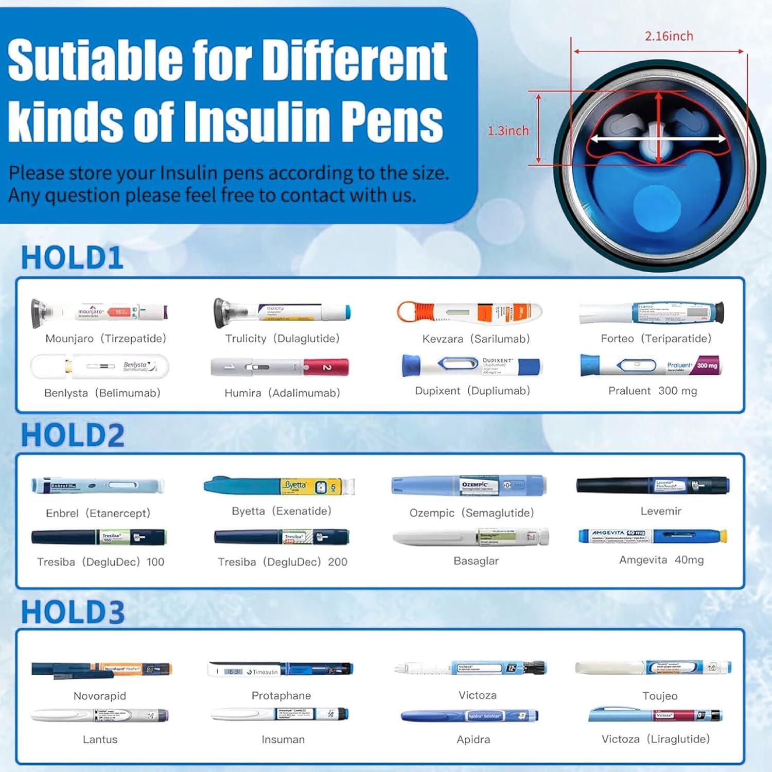 【Satisfy your Needs 】The insulin travel cooler can storage 3- 6 Insulin pens in normal size, that can sufficiently accommodate all your needs, starting from most basics trips around the city to the most extreme condition environments. The Insulin travel case medication organizer you need.