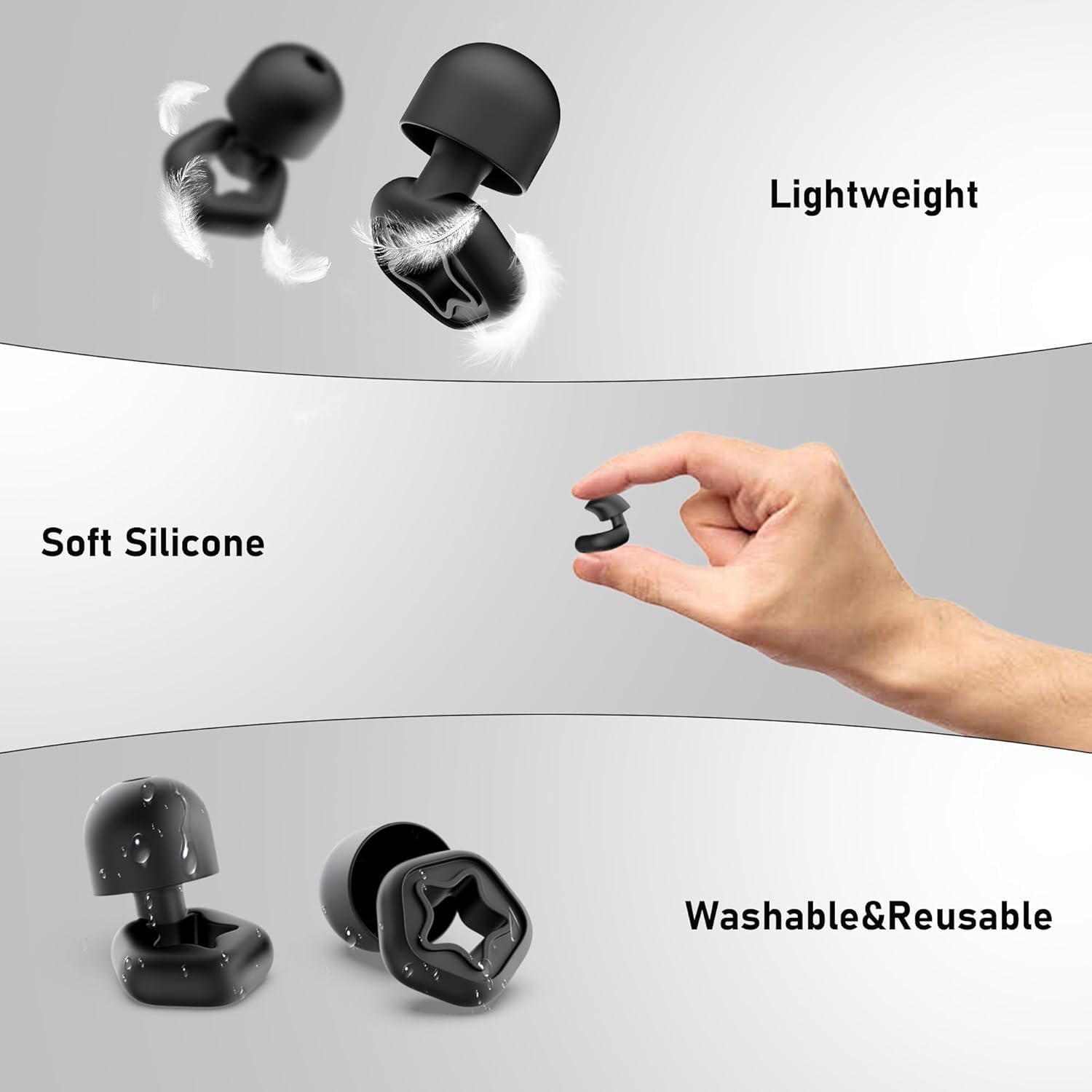👂【Soft&Integrated Design】The lightweight and soft sleeping ear plugs made Integrated design of ultra-soft silicone material,and there is no need to frequently replace the ear tips. It does not stick to dust, has a delicate touch, and can be easily stretched without deformation. In addition,the ear plugs for sleeping noise cancelling can be washable and reusable, ensuring long-term use and sustainable durability.