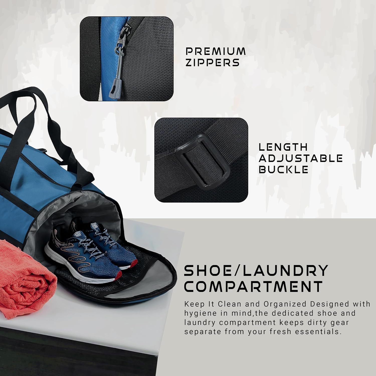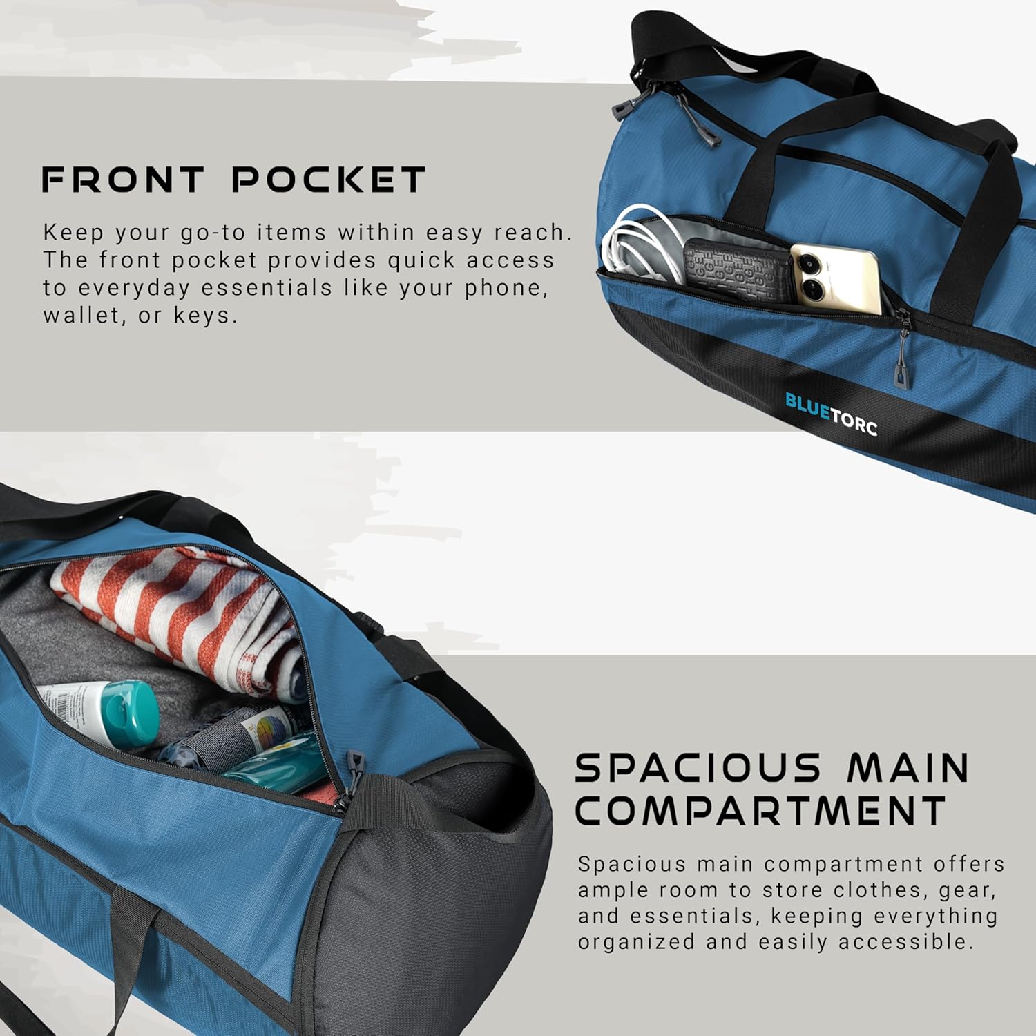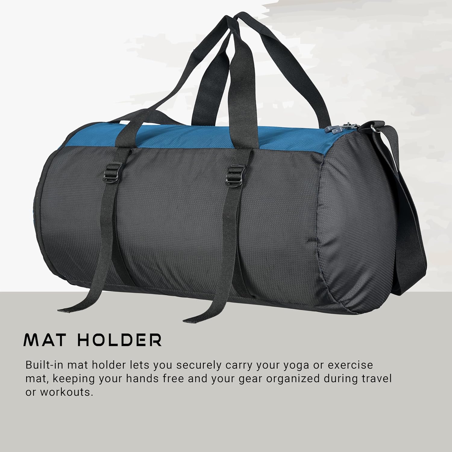 The Blue Torc 30L Duffle Gym Bag is a multi-purpose, durable, and stylish sports bag designed for gym workouts, travel, and daily use. With two spacious main compartments, it easily fits gym clothes, workout gear, toiletries, and travel essentials. The separate shoe compartment keeps footwear away from clean clothes, while the extra quick-access pocket is perfect for storing your phone, wallet, keys, or chargers. This unisex duffle bag comes with a dedicated yoga mat holder, making it ideal for yoga enthusiasts and fitness lovers. The adjustable shoulder strap, side sling, and padded handle ensure maximum comfort and easy portability. Made from high-quality, water-resistant fabric with a padded bottom for extra protection, this gym and travel bag is built to withstand everyday use. Perfect as a gym bag, sports bag, travel duffle, office commute bag, or weekend bag, the Blue Torc 30L is a reliable choice for men and women. Its sleek design, organized compartments, and durable build make it a must-have for fitness routines, business trips, and short getaways. Backed by a 1-year warranty, this bag combines functionality, style, and long-lasting durability in one.