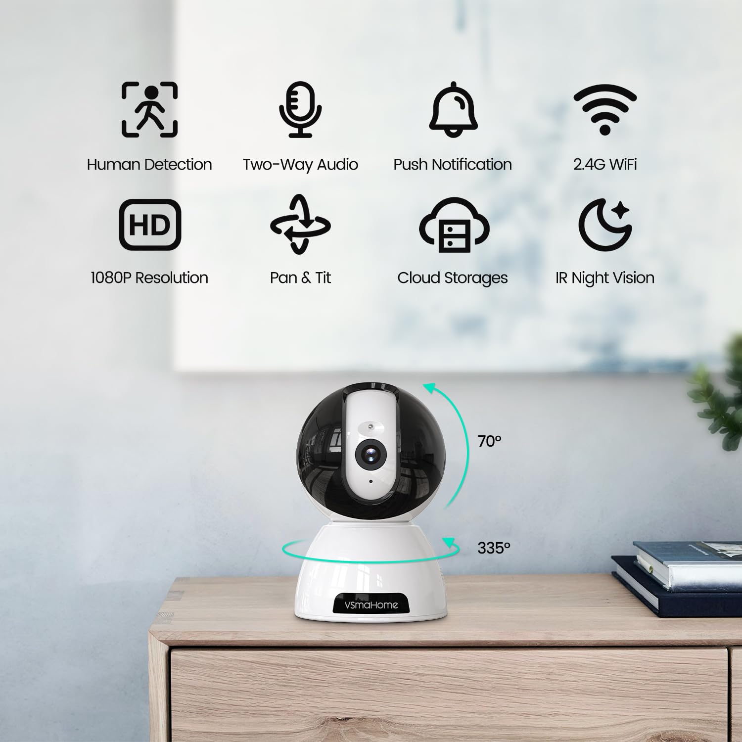 VSmahome surveillance camera requires no installation, is easy to use, plug and play