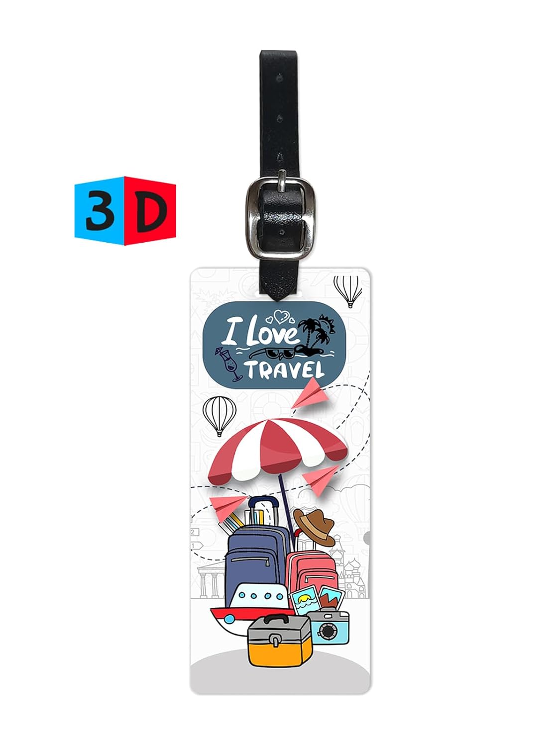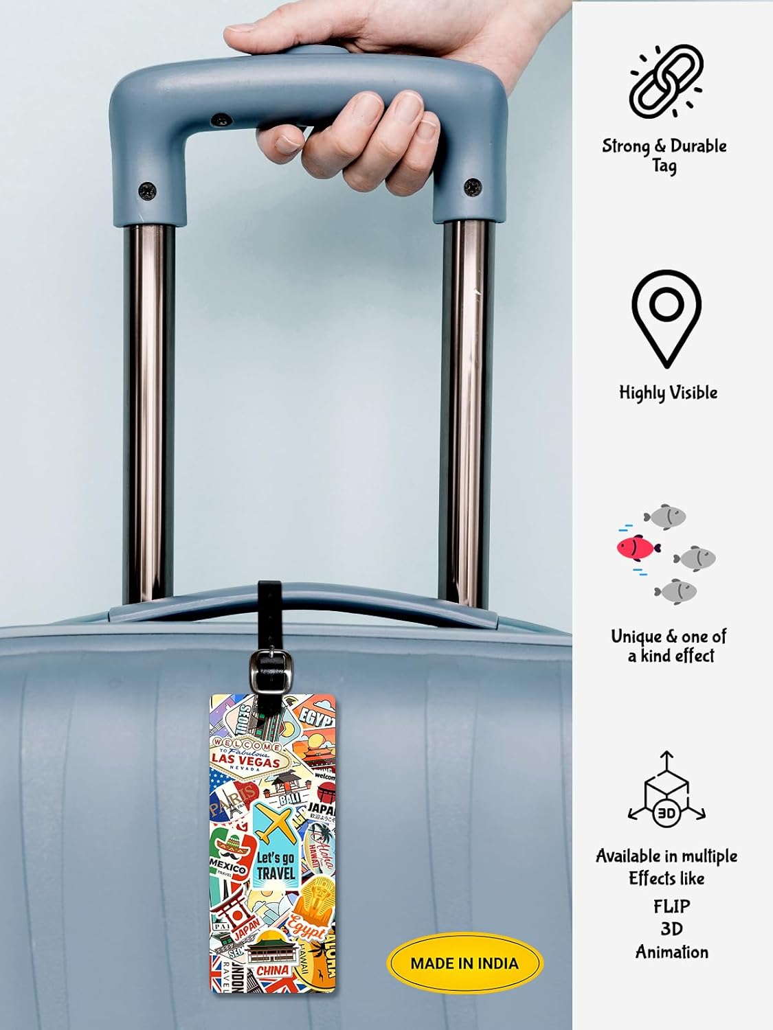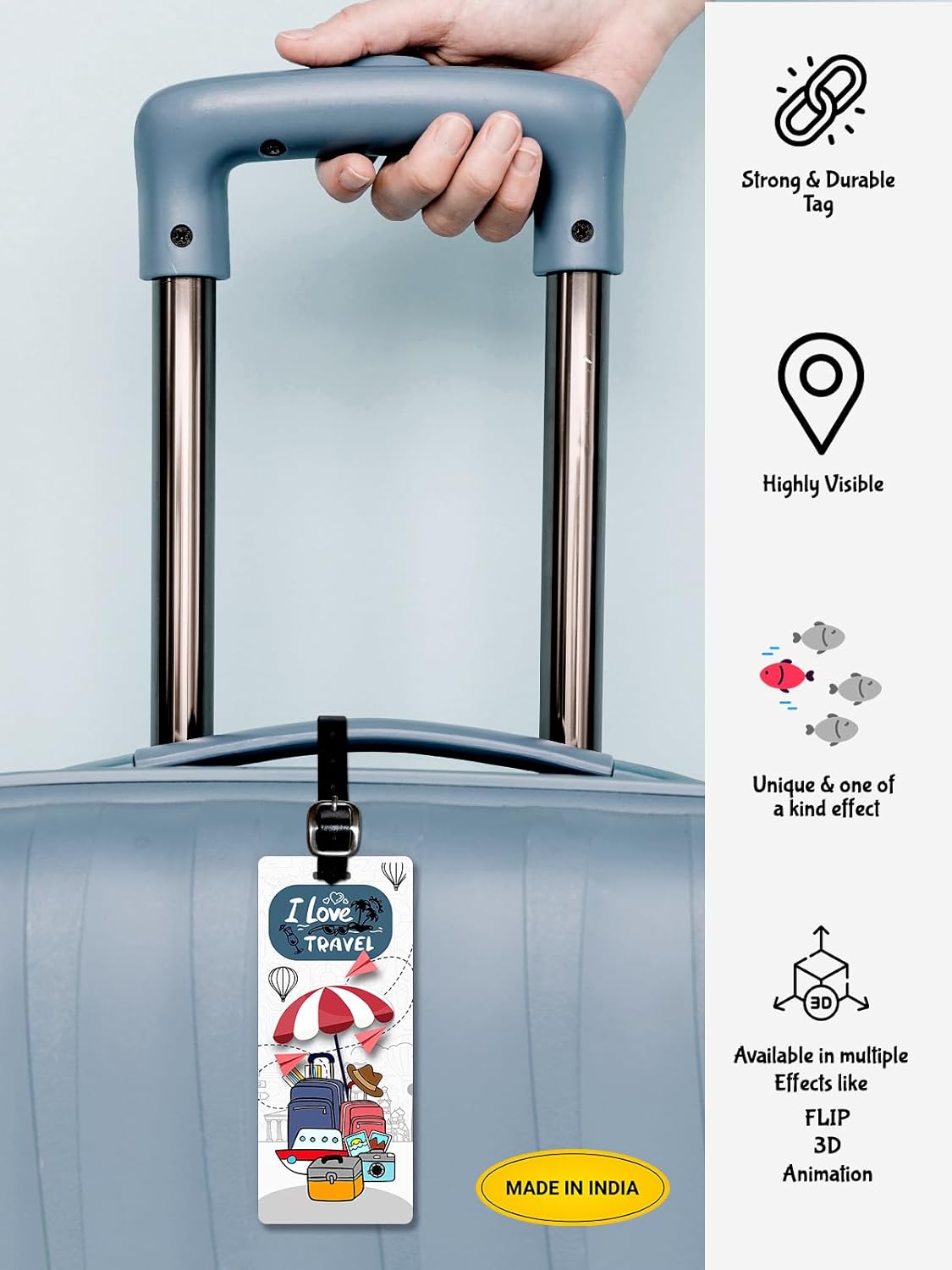 3D Lenticular Luggage Tag Long Set of 2 | Stamp Sticker + I Love Travel | Luggage/Bag/Travel ID Label Tags for Suitcase & School Bags, 2 Labels