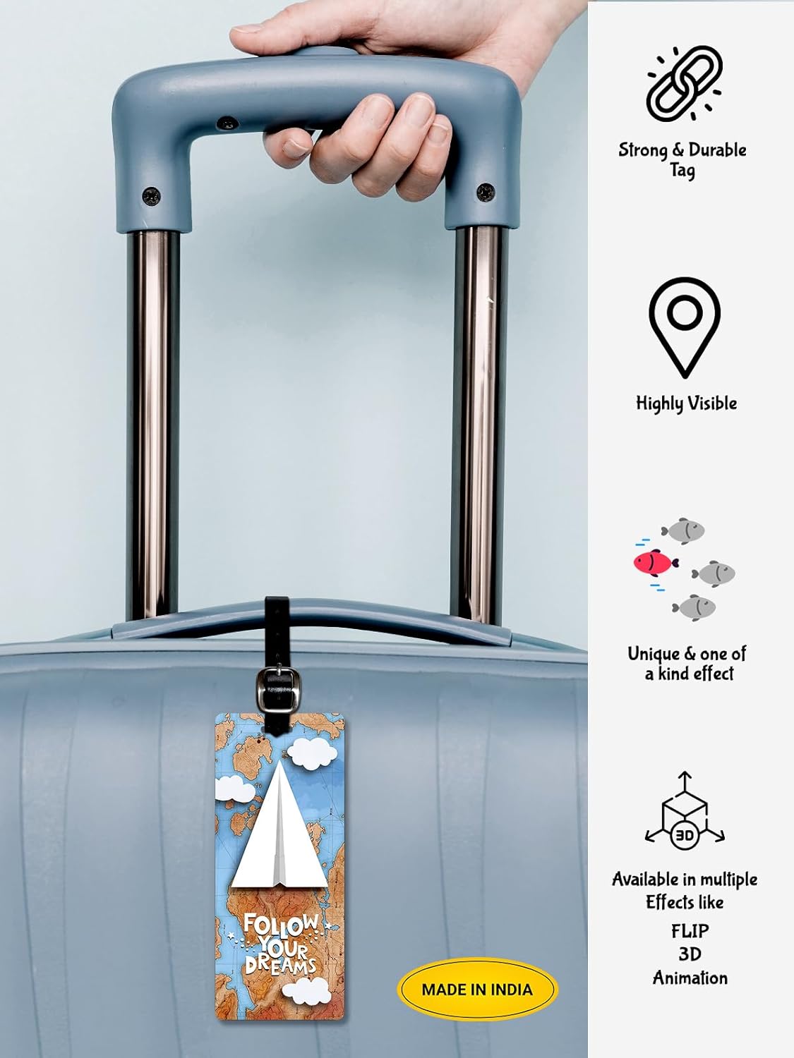 3D Lenticular Luggage Tag Long Single Piece | Paper Plane Motivational Quote | Luggage/Bag/Travel ID Label Tags for Suitcase & School Bags