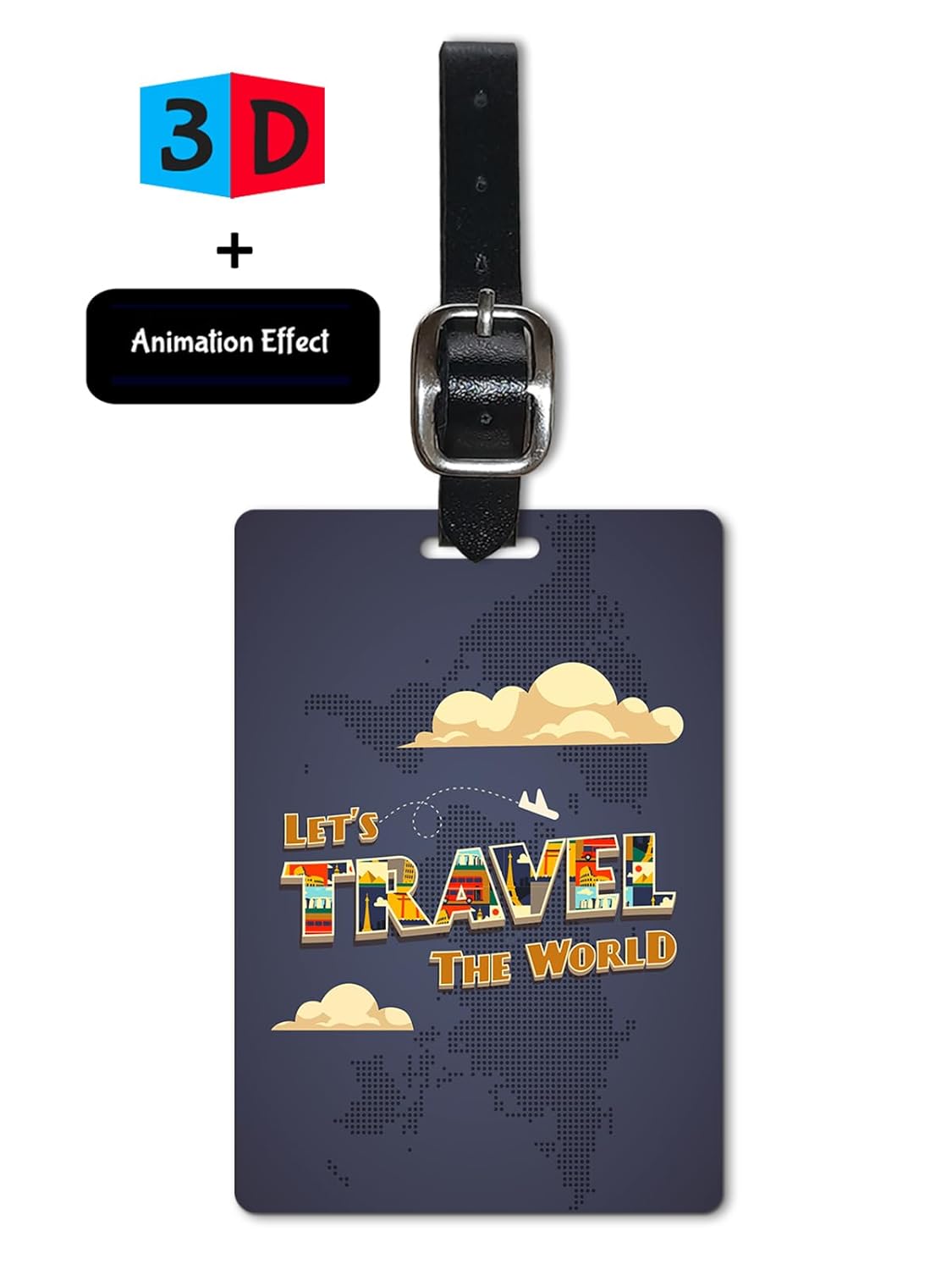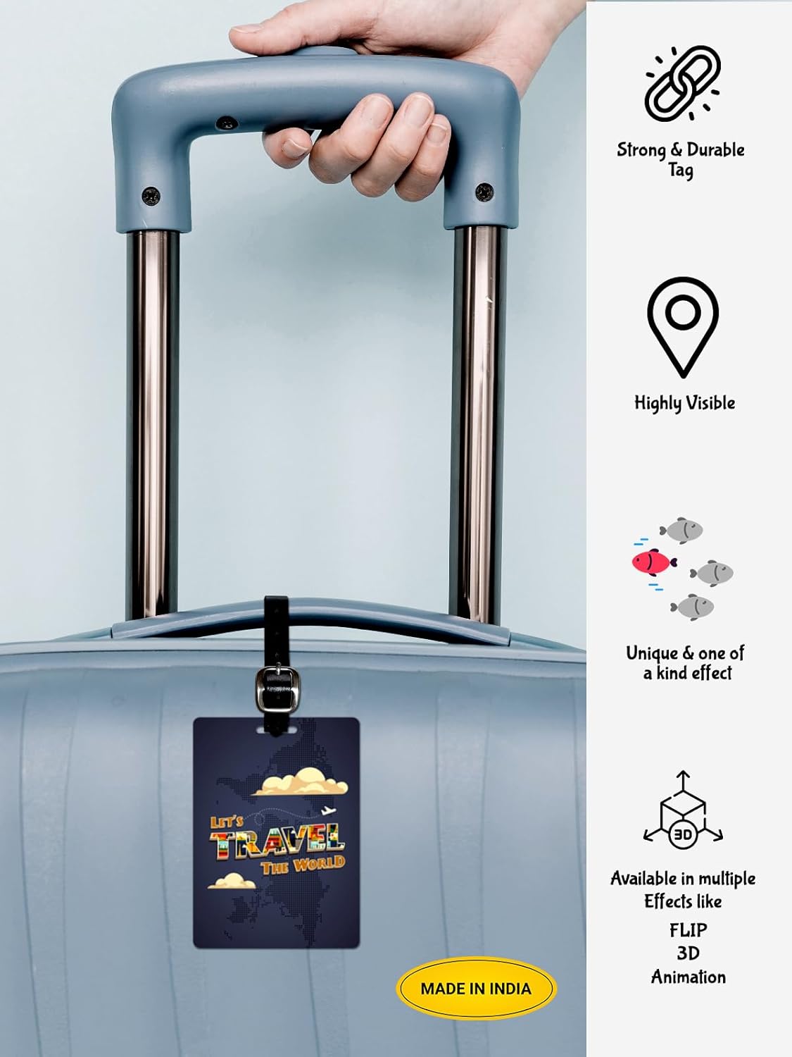 3D Lenticular Luggage Tag Set of 2 | Travel The World Animated Plane | Luggage/Bag/Travel ID Label Tags for Suitcase & School Bags
