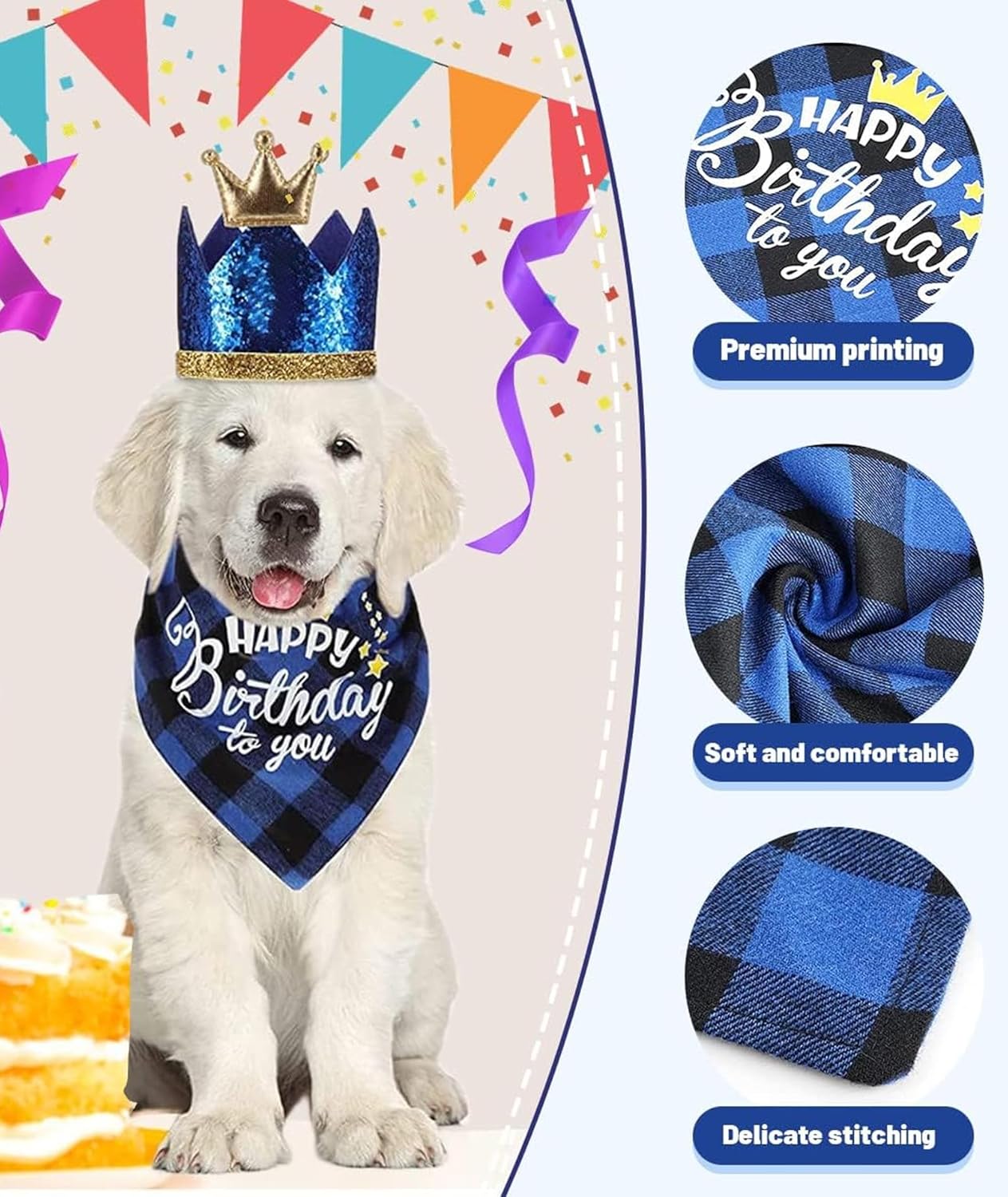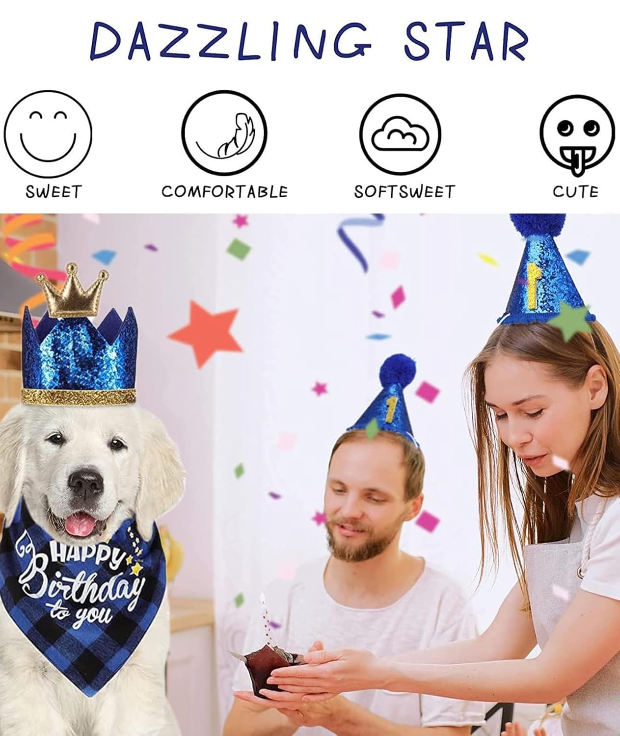 Premium Birthday Set:Includes three stylish dog birthday decorations featuring a comfortable dog hat and festive birthday caps;Made from high-quality materials for durability and comfort during celebrations