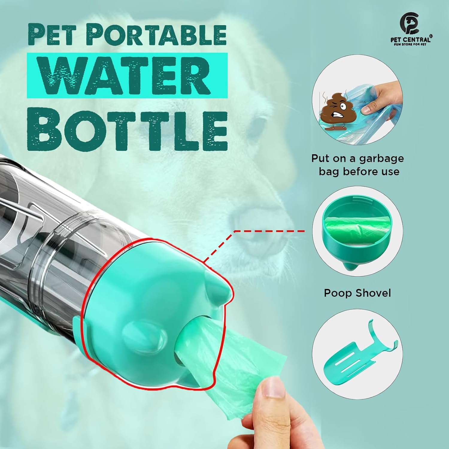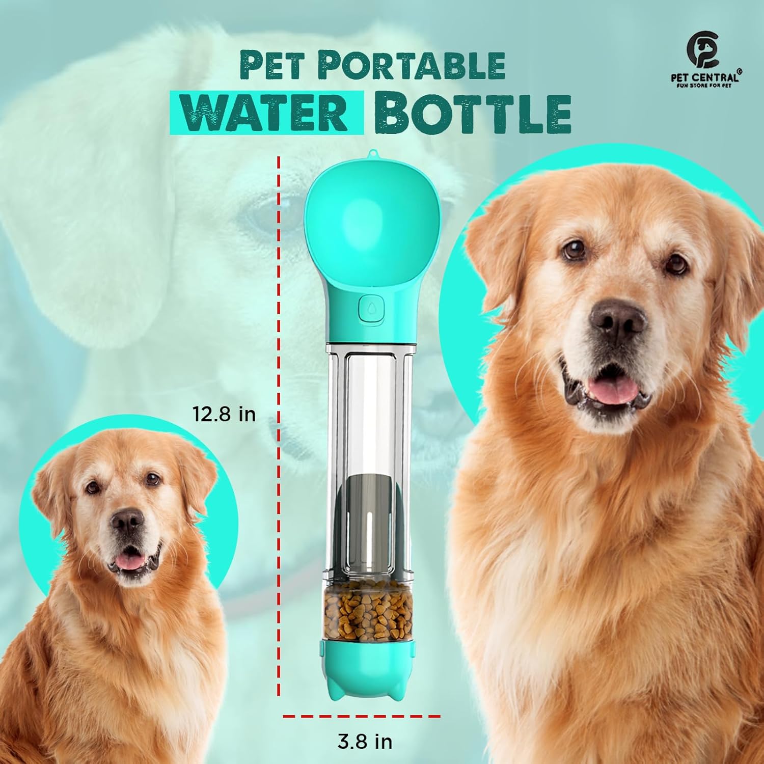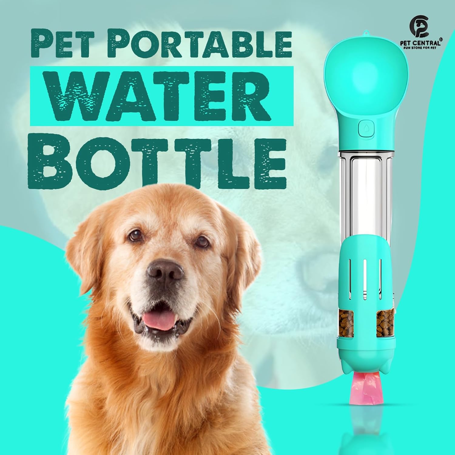 [4-IN-1 DESIGN] – Perfect for keeping your pet hydrated and fed on the go with the Pet Central Dog Water Dispenser. This innovative water dispenser for dog features a wide water bowl, 500ml water tank, food storage compartment, and a built-in waste bag dispenser with a poop scoop.