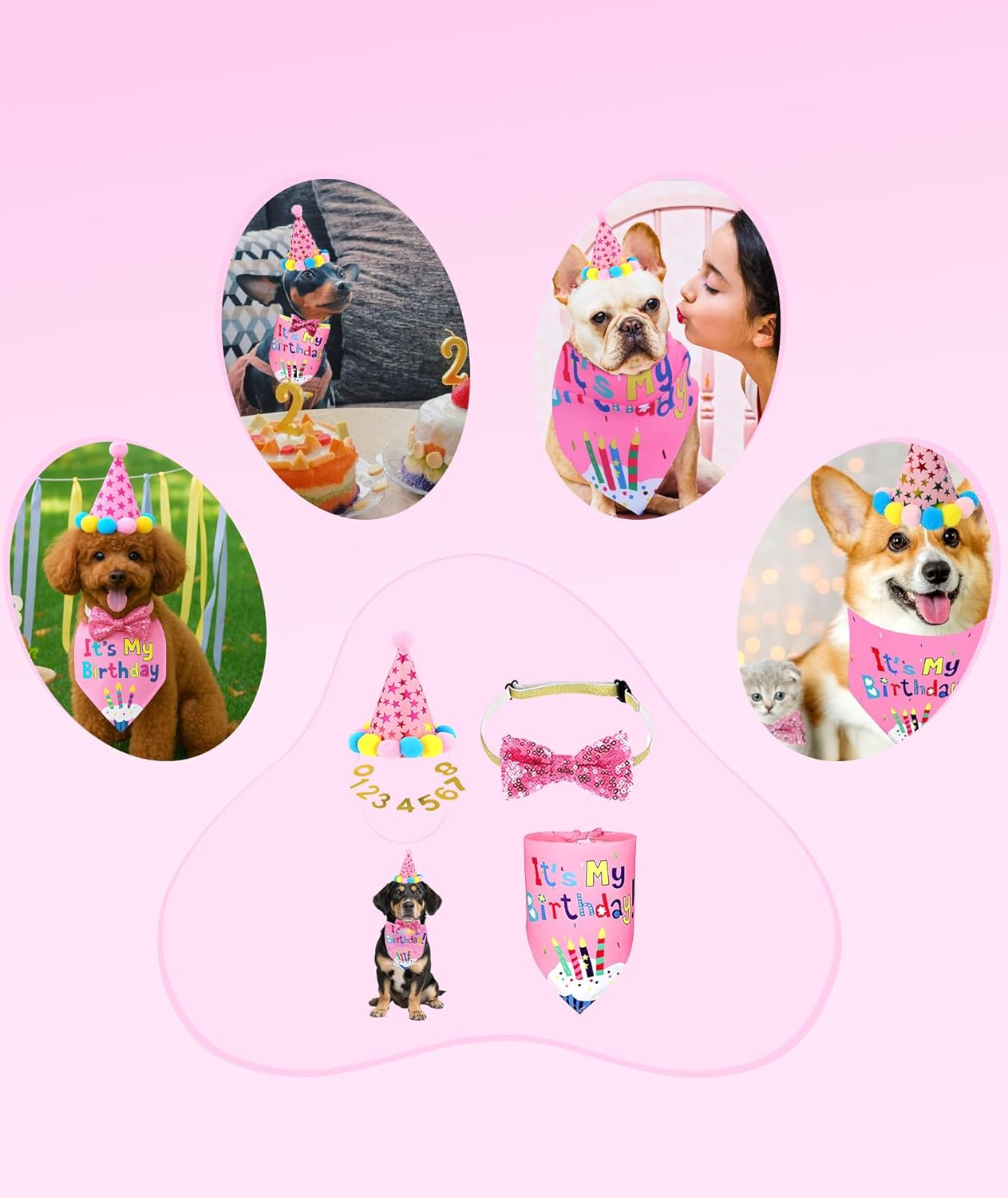 4 Pcs Dog Birthday Decorations, Pink Set with Birthday Cap, Dress and Party Accessories, Fun and Festive for Pet Celebrations, Photo Sessions and Social Media