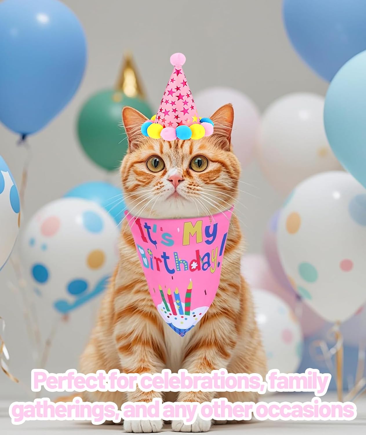 【Adjustable and Comfortable】The dog cap and dress feature elastic straps for a secure fit. Made with a soft materials, it ensures comfort for small to medium dogs, making it ideal for extended wear during birthday party fun.