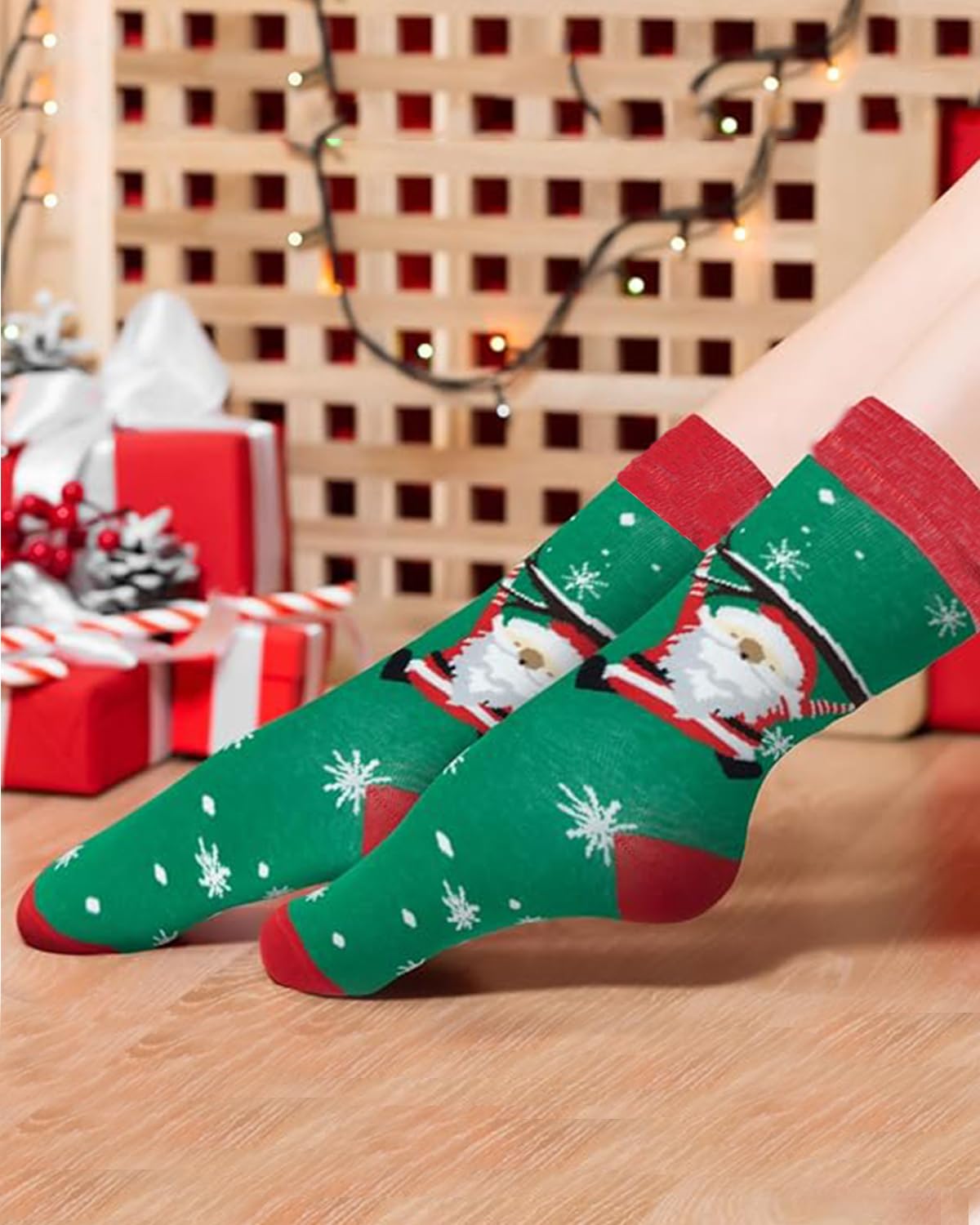 5Pairs Christmas Socks for Women and Men, Santa Socks Christmas, Festive Holiday Socks (Santa Red, Santa Green, Reindeer, Snowman, Gingerbread Man), Christmas Colourful Socks for Men Festive Christmas Socks: Celebrate the holiday season with this vibrant set of 5 Christmas socks featuring classic designs like Santa, reindeer, snowman, and gingerbread man; Perfect for spreading holiday cheer High-Quality Material: Made from hight quality, these Christmas socks for women and men ensure a cozy fit throughout the festive season; Ideal for daily wear and holiday gatherings Versatile Holiday Accessory: These Santa socks Christmas edition are great for gifting, holiday parties, or as festive home decor; A must-have for Christmas lovers and families Thoughtful Gift Idea: Packaged as a set of 5, these Christmas socks make a wonderful present for friends, family, or colleagues; Suitable for all ages and occasions Joyful Holiday Spirit: Embrace the festive vibe with these cheerful Christmas socks; Designed to bring smiles and warmth during the holiday season