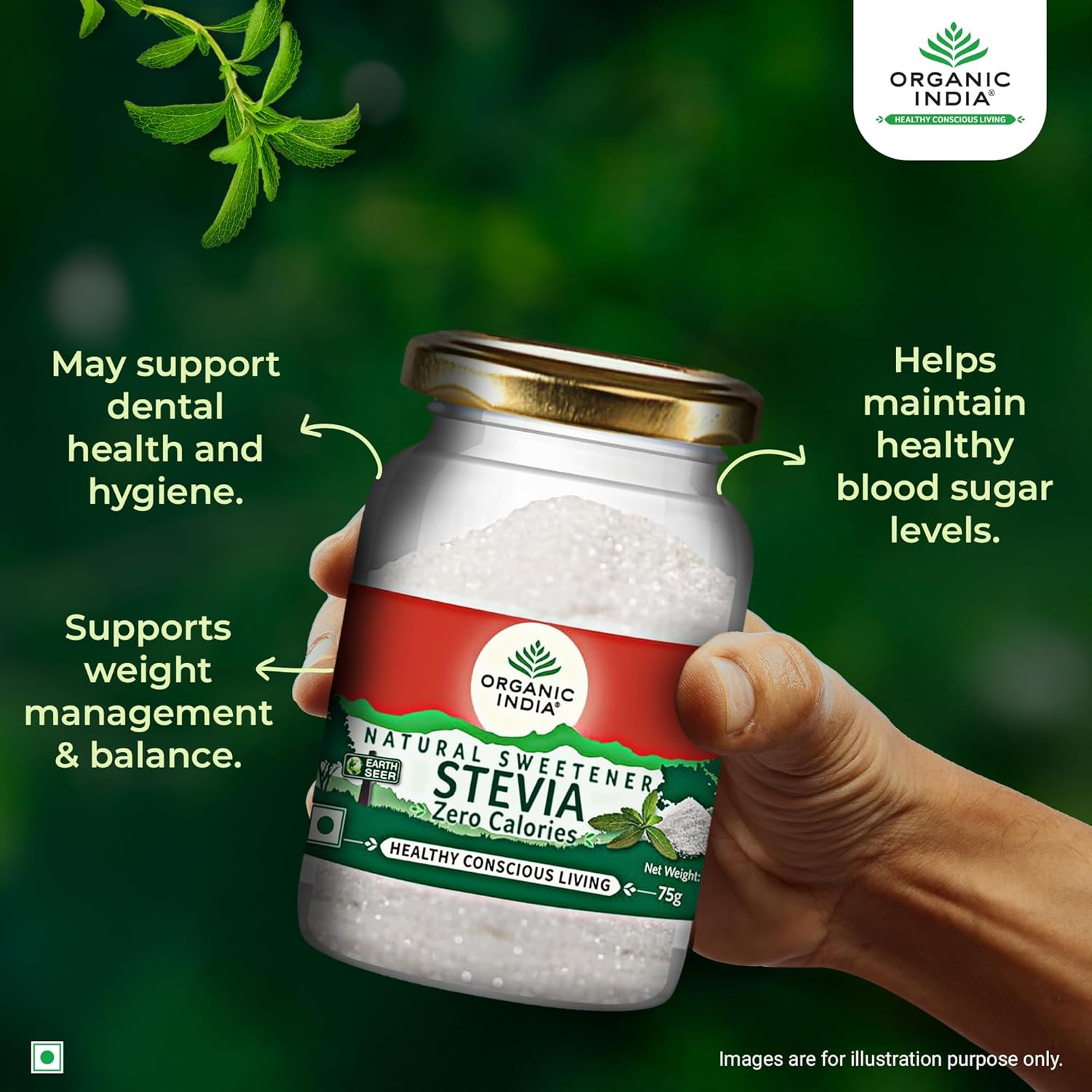 A TATA Product – Organic India Stevia Powder – 75g | Plant-Based Natural Sweetener | Zero Calories | Sugar-Free | Low Glycemic Index