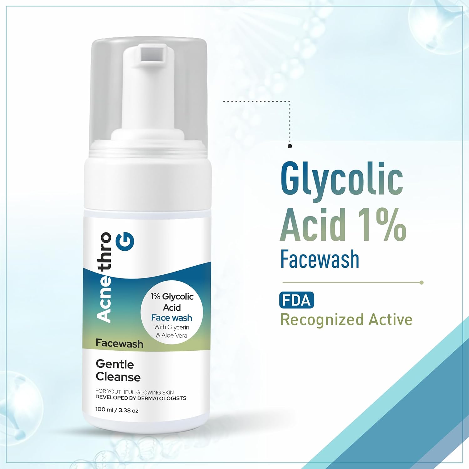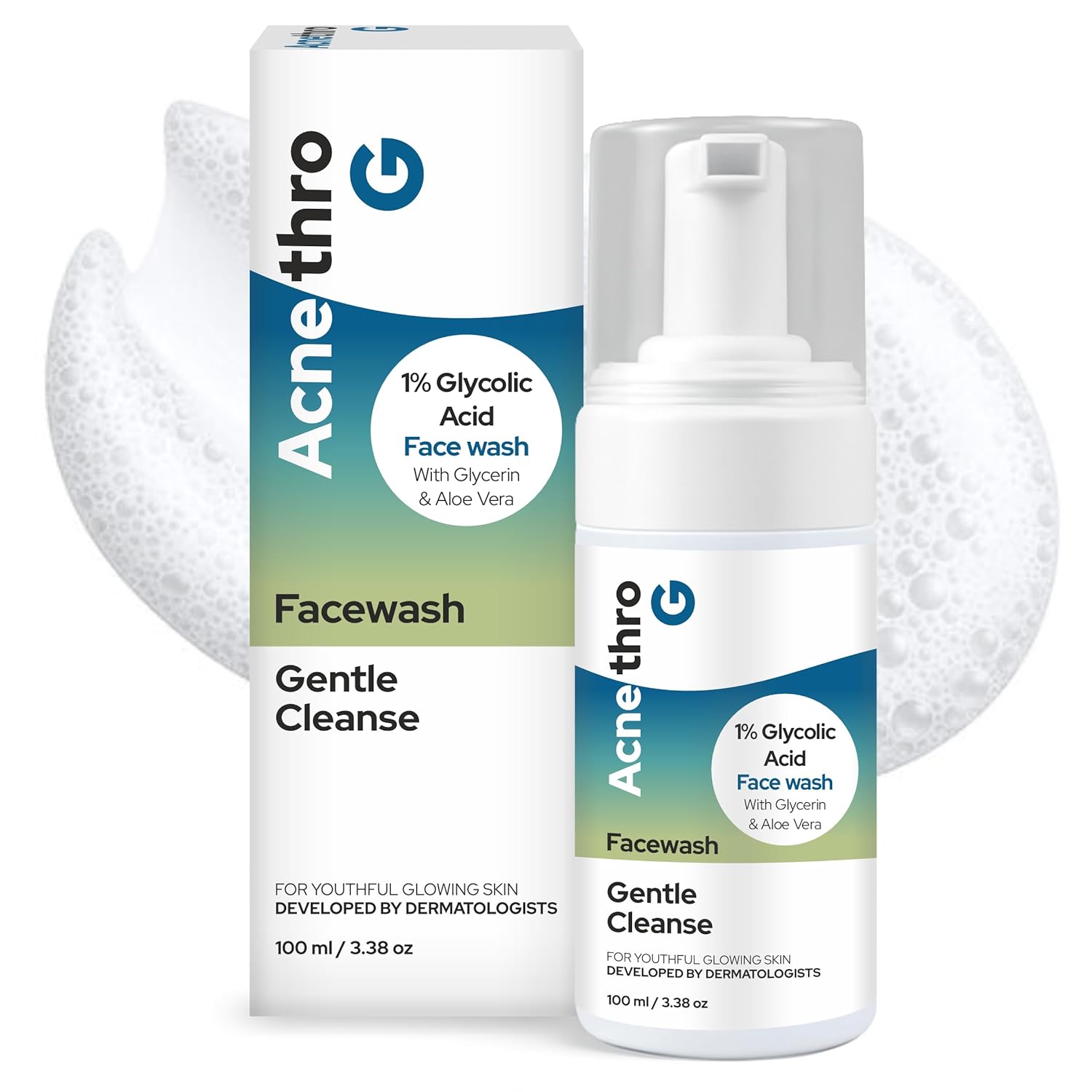 Acnethro G Foaming Face Wash with 1% Glycolic Acid, Aloe Vera & Glycerin – 100ml | Gentle Exfoliating Daily Cleanser for Hydrated & Refreshed Skin | Face Wash for Men & Women