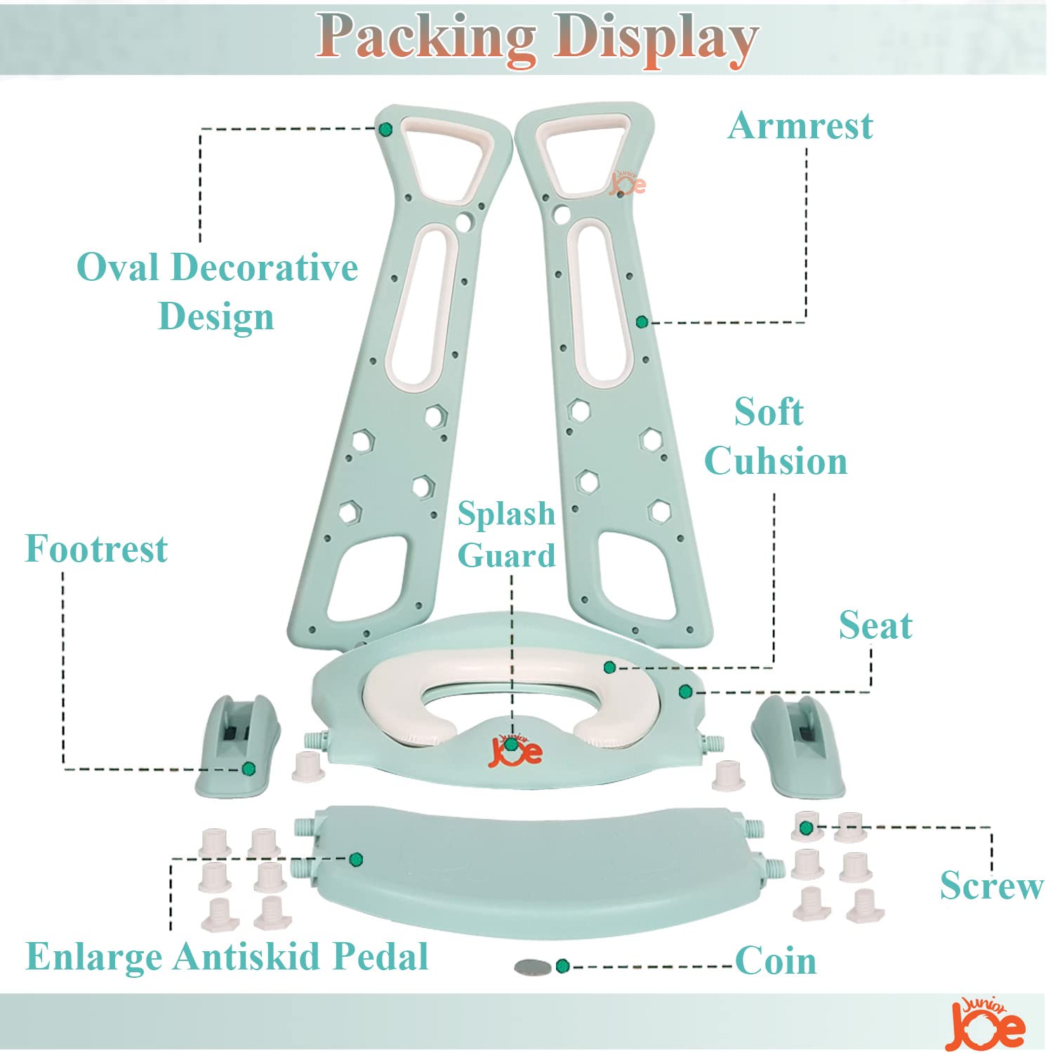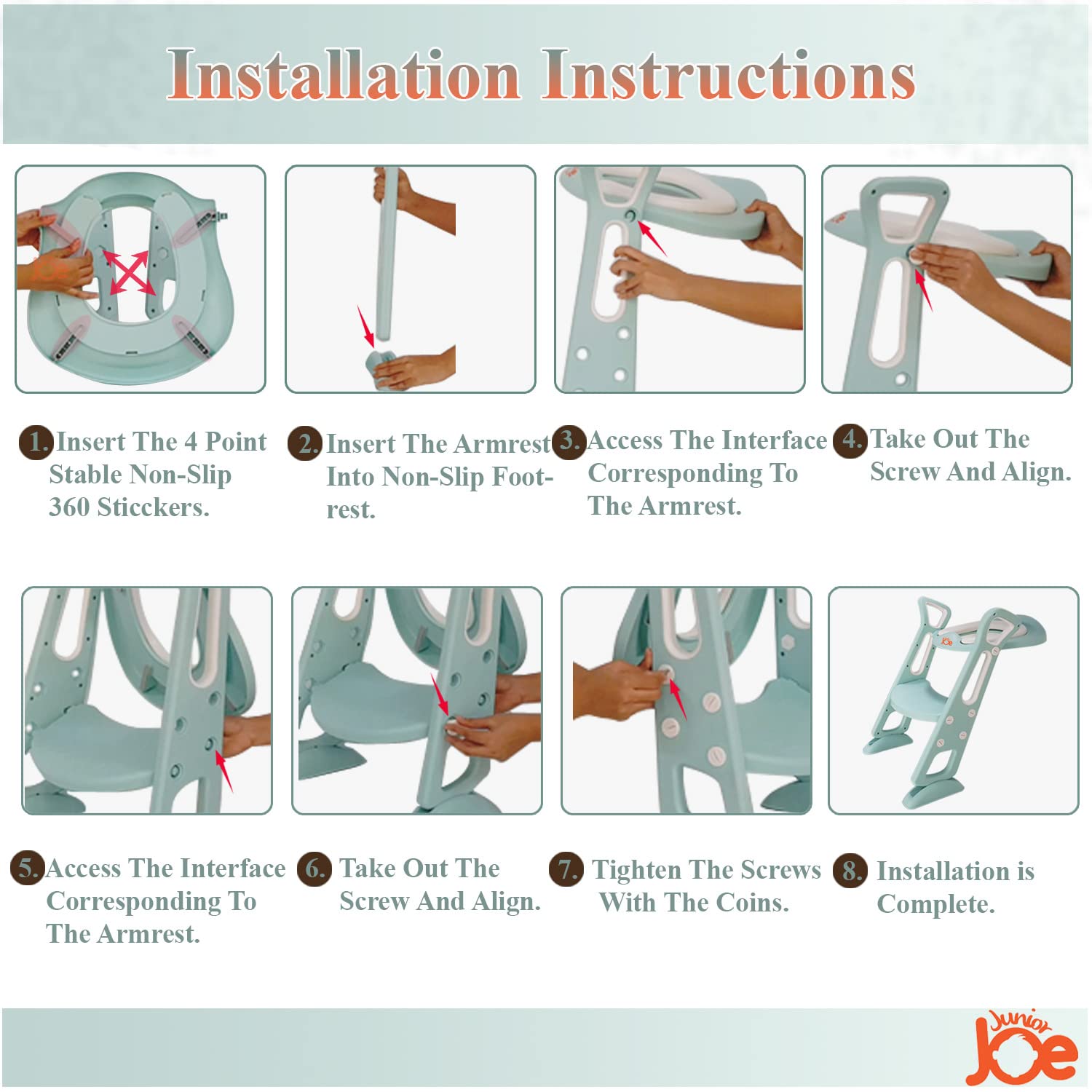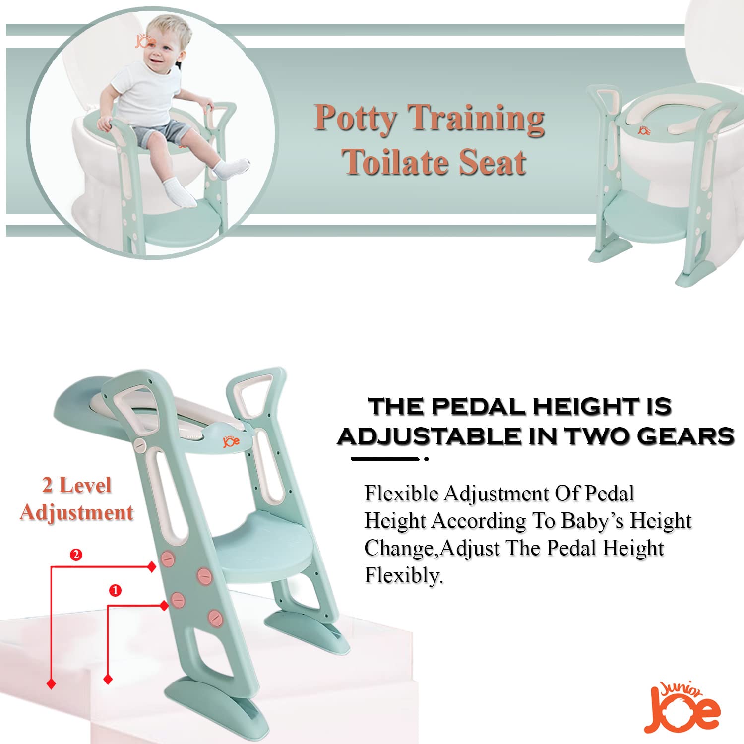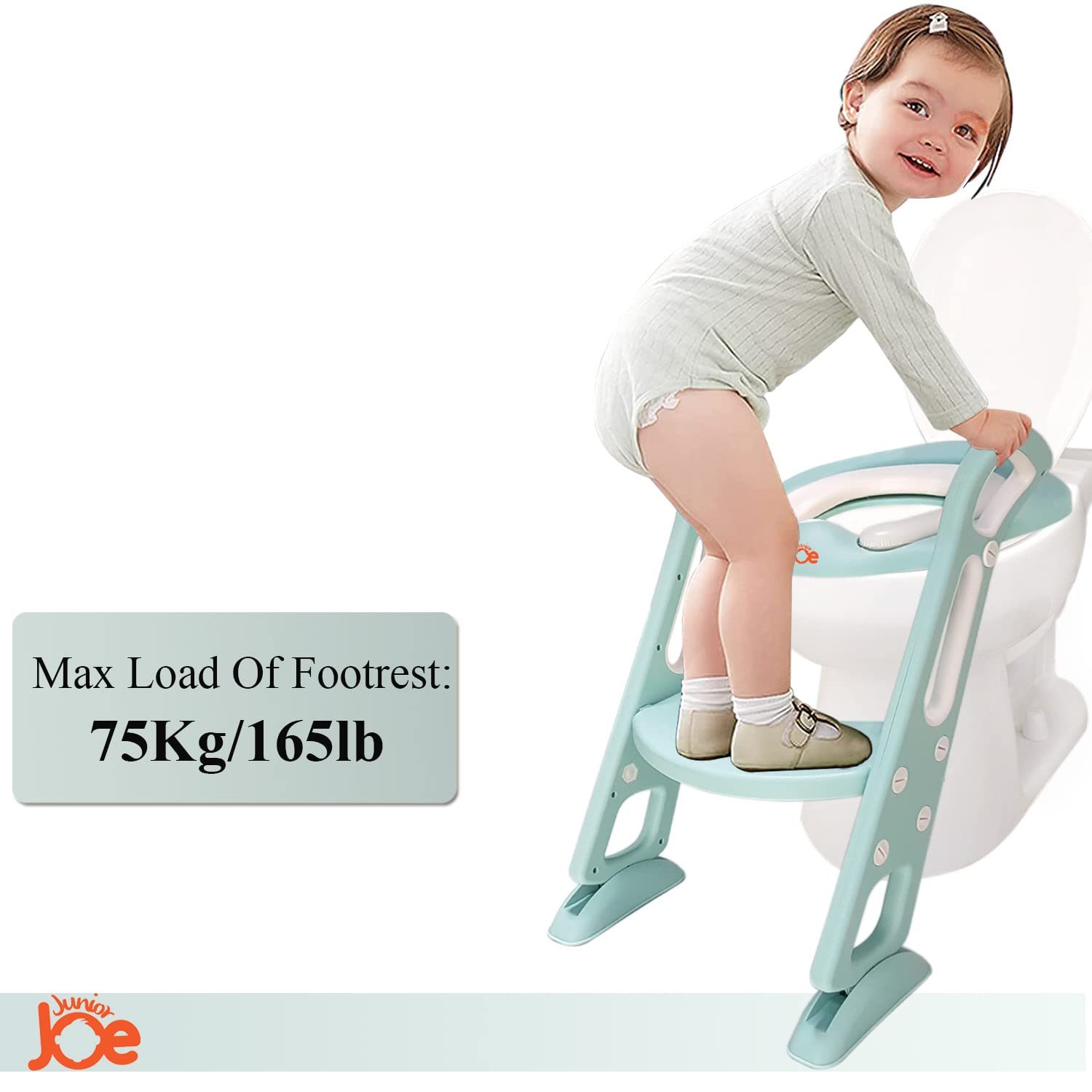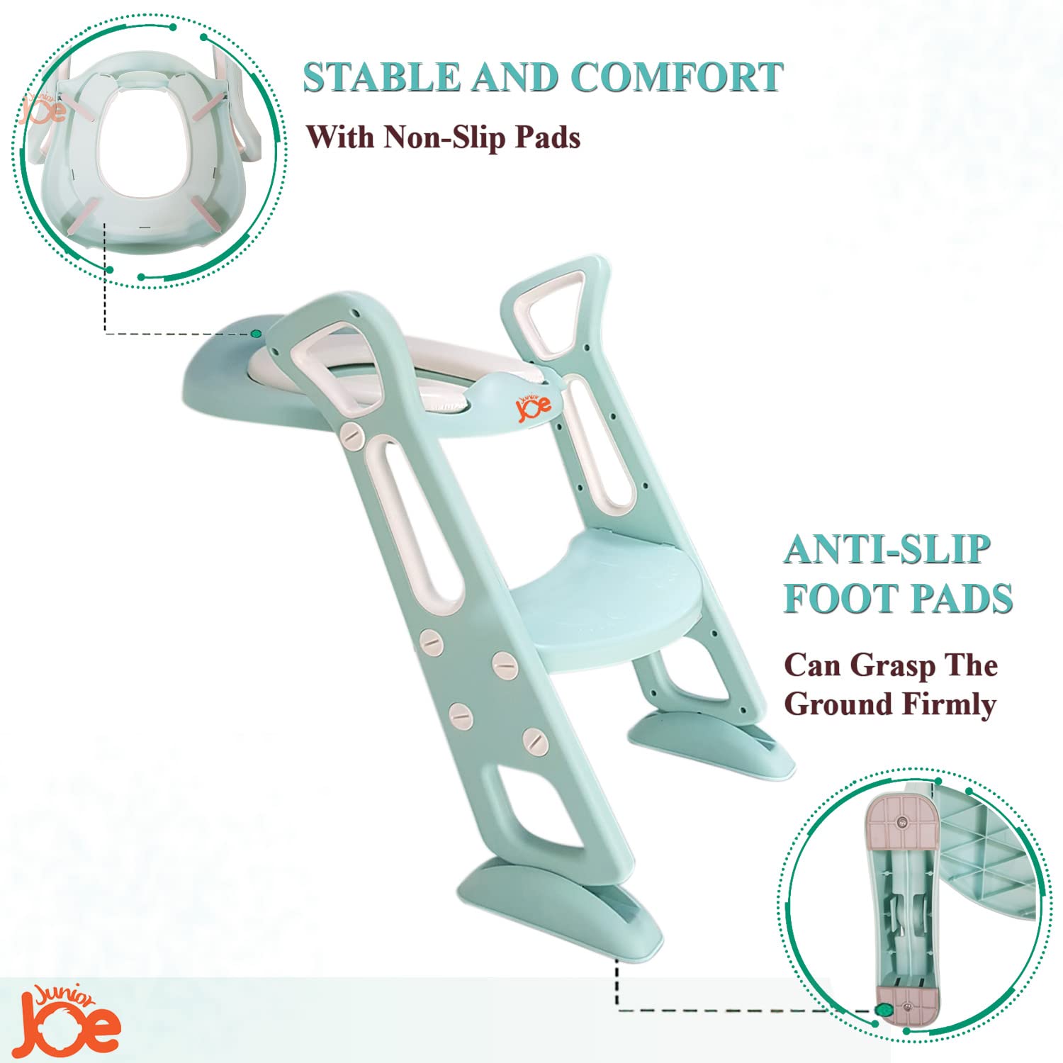 JUNIOR JOE Foldable Potty Training Seat Chair with Handrails, Non-Slip Toilet Potty Stand and Ladder for Kids