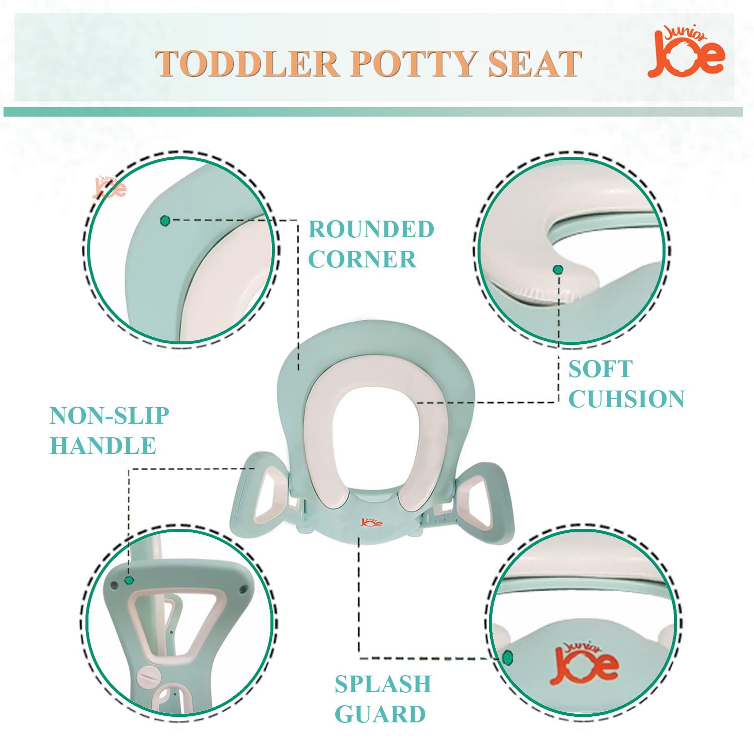 EASY TO CLEAN AND STORE : The potty training can be easily removed, washed, rinsed, dried and replaced; This toddler potty chair is really easy to assemble and was created to make potty training easier; The removable soft cushion seat make cleaning your kids toilet seat
