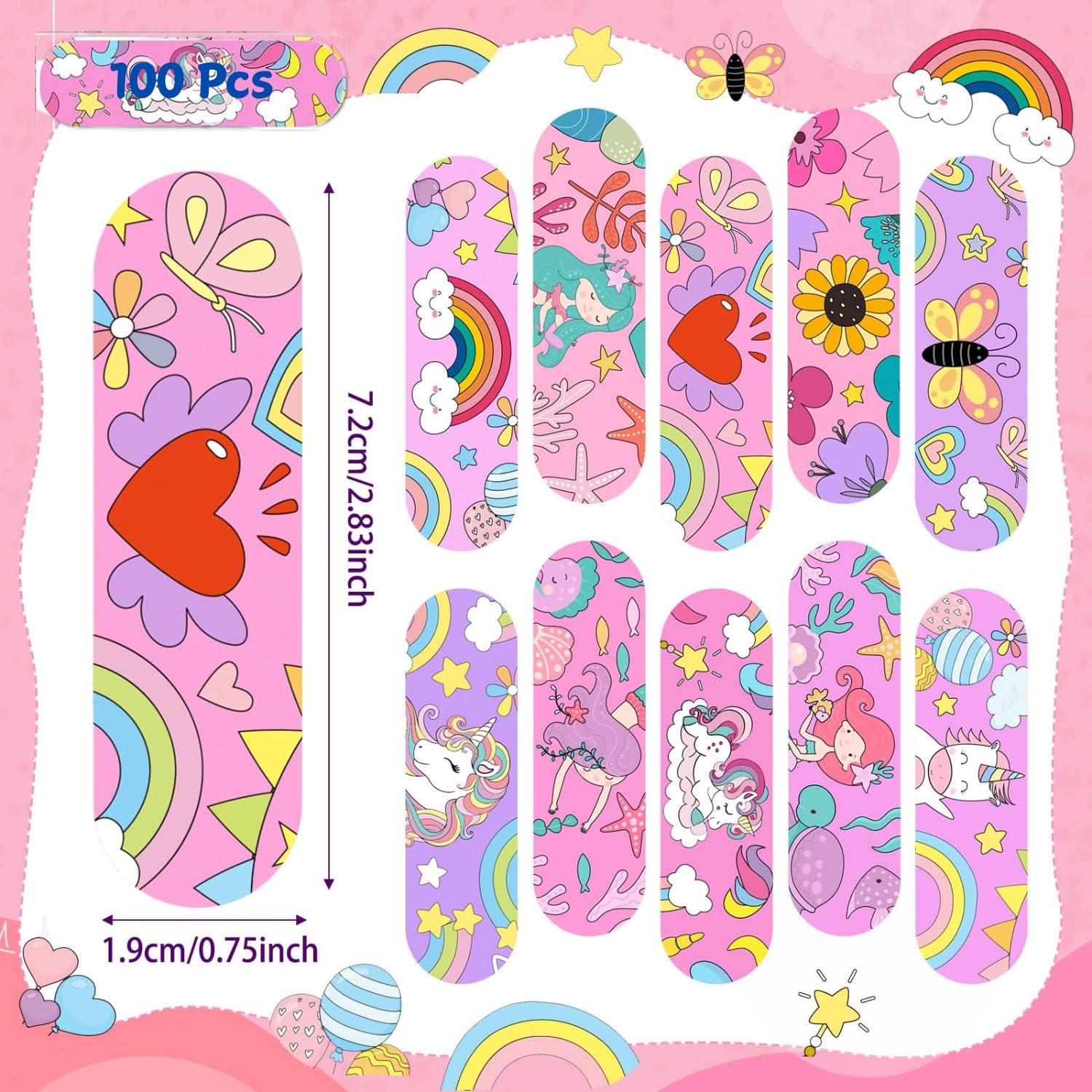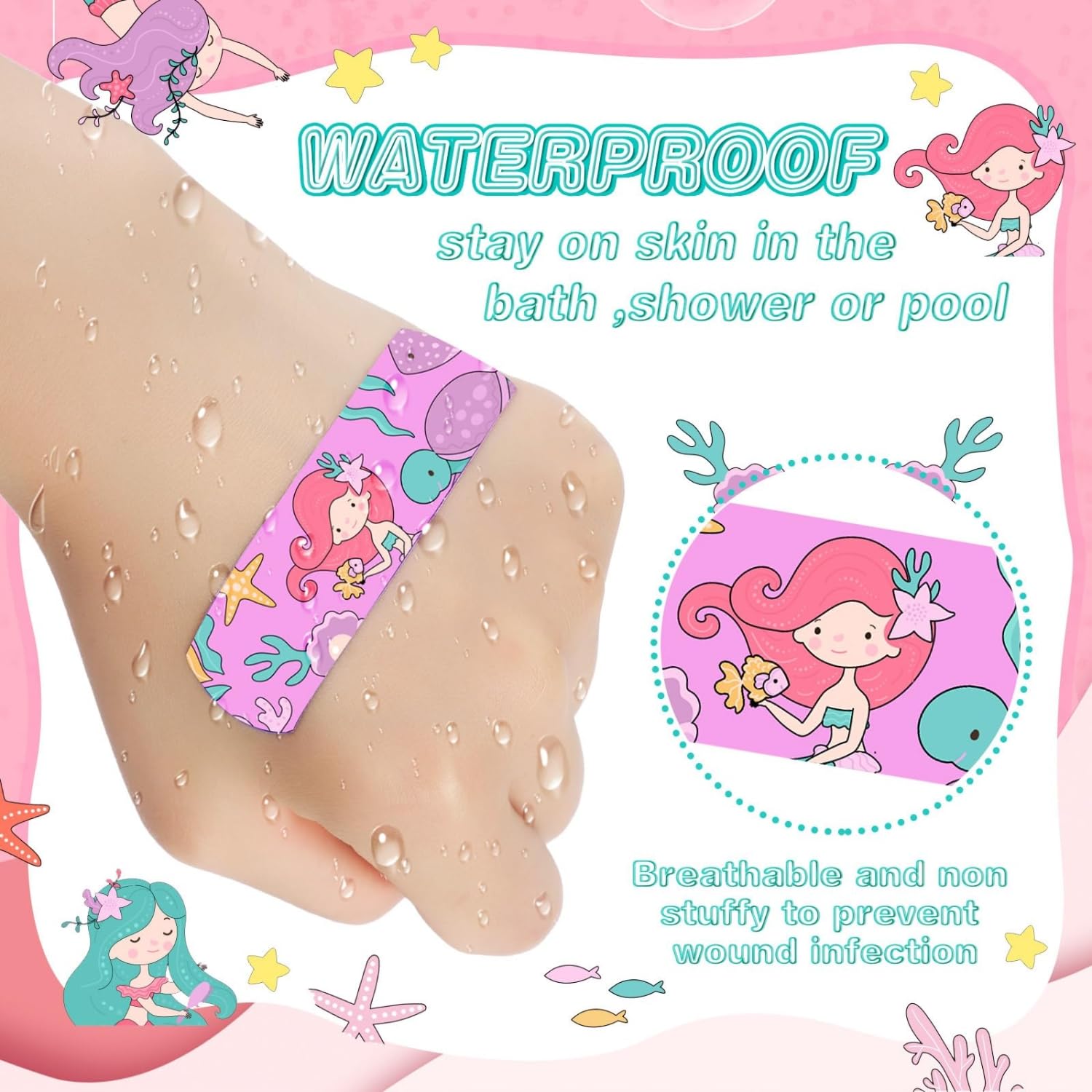 Ahamo Mermaid Cartoon Bandages for Kids – 100pcs Waterproof Adhesive Band-Aids with 10 Cute Designs | Skin-Friendly Wound Protection for Children