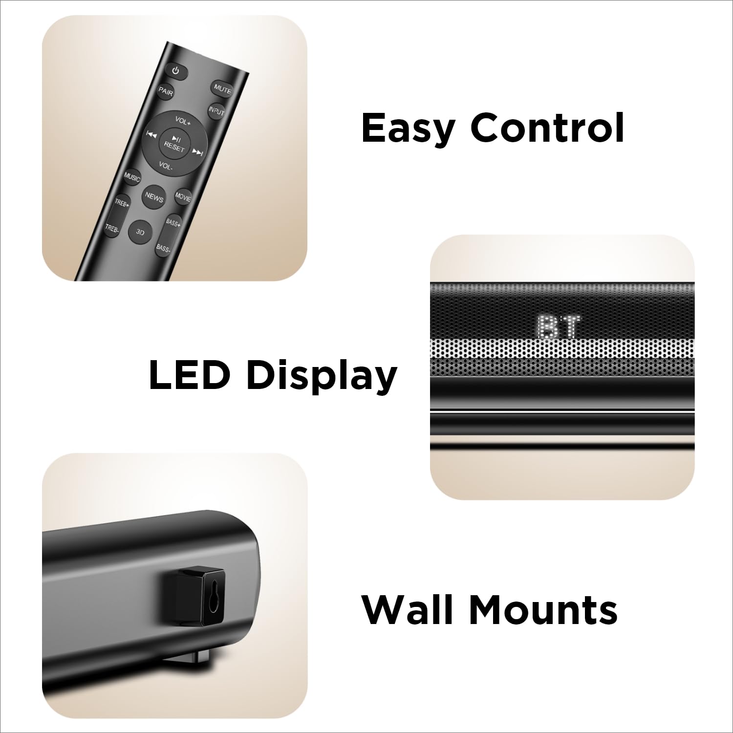 SLEEK WALL-MOUNTABLE DESIGN – Wide 920mm soundbar with LED display and wall-mount option; backed by 1-year warranty and 10-day service center replacement.