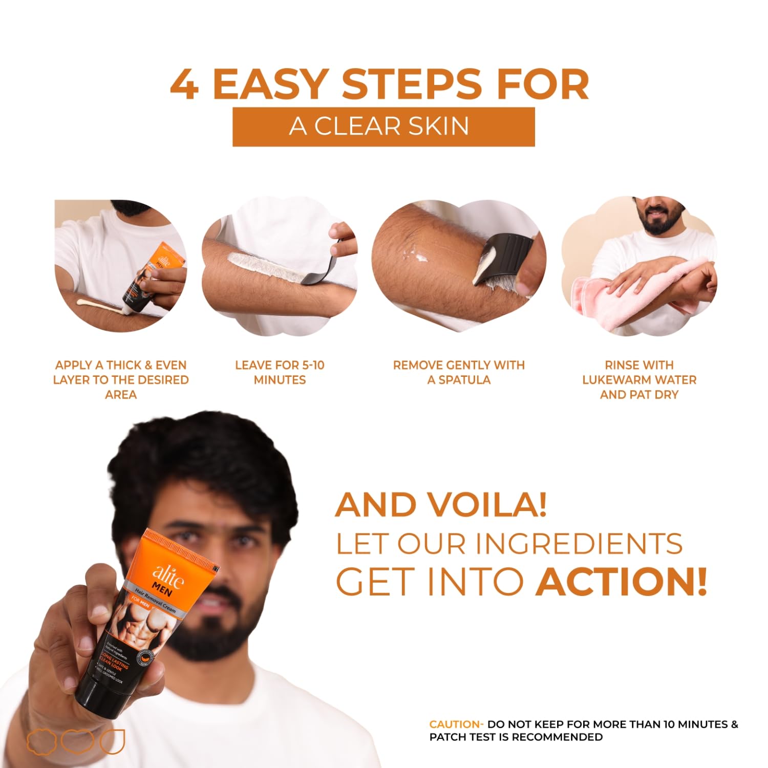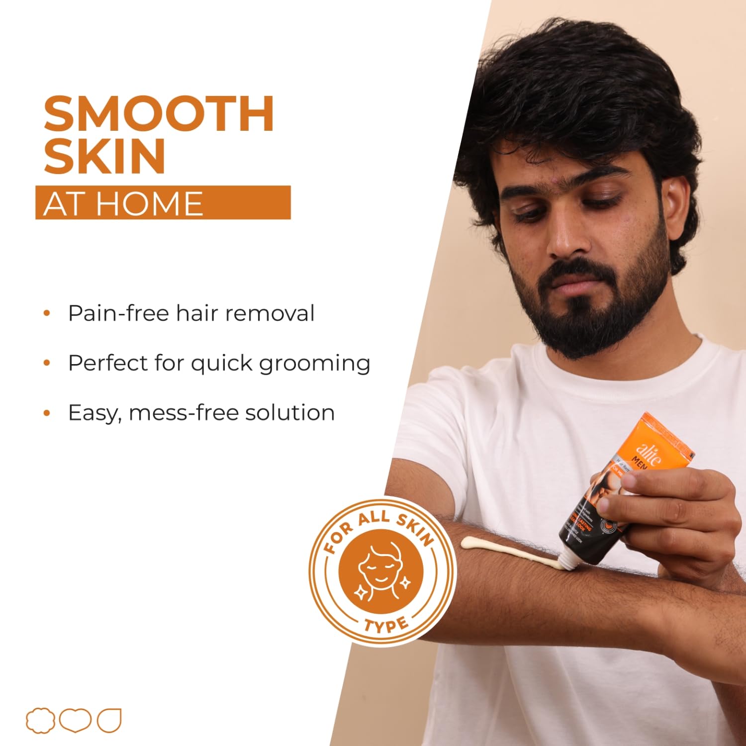 Effortless & Instant Hair Removal: Get smooth, hair-free skin in minutes! Alite Hair Removal Cream for men provides a pain-free solution for chest, back, arms & legs, giving long-lasting smoothness without cuts or razor burns.