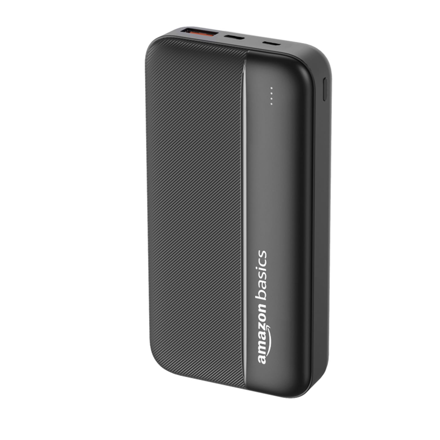 Amazon Basics 20000 mAh Power Bank | 22.5W Fast Charging | Dual Output & Input | Charge 3 Devices Simultaneously | for Smartphones, TWS Earbuds, Speakers, Tablets (Black)