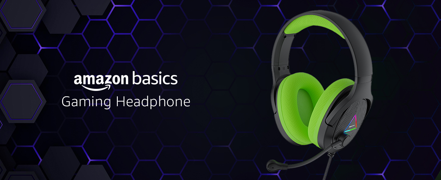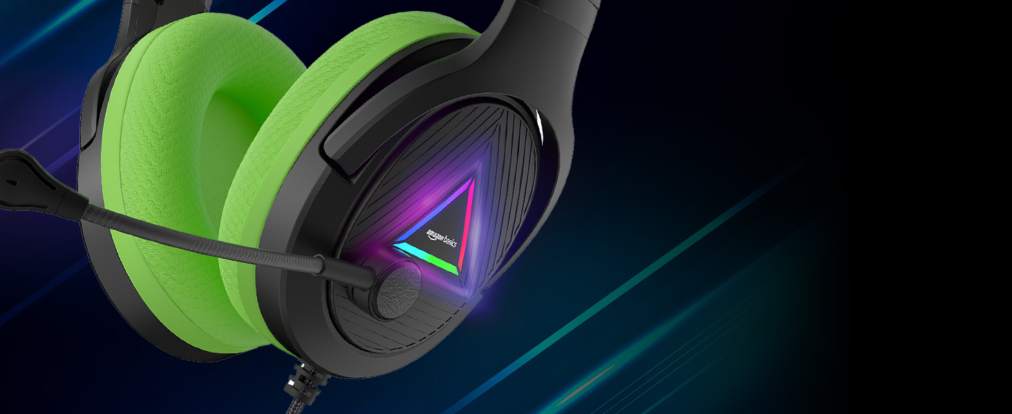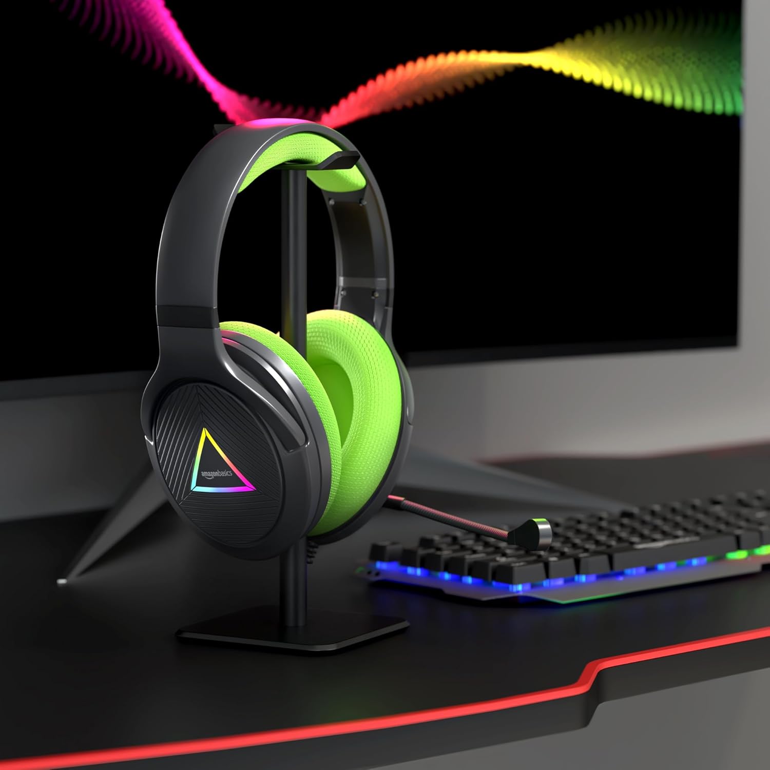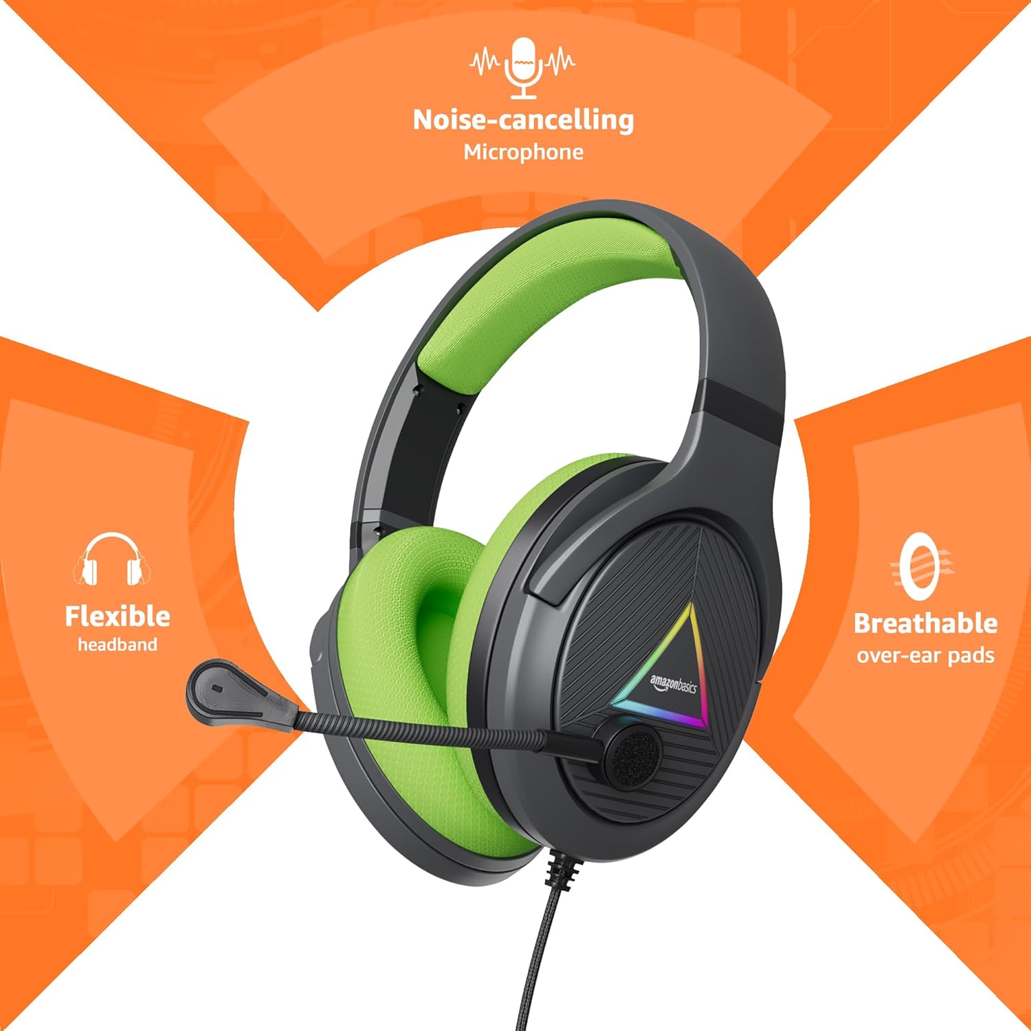 amazon basics 7.1 USB Gaming Wired Over Ear Headphones with Mic | Virtual Surround Sound | 50mm Driver | RGB LEDs (Black – Green)