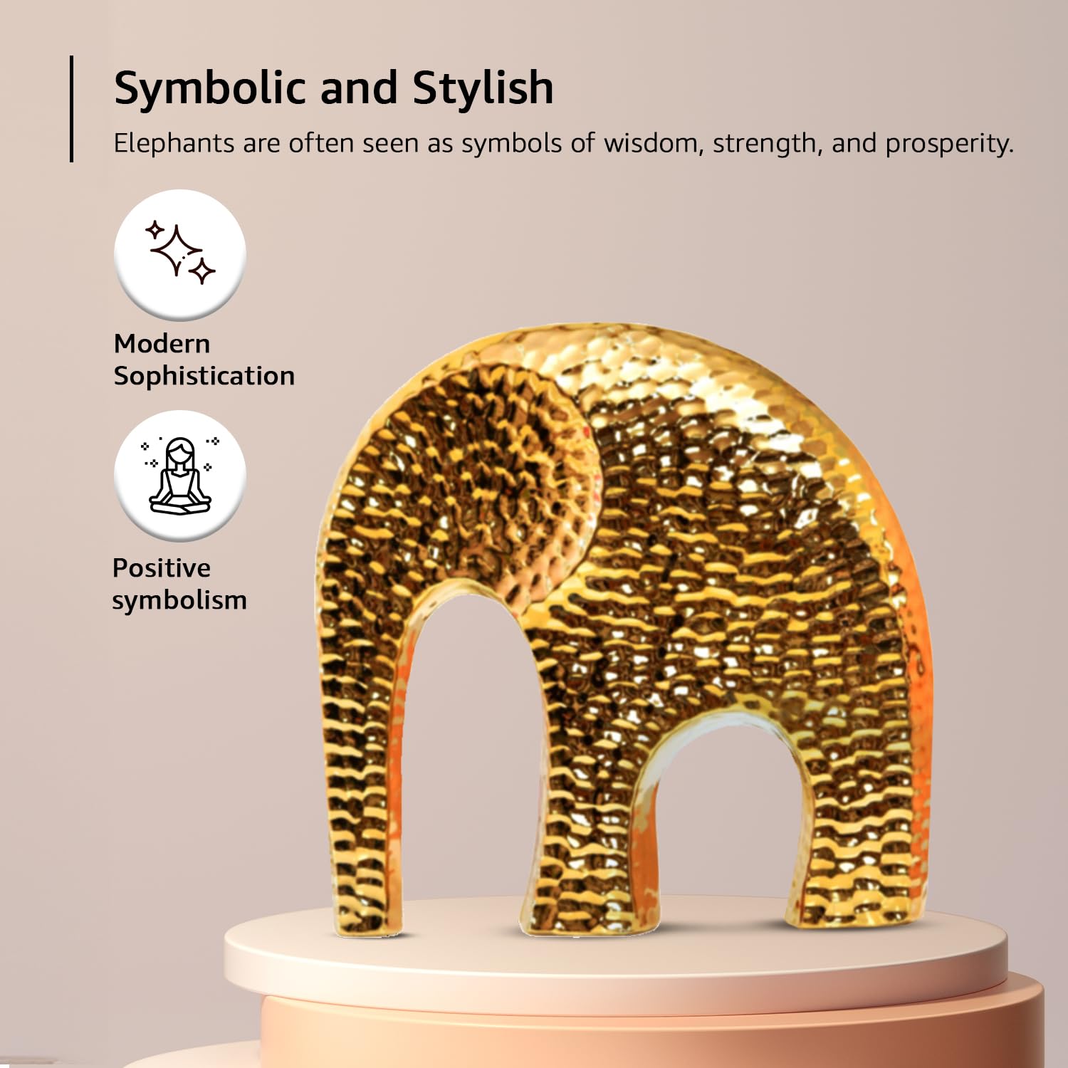 amazon basics Dotted Ceramic Elephant Figurine | A Playful Blend of Charm & Elegance | Perfect for Modern Décor – Pack of 1, Golden