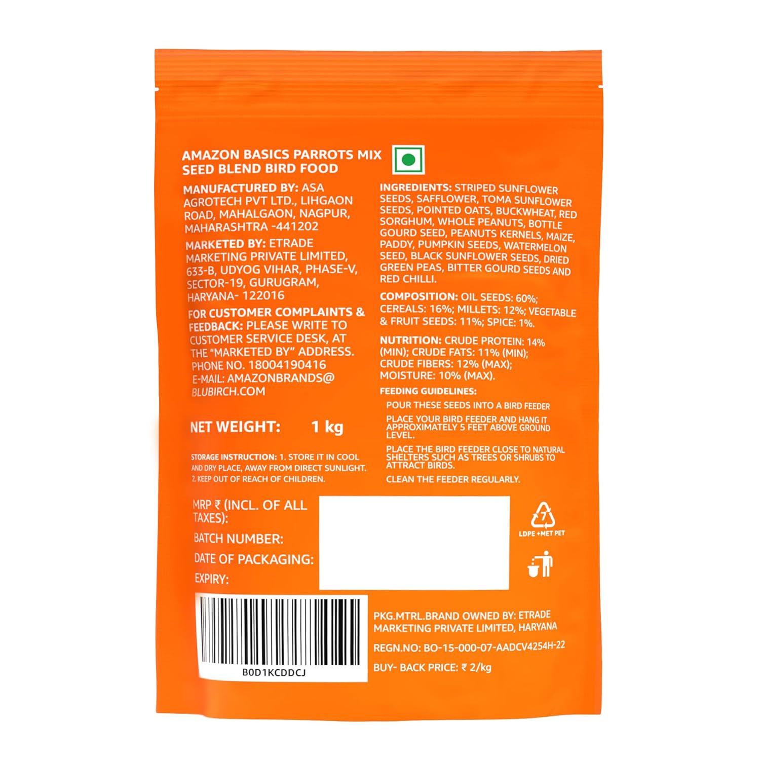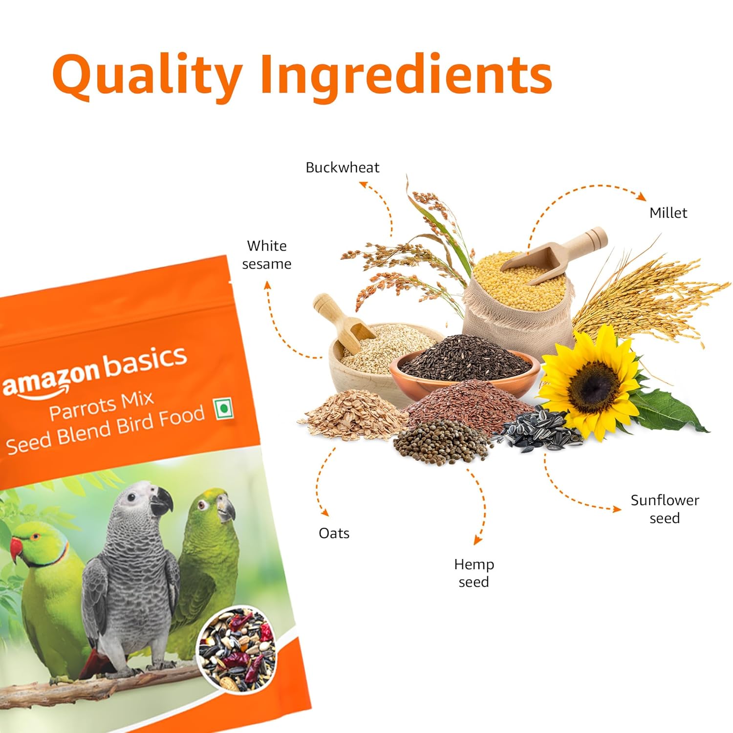 Amazon Basics Mix Seed Bird Food for Parrots, African Grey Parrot, Sun Conure, Macaw, Lovebird & Alexander | Bird Food for All Life Stages (1 kg)