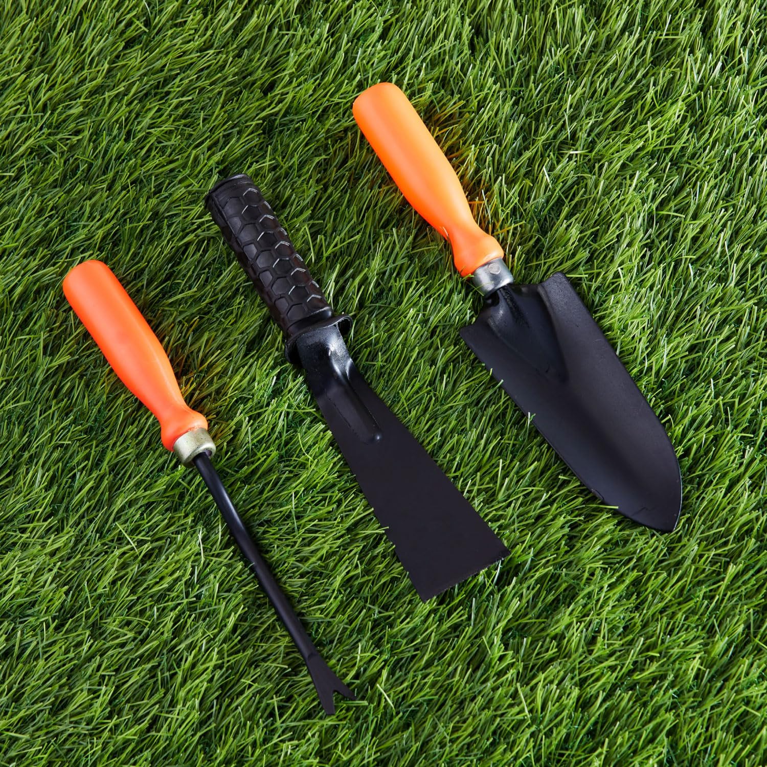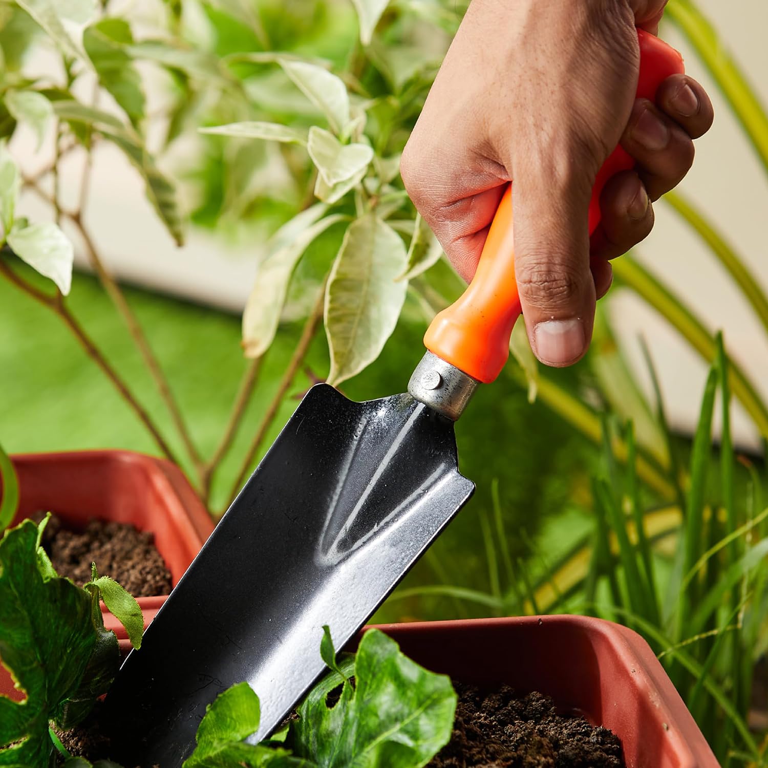 Amazon Brand – Solimo 3-Piece Garden Tool Set | Small Shovel, 2-inch Khurpi & Weeder | Terrace Gardening Accessories