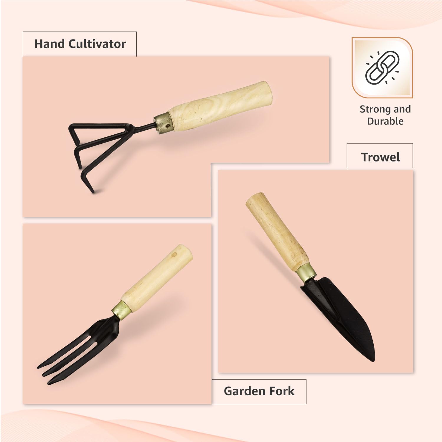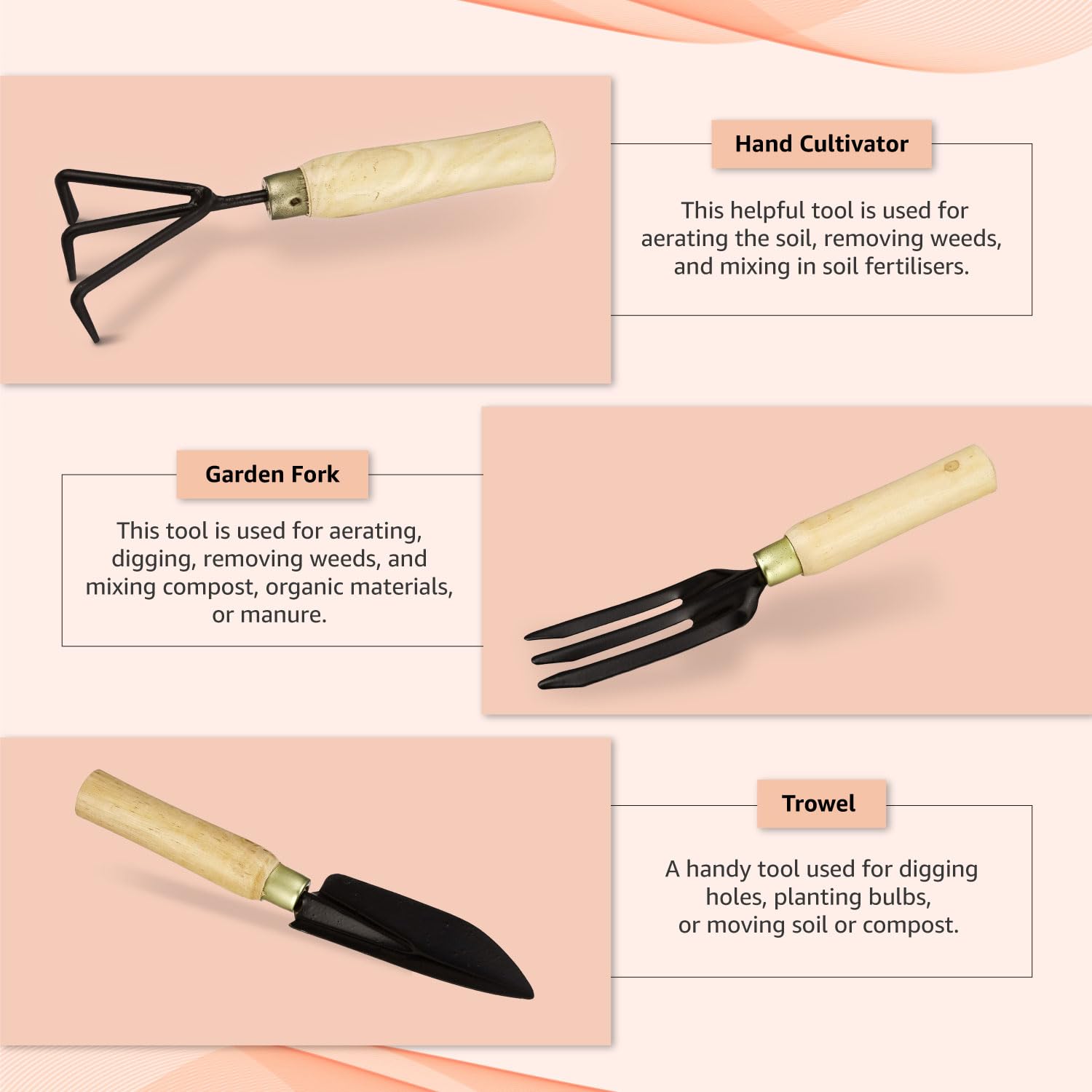 Equipped with wooden handles designed for a comfortable and secure grip, these tools enhance your gardening experience.