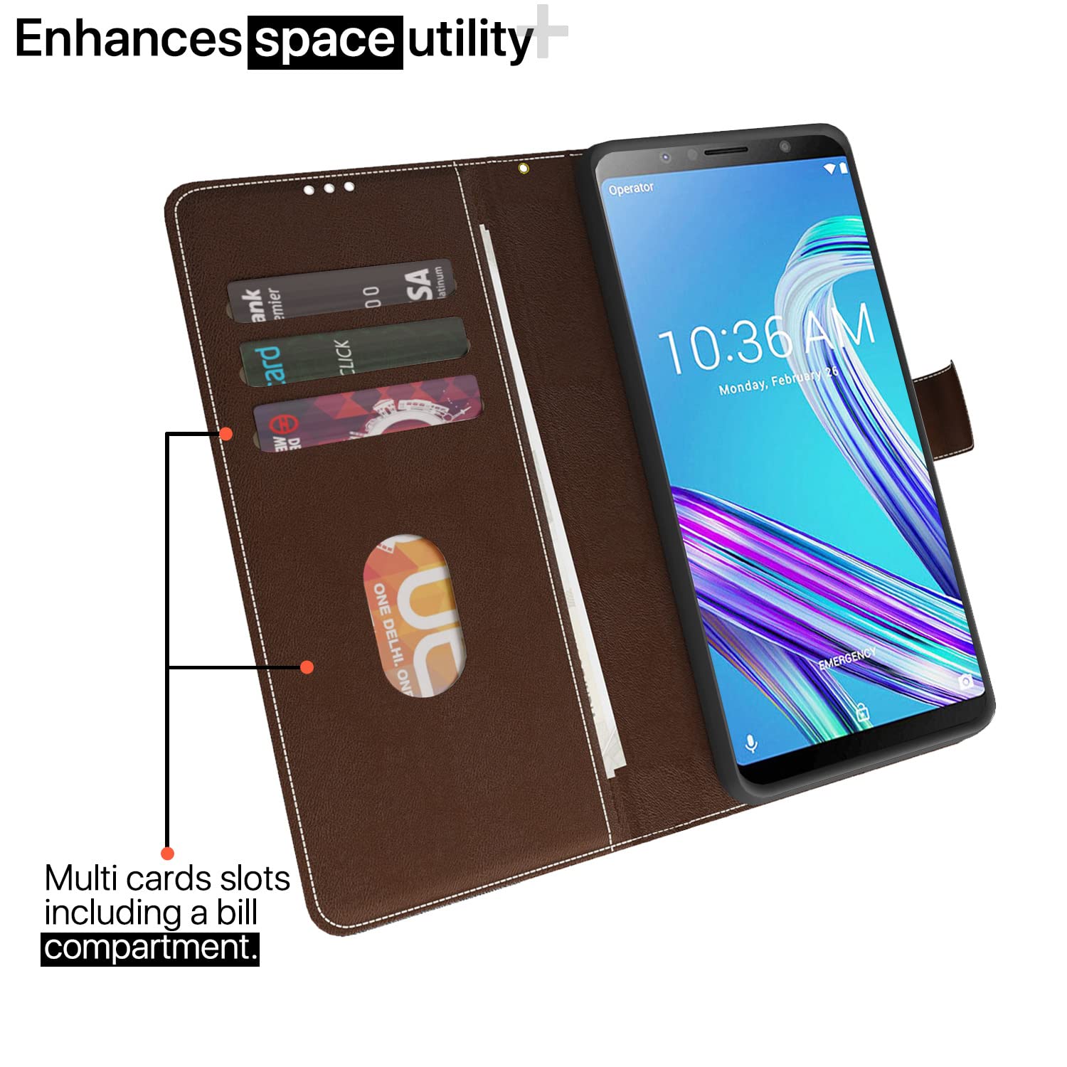 Kick back and relax with a kick-stand engineered into the design of Solimo leather case. Become a walking mobile theater for quick media sessions on the go Enjoy entertainment while you eat and off your Asus Zenfone Max Pro M1 screen