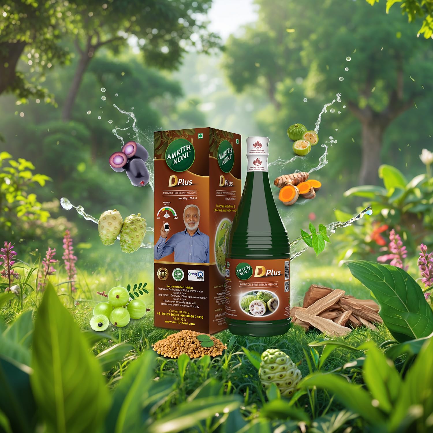 Amrith Noni D Plus is a premium herbal supplement formulated to support healthy blood sugar levels and overall wellness. Made with a synergistic blend of 80% noni fruit juice, 20% noni leaf extract, and Ayurvedic herbs, it helps promote pancreatic health, cellular rejuvenation, and natural detox. Noni is known for its rich antioxidant properties and its active compound proxeronine, which plays a role in supporting insulin regulation. This herbal formulation is ideal for those looking for a natural way to manage blood sugar levels, enhance immunity, and improve energy levels. Safe for daily use – no added sugar, preservatives, or artificial ingredients. Made in India with the wisdom of Ayurveda.