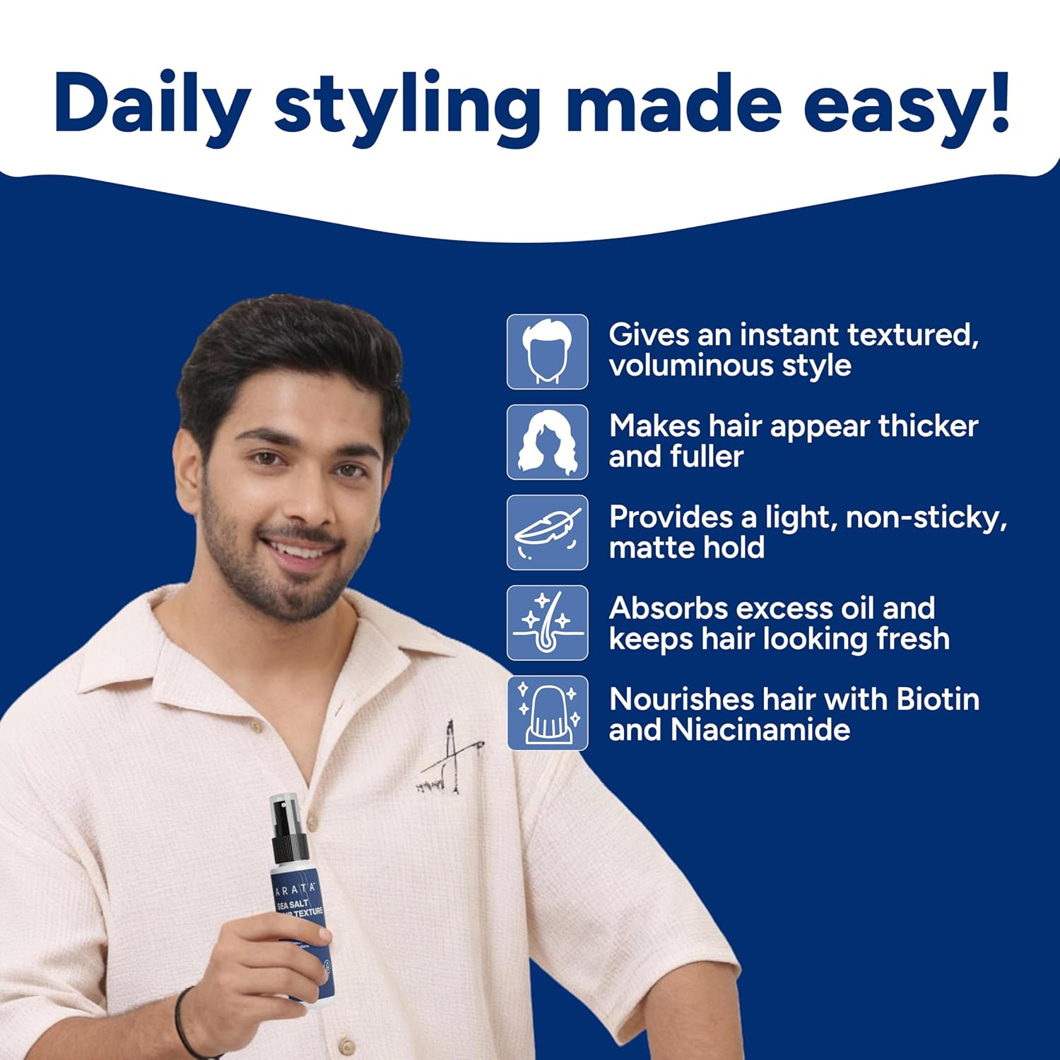 Arata Hair Volumizing Sea Salt Spray – 50ml | Enriched with Niacinamide & Biotin | Adds Instant Volume & Natural Waves | Matte Finish | Strong Hold | Hair Setting Spray for Men & Women