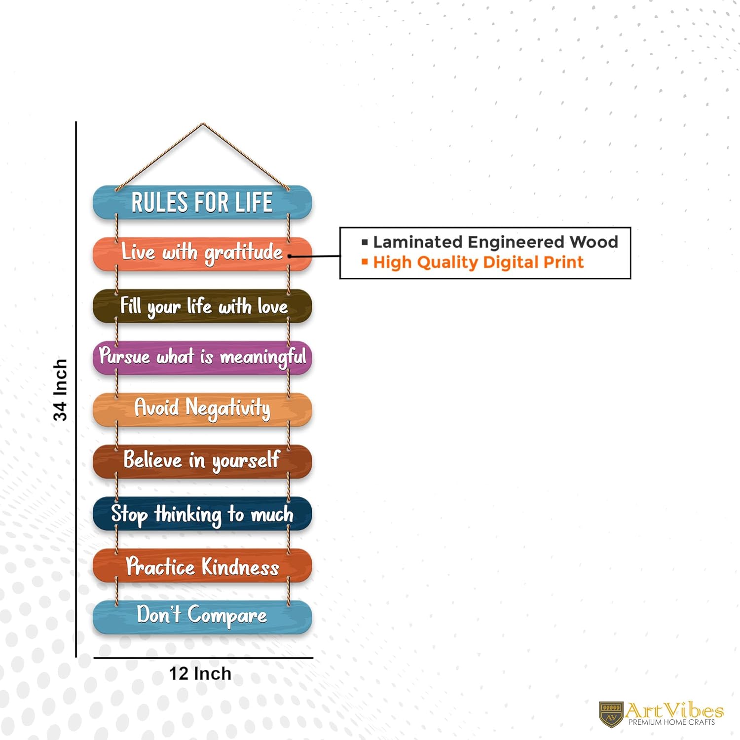 Artvibes Rules for Life Quotes Printed Mdf Wooden Wall Hanging | Living Room | Office | Home Decor Items | Gifts | Wall Art For Hall | Modern Wall Decorative Accessories for Home Decoration (WH_9310N)