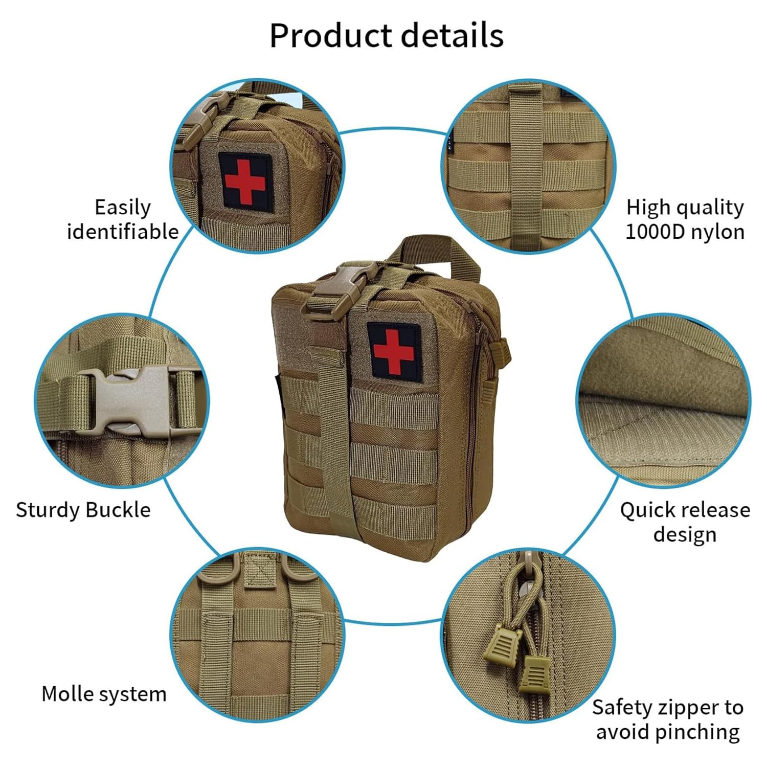 Tactical First Aid Kit: This product is a tactical first aid kit, designed for emergencies and outdoor activities. It’s an essential tool for hunters, campers, and anyone who ventures into the wild.
