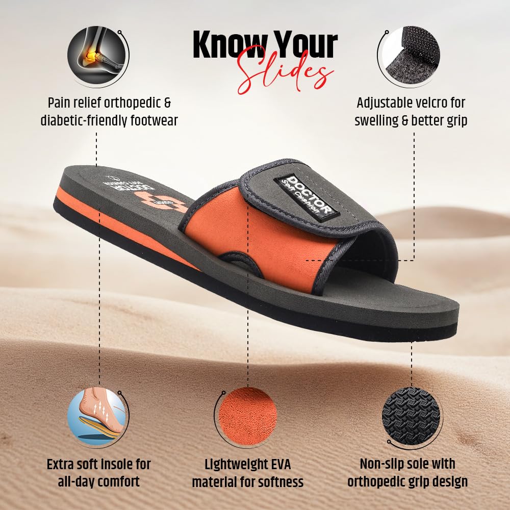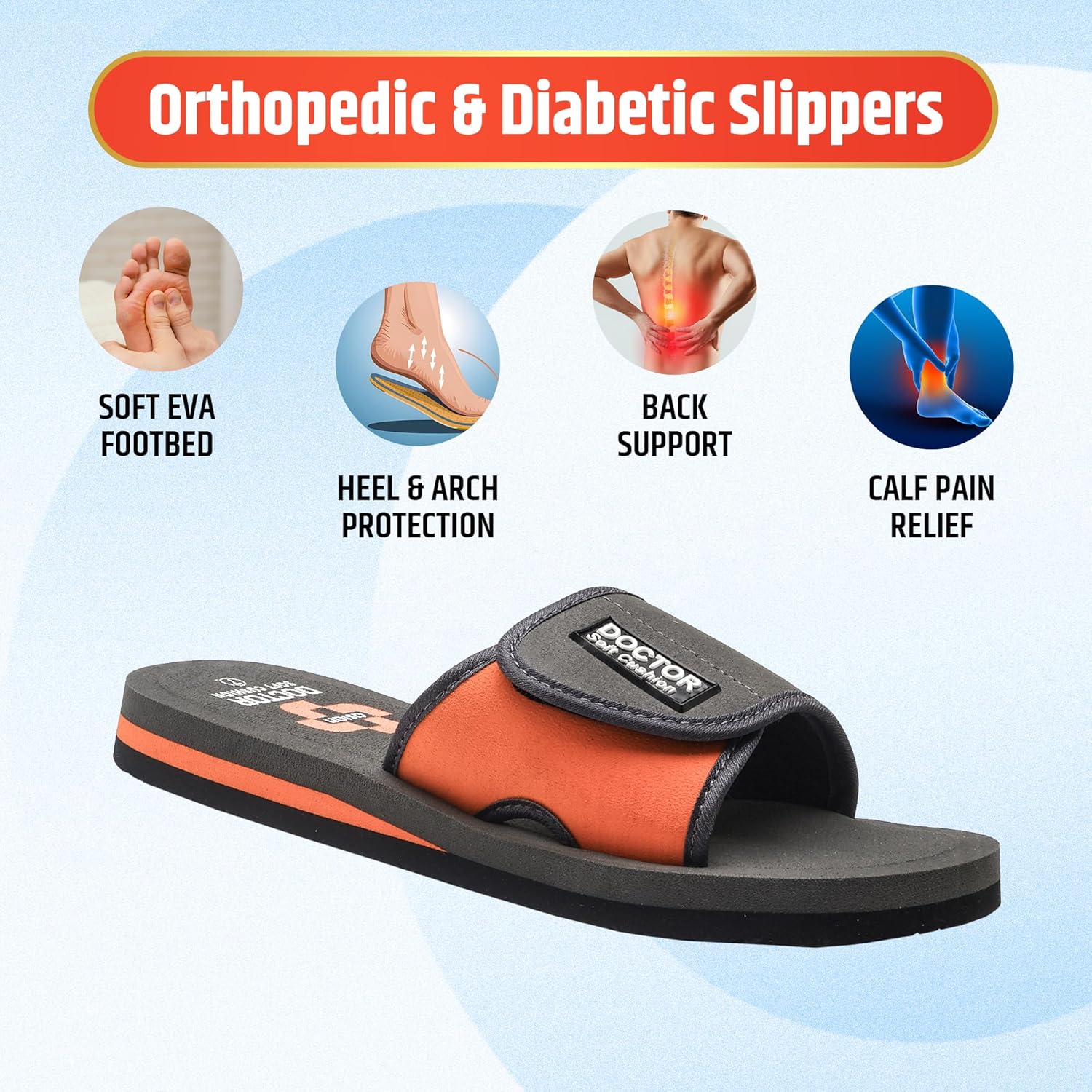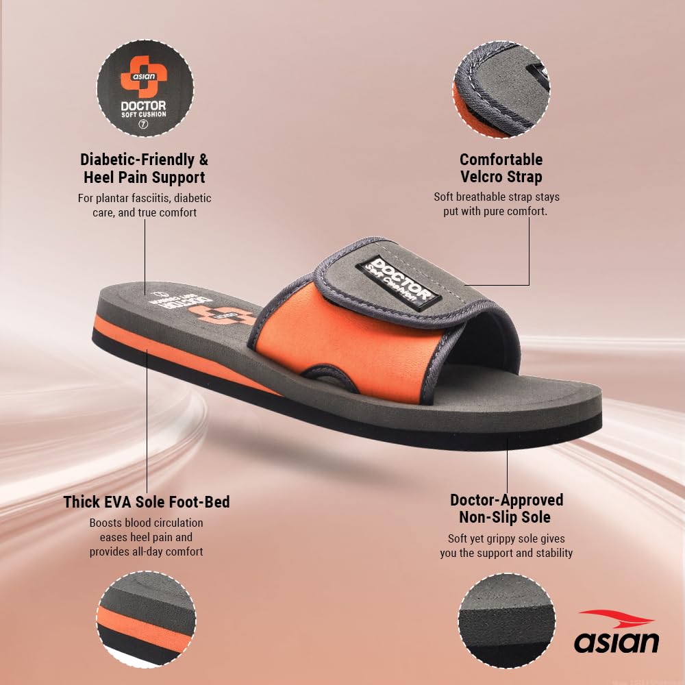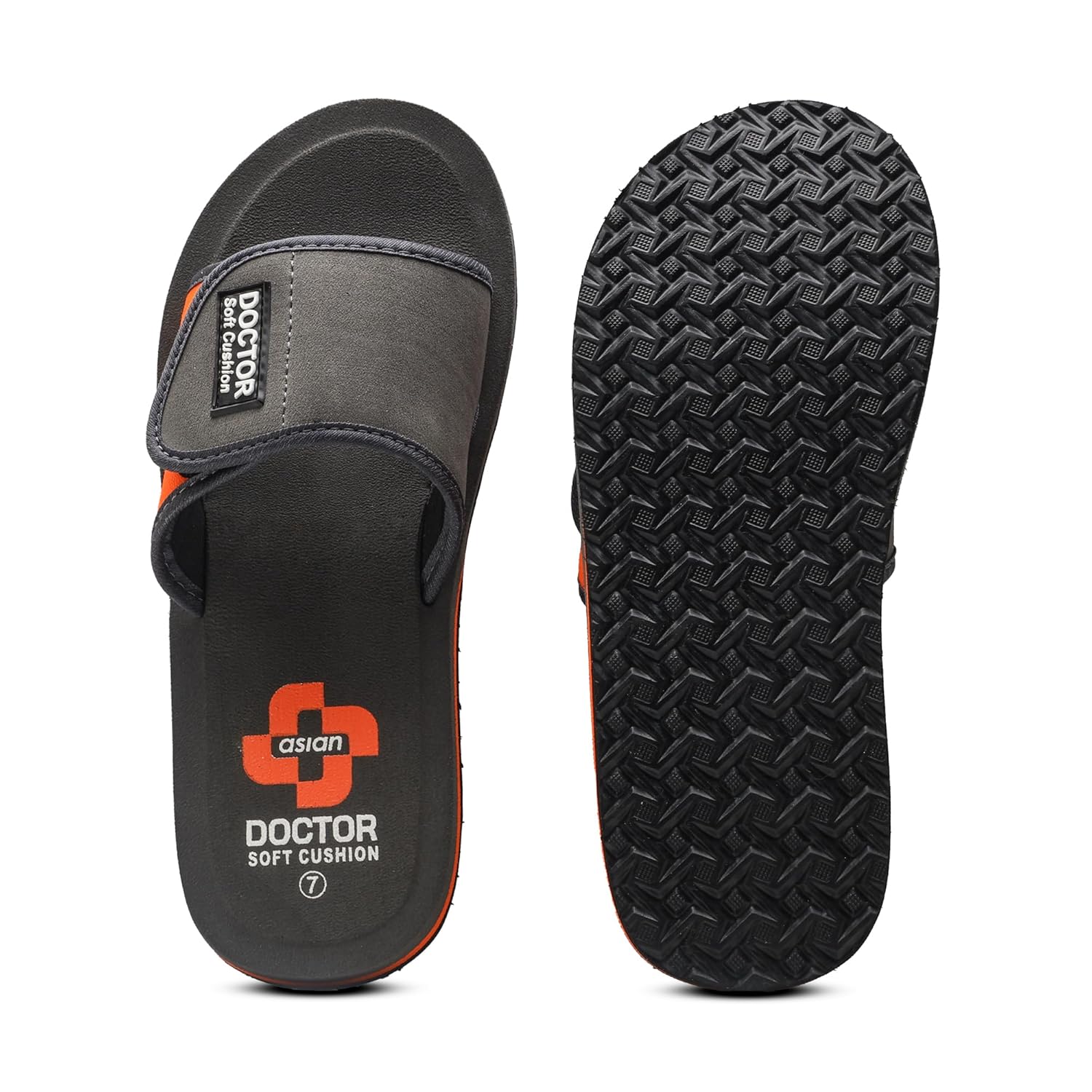 Asian DOCTOR Soft Cushion Men’s Slippers | Ortho, Diabetic & Heel Pain Support | Ideal for Swelling, Arch & Ankle Pain Relief | Adjustable Strap Extra Soft Slides & Flip-Flops for Gents & Boys-AFG-711