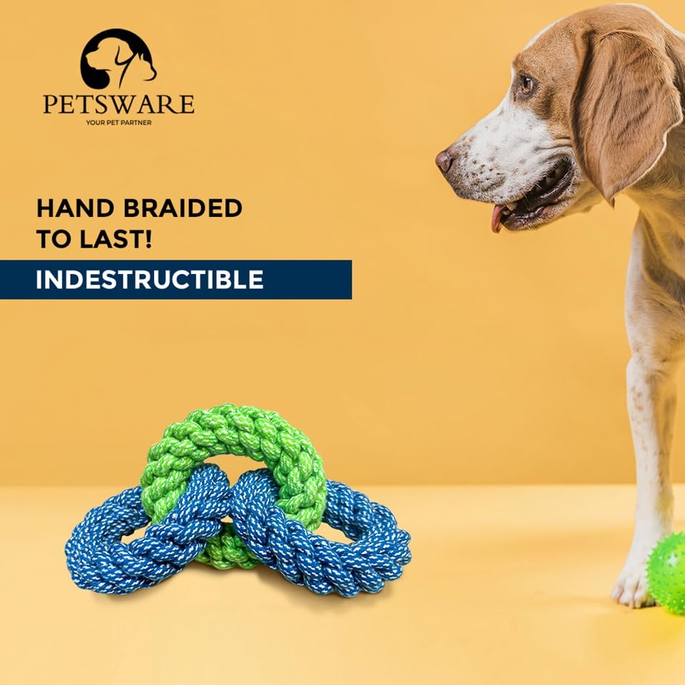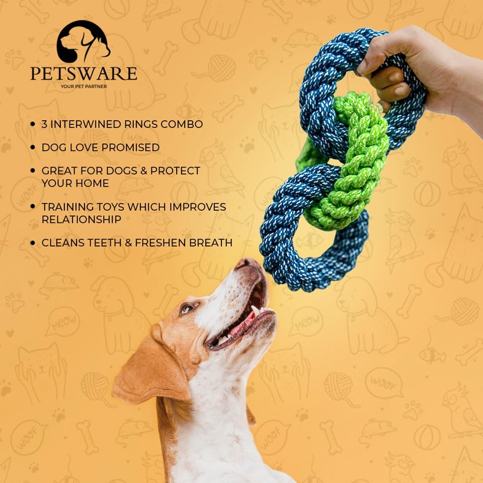 PETSWARE Attractive Dog Toys for Large Dogs & Accessories Toy for Puppies, Pets, Puppy, Medium & Adults, chew Rope Small pups for Playing & Chewing for Labrador Combo (Yellow sage (3 Rings)