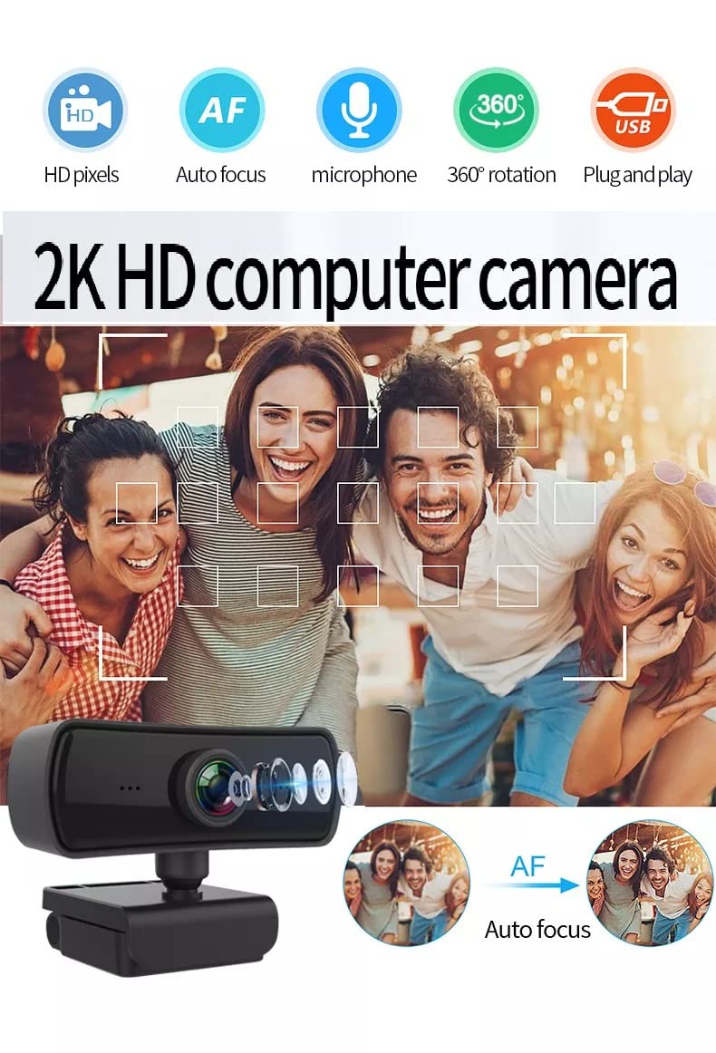 AUSHA® Webcam with Microphone, HD 2K Web Camera for Laptop Computer PC Desktop, Web Cam with External Privacy Cover for Video Calling,Conferencing, Gaming (Executive Webcam)