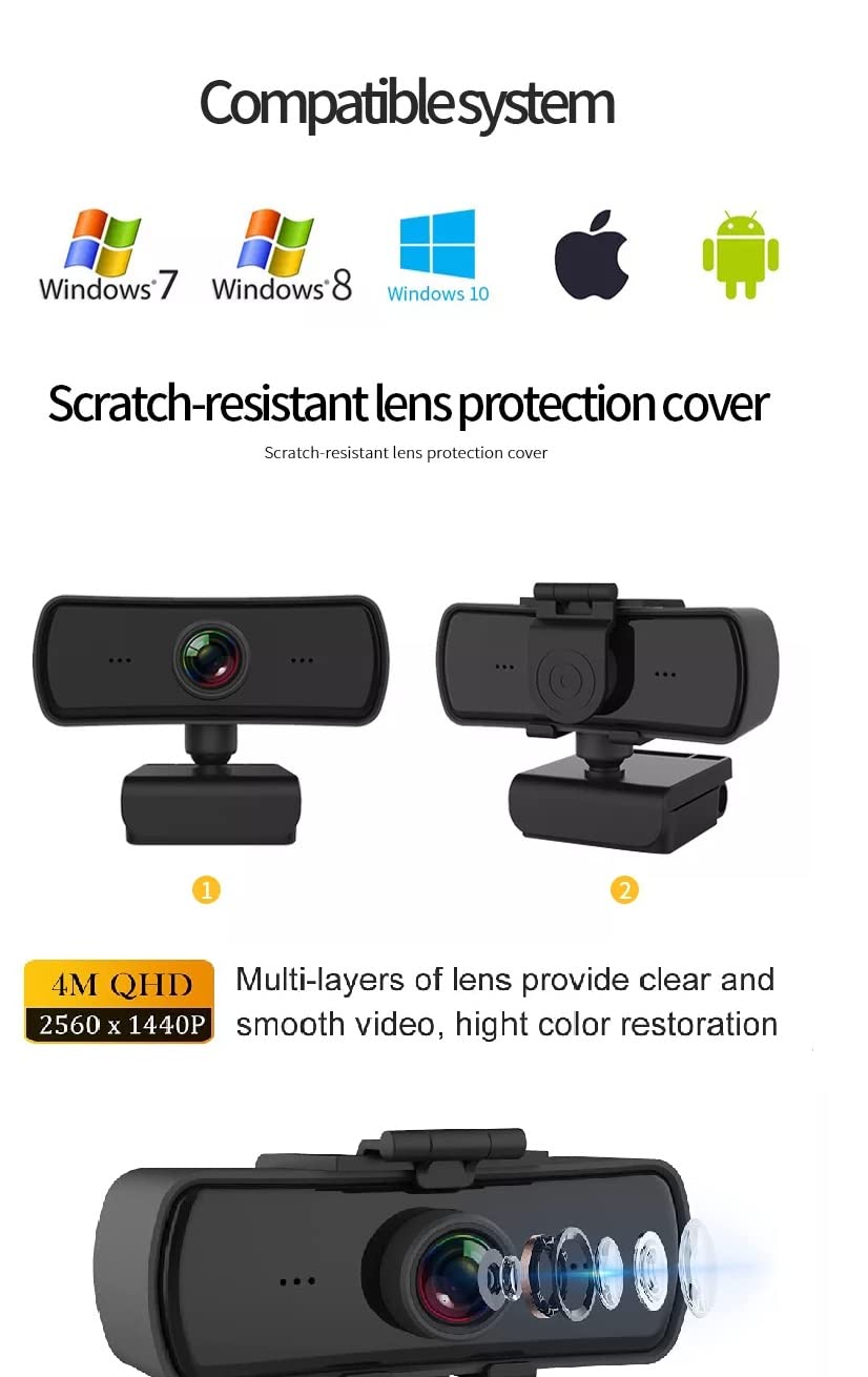 With 2560*1440p QHD video at 30fps, 4-layer high performance optical lens, ELITUN E03 Webcam delivers sharp and smooth video for Zoom, Skype, Youtube, Facetime and more. meets all your chatting and recording requirements.