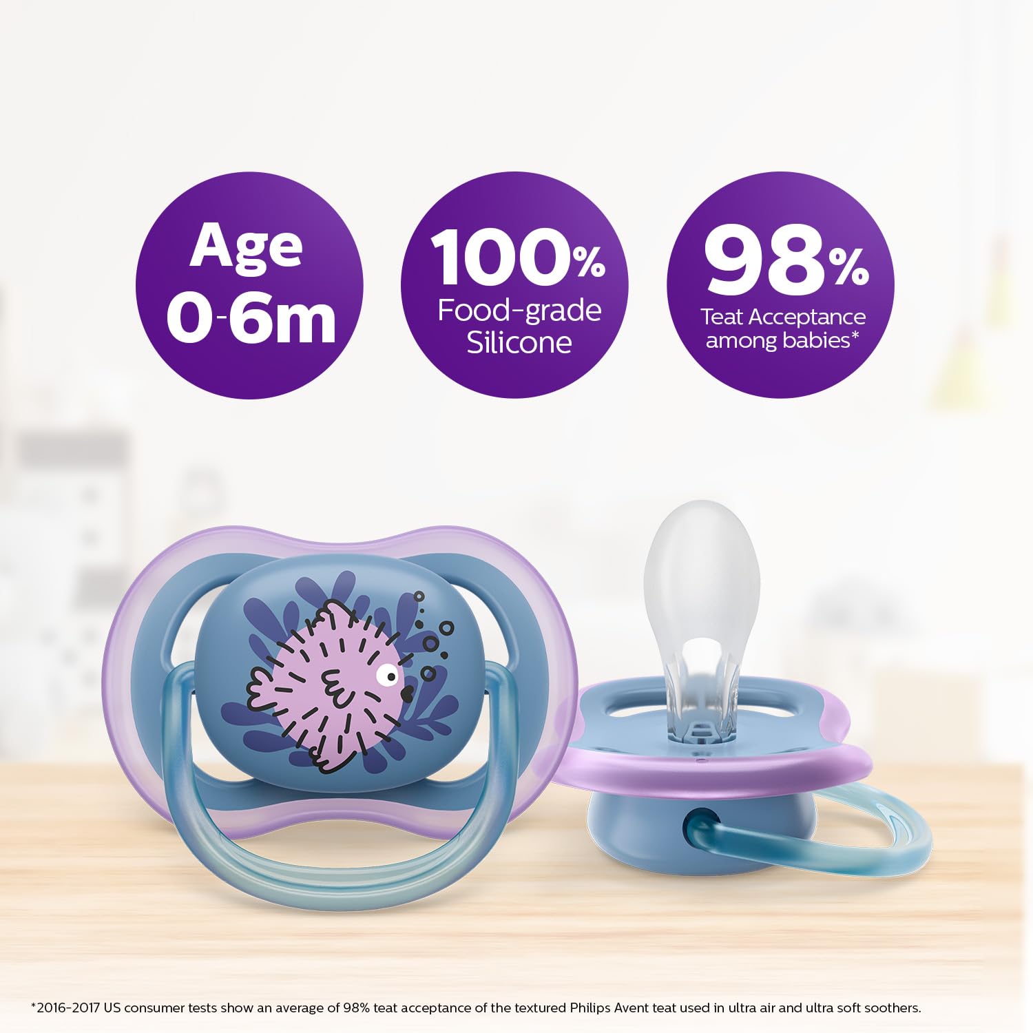 Avent Philips Pacifier Ultra air | Lets Your Baby’s Skin Breathe | Orthodontic & BPA Free | 2 Pack | 6-18m | SCF085/61 | Silicone