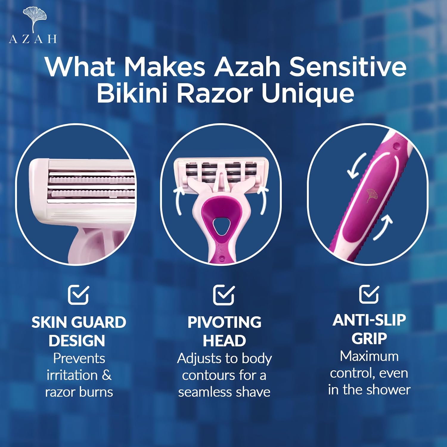 🚫No Strawberry Skin: Azah Sensitive Bikini Razor also escapes you from getting strawberry skin and keeps your skin smooth post-shave.