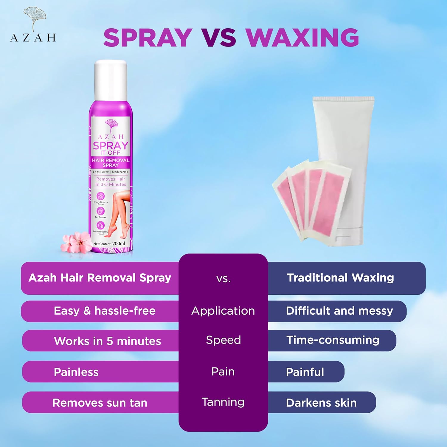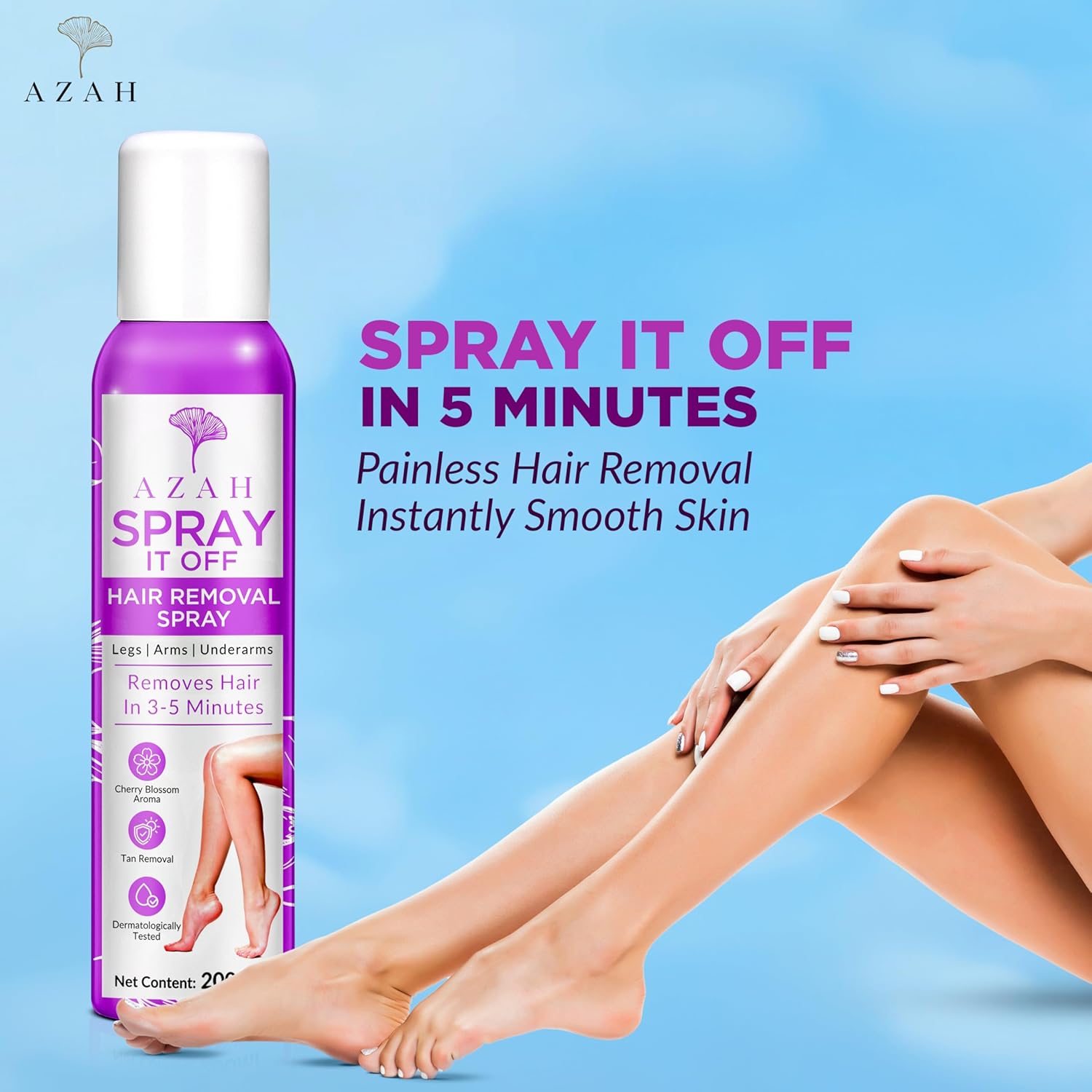 Azah Hair Removal Spray Cream [200 ML] | Remove Hairs in 3-5 Mins Only | Painless & Irritation Free Body Hair Removal for Chest, Legs, Arms & UnderArm | Hair Removal Spray for Women