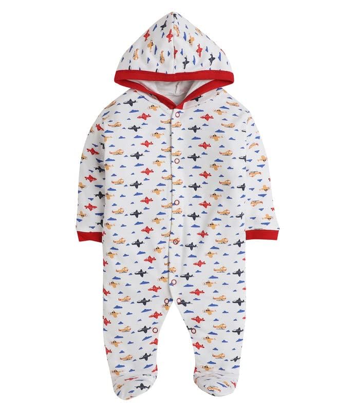 Keep your little one cosy and stylish with this delightful 3-pack of baby sleep and play rompers. Perfect for babies aged 0-6 months, these adorable one-piece outfits feature both solid red and charming airplane print designs. Crafted from soft cotton fabric, these full-sleeve rompers ensure maximum comfort during naptime and playtime alike. The convenient button closure makes dressing and nappy changes a breeze, while the footed design keeps tiny toes warm and snug. The crew neckline and regular fit provide unrestricted movement for your active infant. Each romper is thoughtfully designed with high-quality stitching and gentle elastic for a secure yet comfortable fit. These versatile sleepsuits are ideal for the spring season and everyday wear. Machine washable for easy care, these 250-gram rompers are practical for busy parents. The unisex design makes these rompers a wonderful choice for any baby. Please note the size chart carefully before ordering to ensure the perfect fit for your little one.