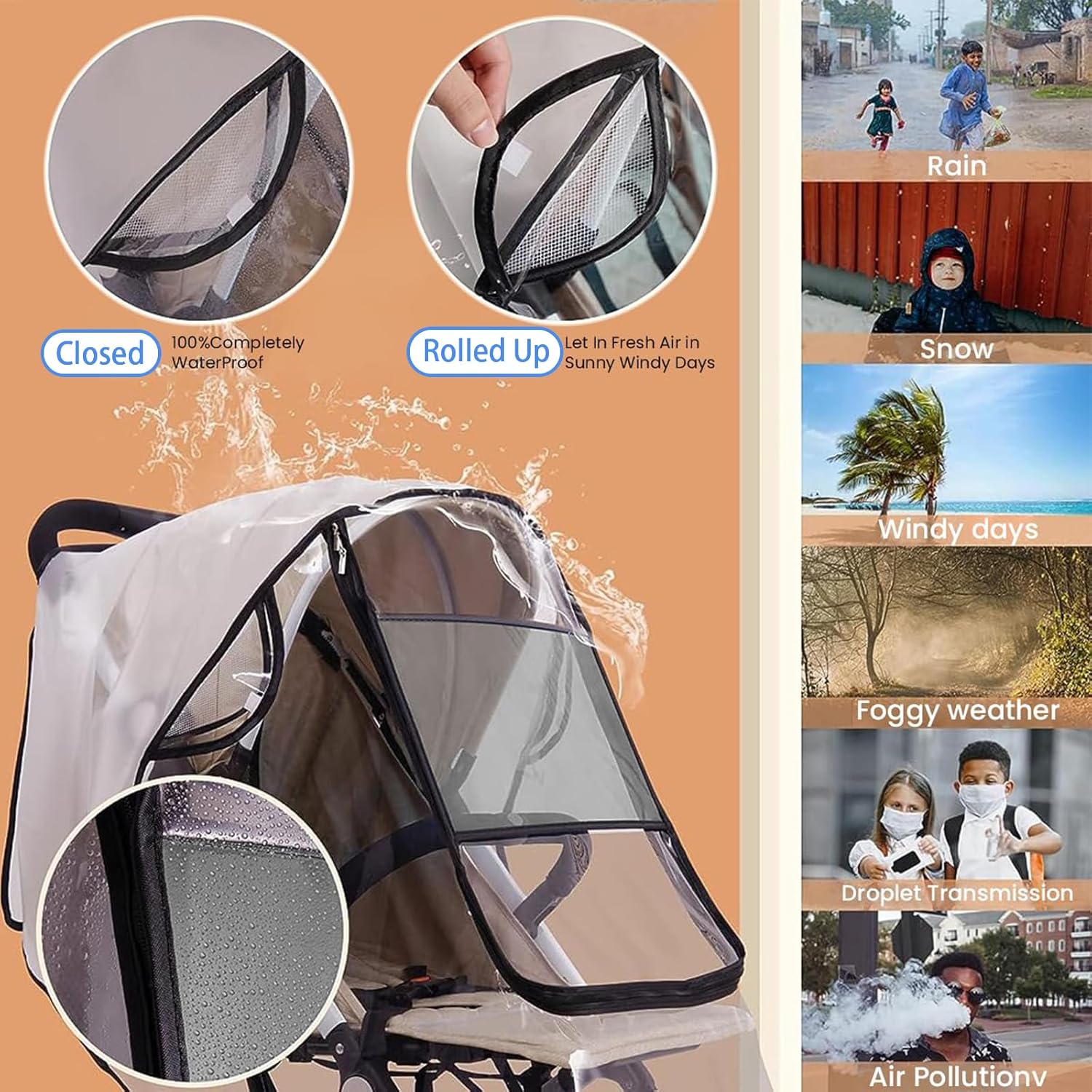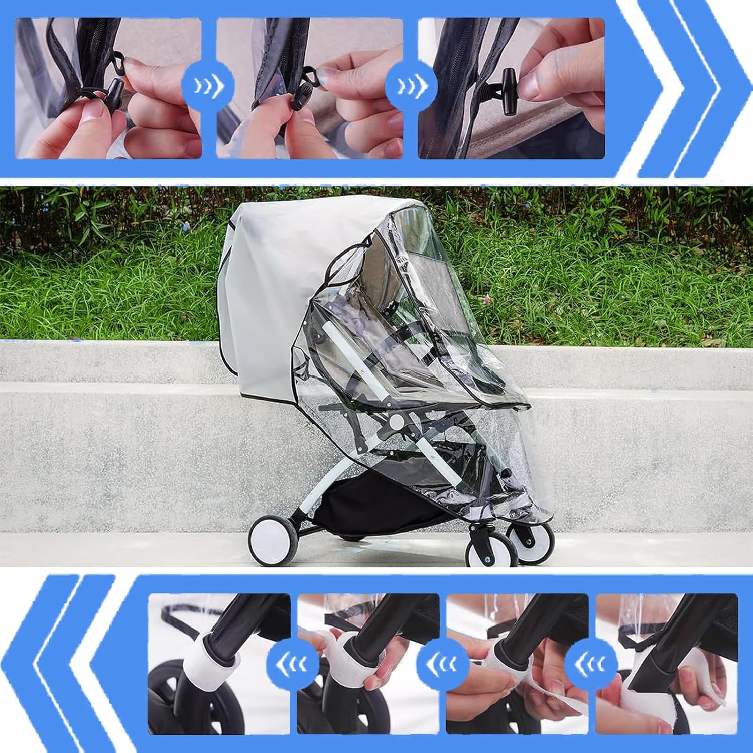 RELIABLE PROTECTION: With is Waterproof, Rainproof, Windproof Construction and Sturdy Material, This Baby Stroller Rainproof Stroller Cover Offers Reliable Protection for Your Baby Against Rain, Snow, Wind, And Harsh Weather Elements. It Acts as a Shield, Keeping Your Baby Dry and Comfortable During Outdoor Excursions