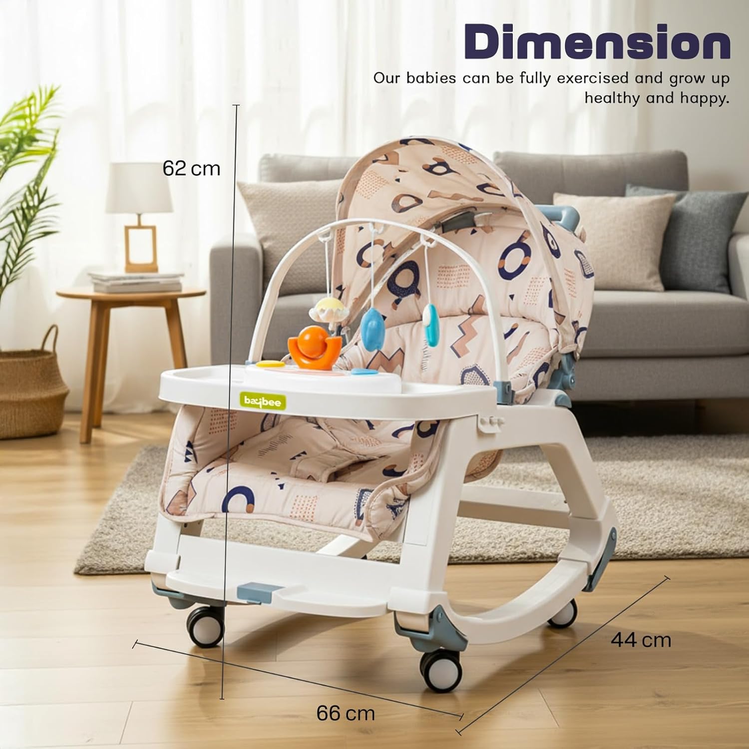 5-in-1 Versatility: This rocker and chair for babies features five modes rocker, walker, dining seat, cart, and play chair making it useful through every stage.