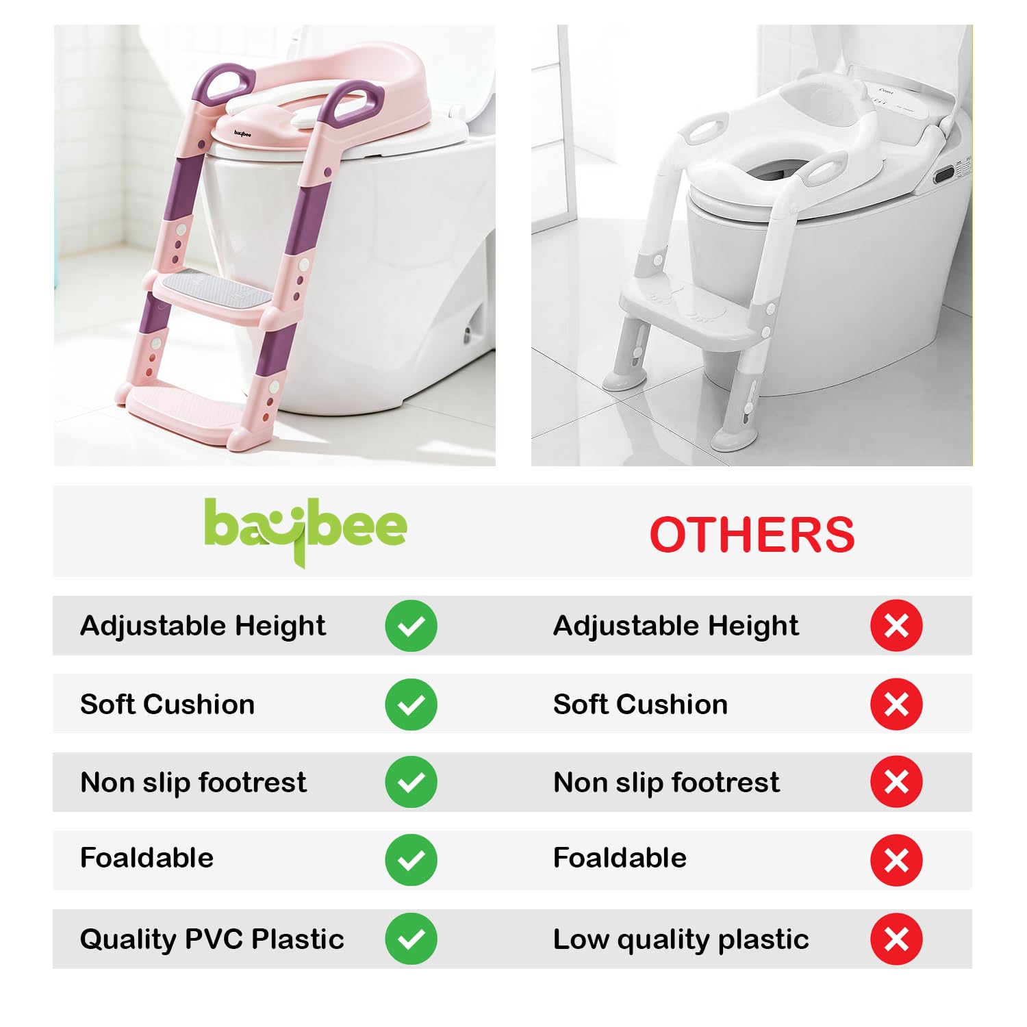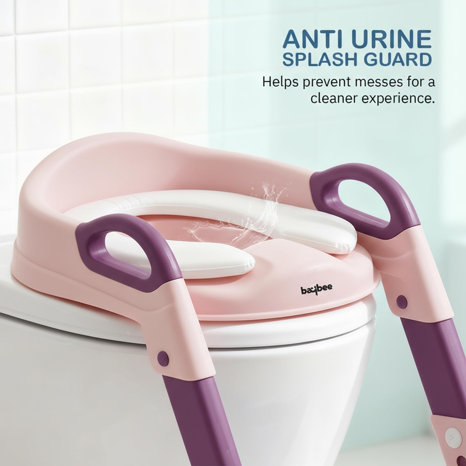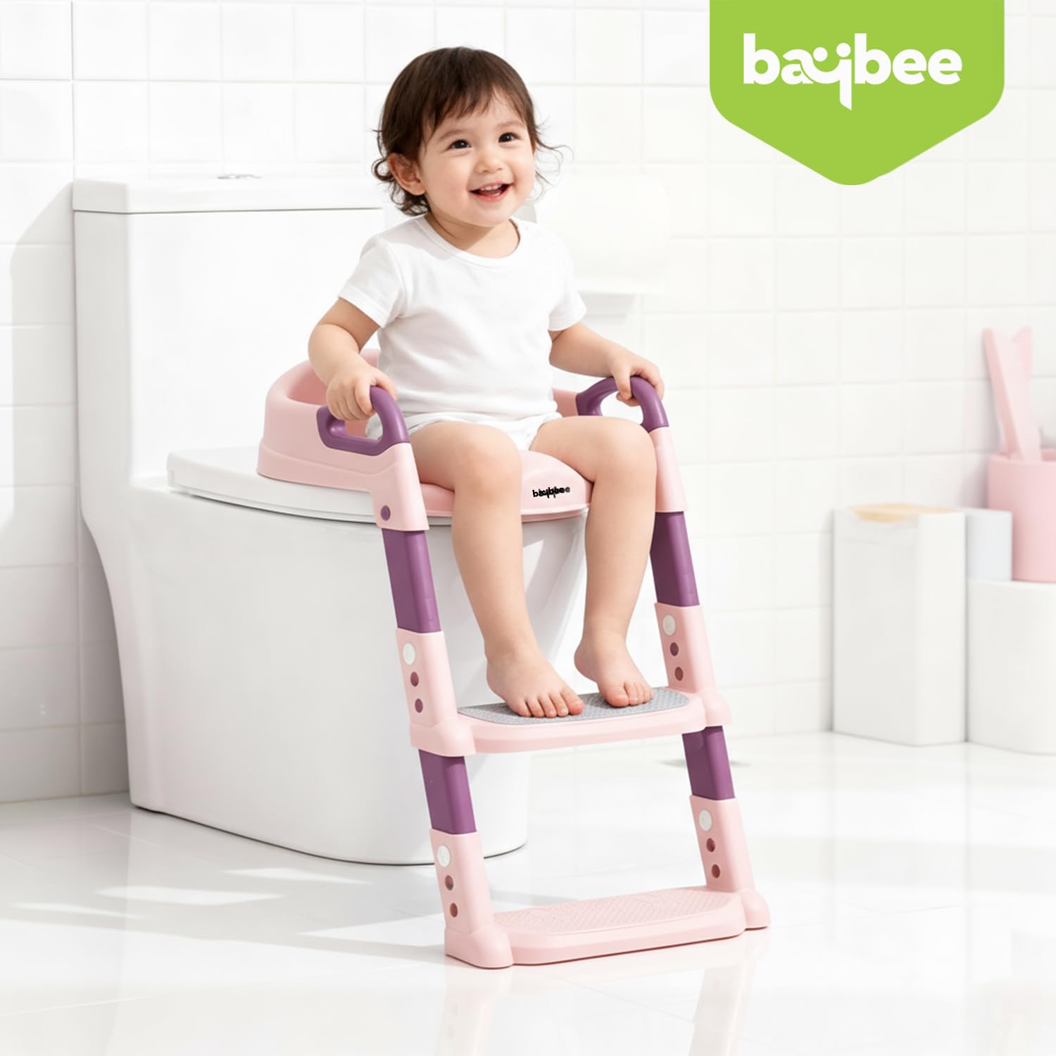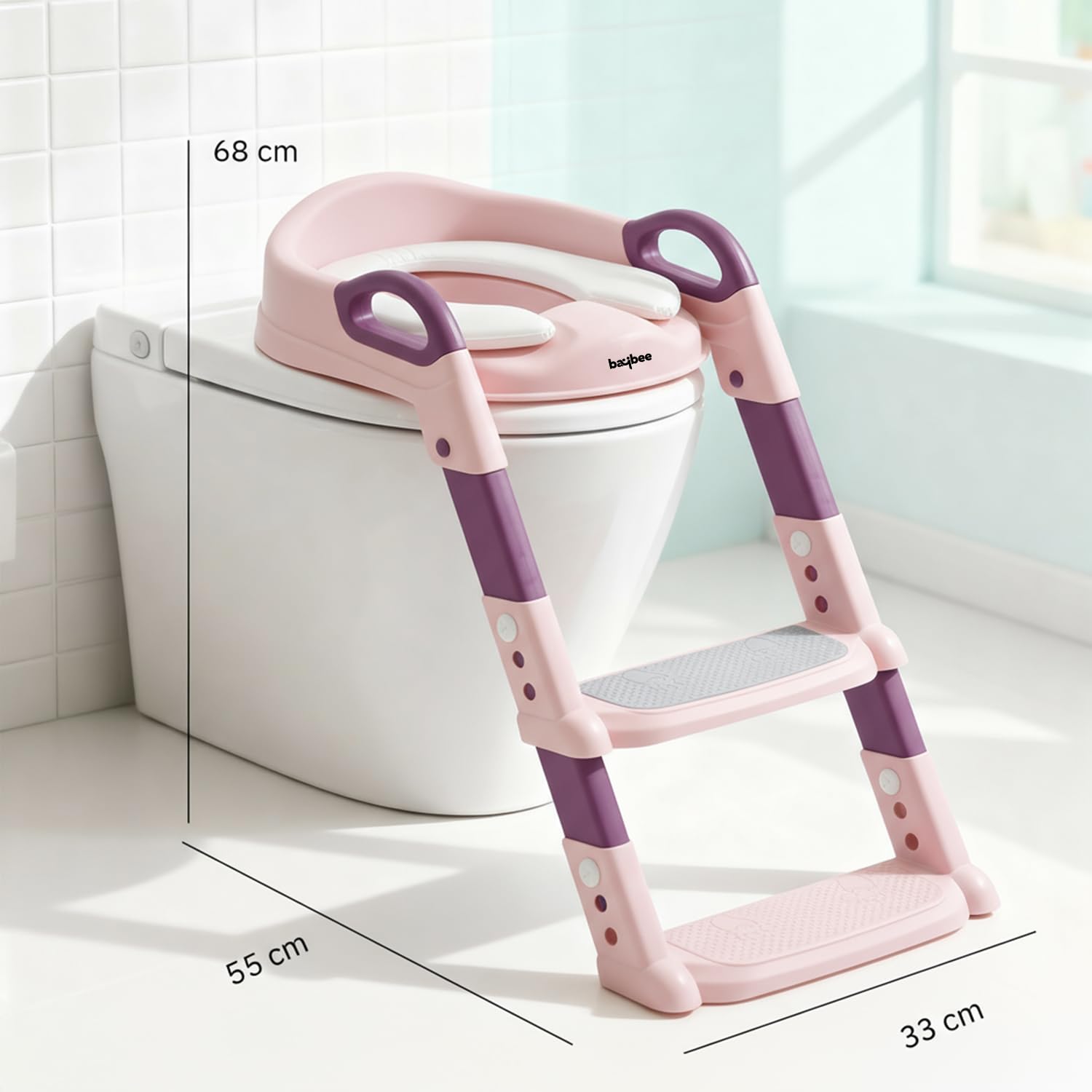 BAYBEE Aura Western Toilet Potty Seat For Kids,Baby Potty Training Seat Chair With Ladder,Adjustable Step Height,Cushion Seat|Kids Toilet Seat|Potty Seat For 1-8 Years Child Boys Girls(Pink) Plastic