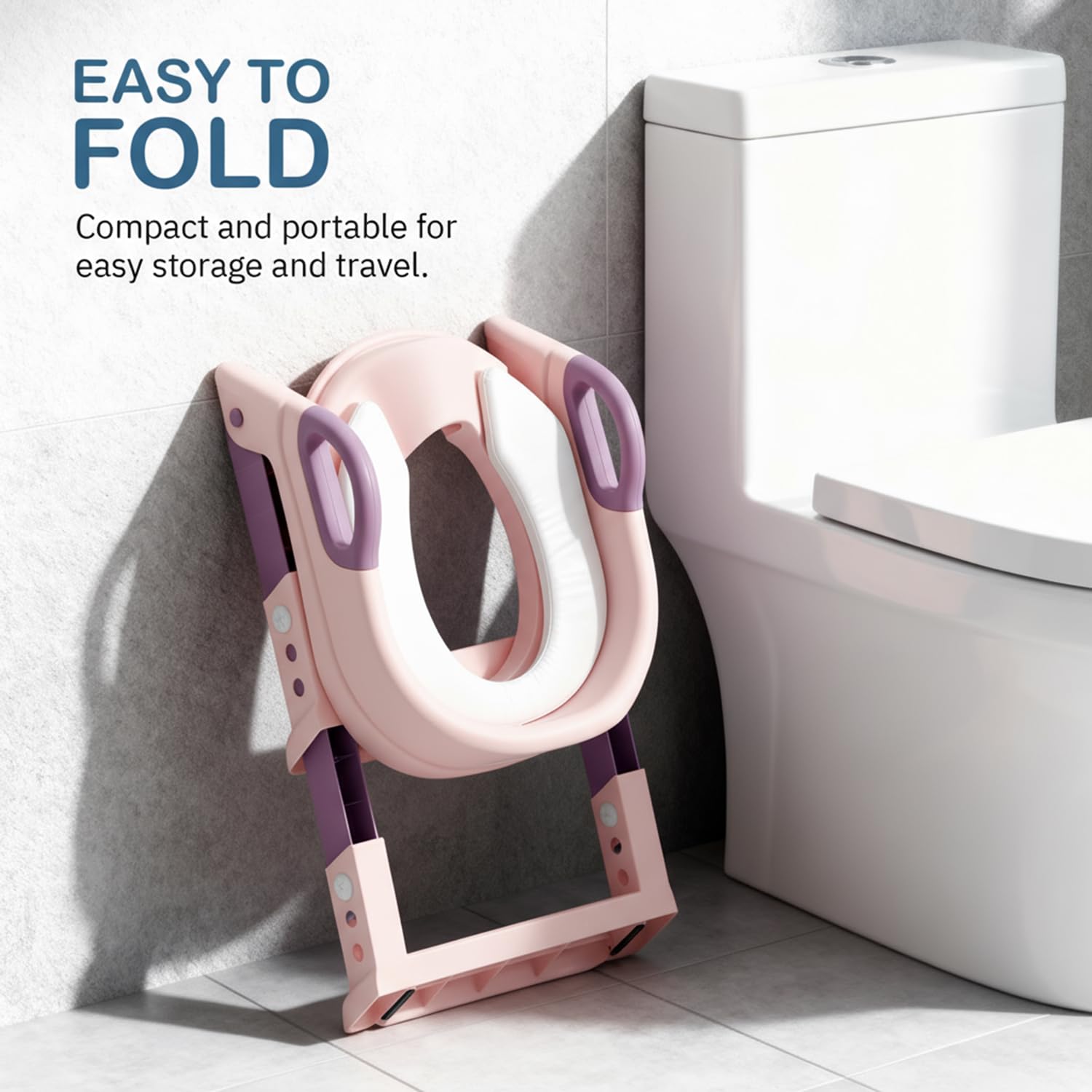 【Height Adjustable Ladder】: The Potty Toilet Seat gear adjustment is more convenient. The height of the two-stage pedal can be adjusted, according to the people’s height, it can be adjusted flexibly, and the little feet are not suspended. The Potty Seat is easy to fold and store