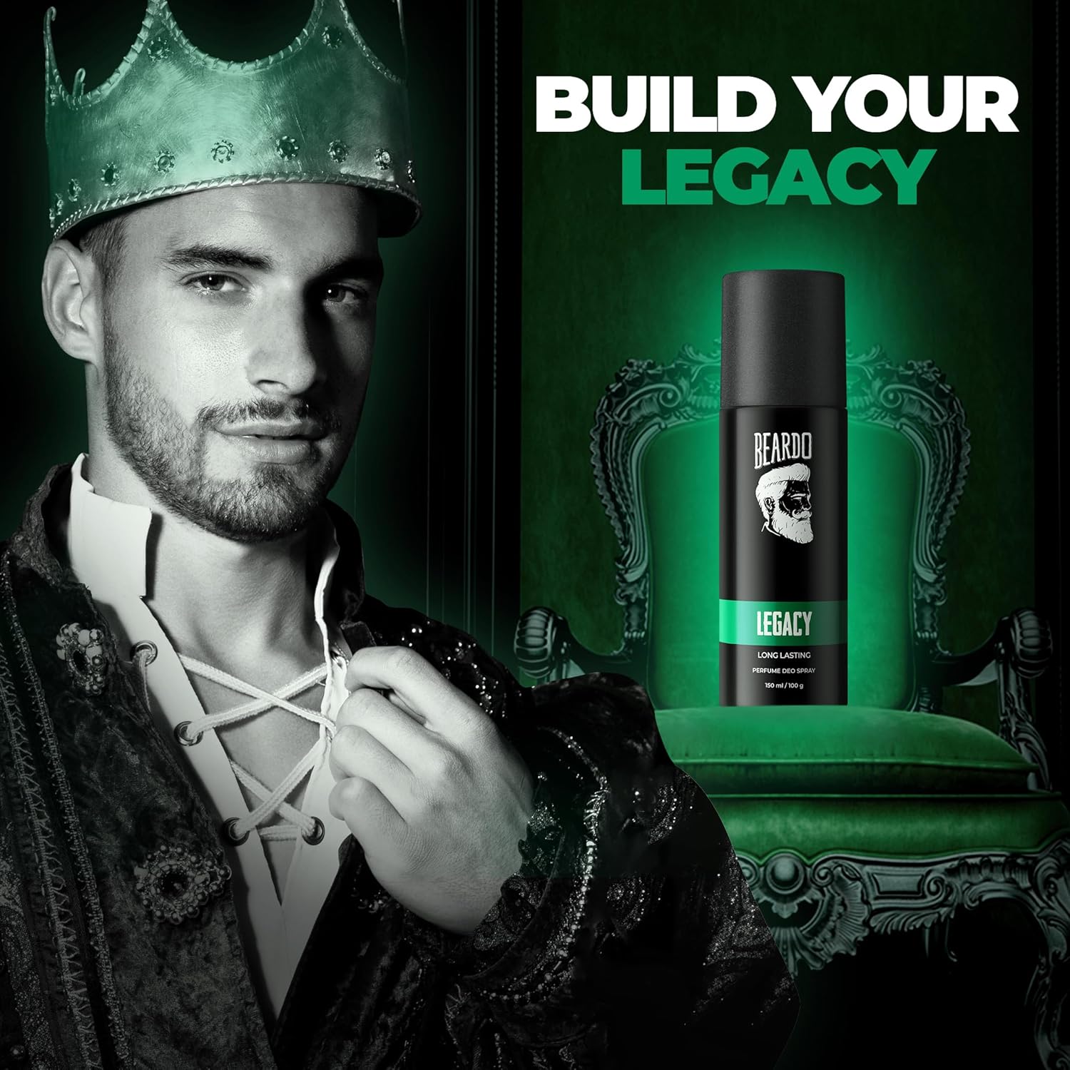Legacy Deo Spray : BUILD YOUR LEGACY with Beardo’s legacy Deo spray – an unforgettable blend of spicy, woody & fresh tones to keep you irresistable all day long!