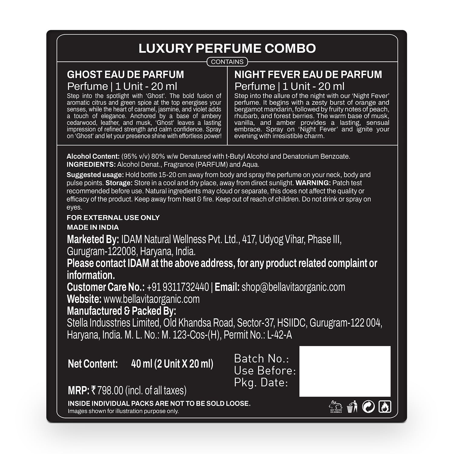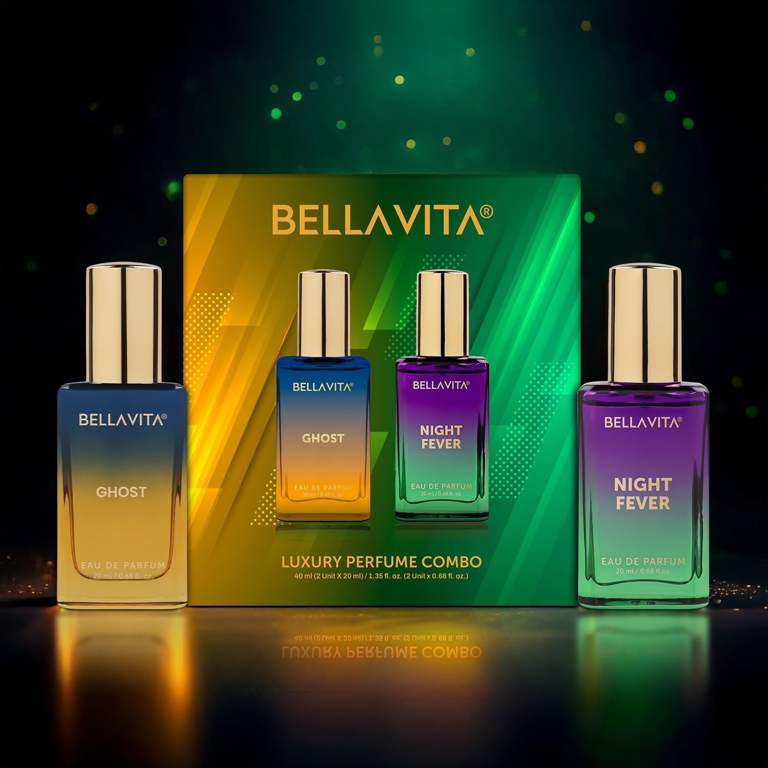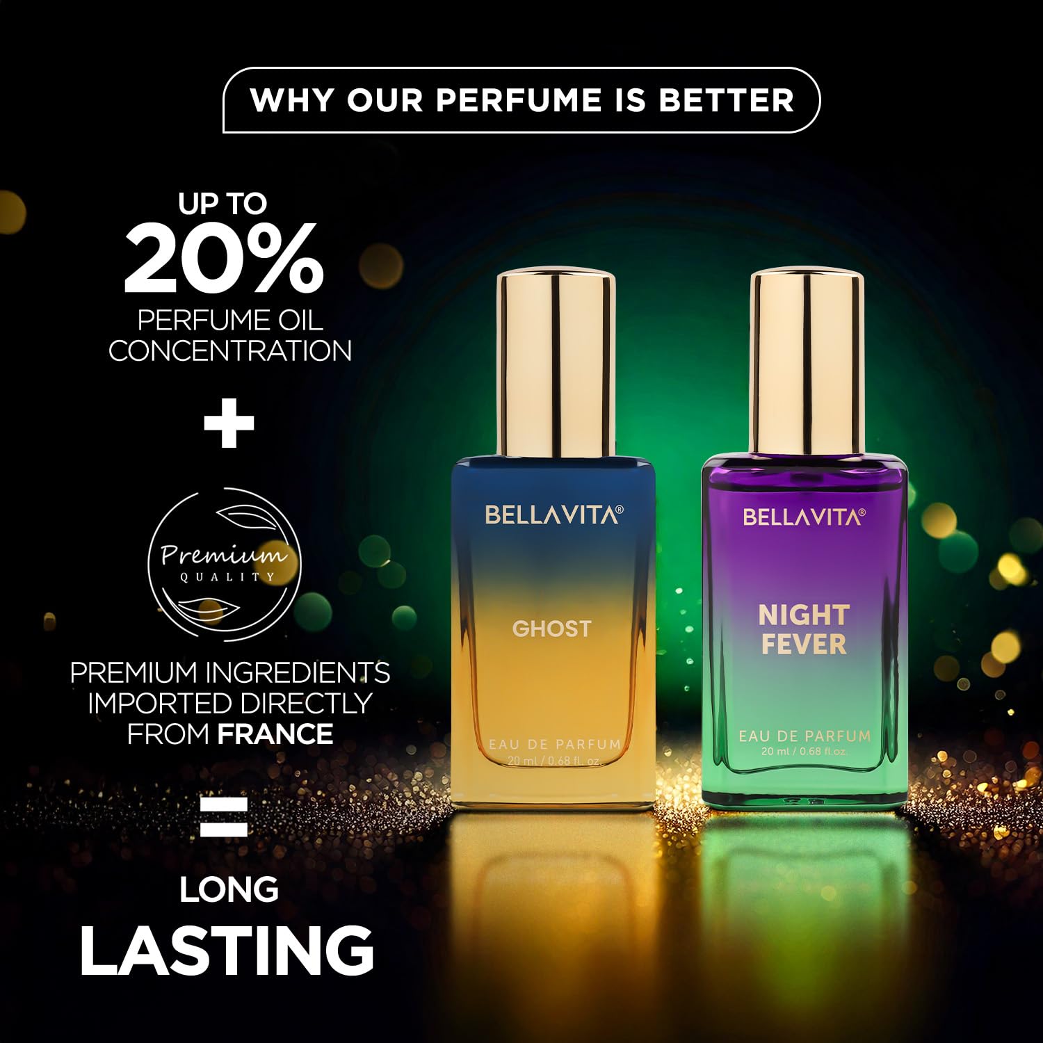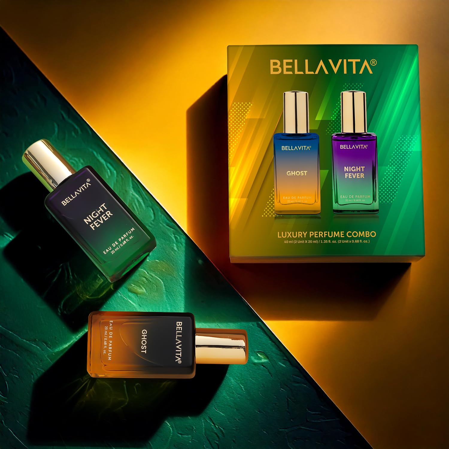 BELLAVITA Ghost & Night Fever | Long Lasting 2x20ml EDP Perfume for Man and Woman | with Bergamot, Cedarwood | Premium Unisex Fragrance for Men and Women