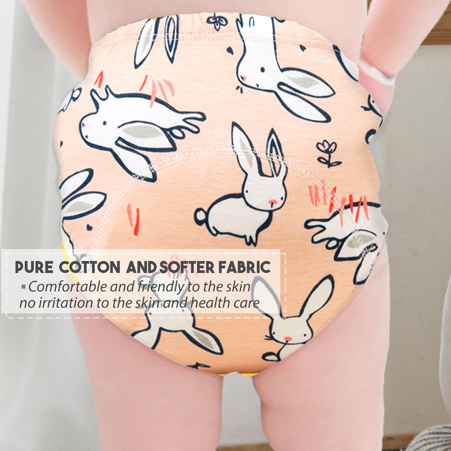 SAFE & GENTLE ON SKIN – Crafted from breathable cotton, these Potty Training Pants keep your baby comfortable and free from rashes. The Reusable Potty Training Pants for Kids are soft, lightweight, and ideal for everyday wear.