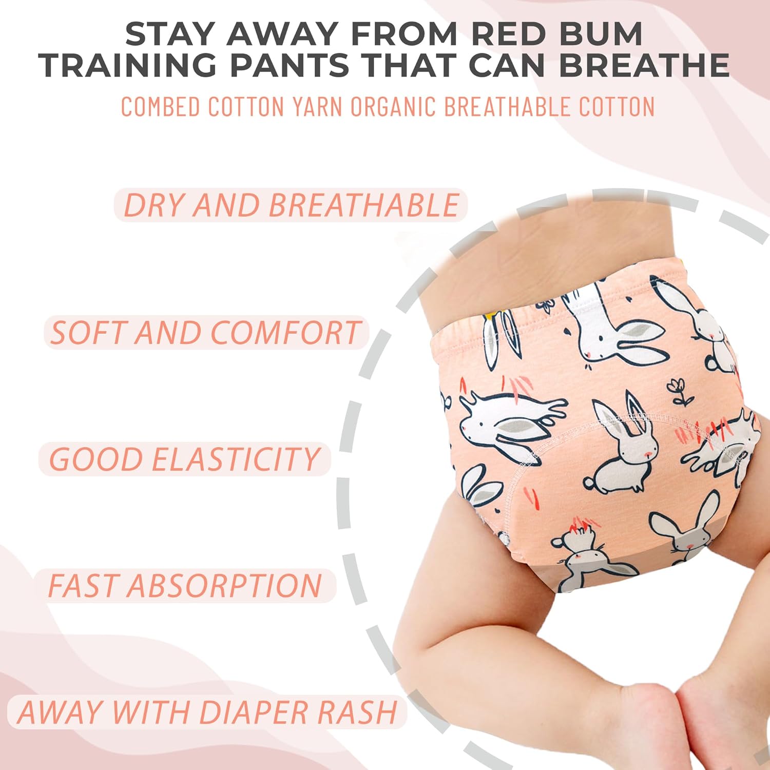 Bembika Baby Training Pant – Soft Cotton, Reusable, and Leak-Resistant Potty Training Pants for Kids Padded Underwear for Babies to Support a Smooth Diaper Free Transition (L | 18-24 Months Bunny Theme)