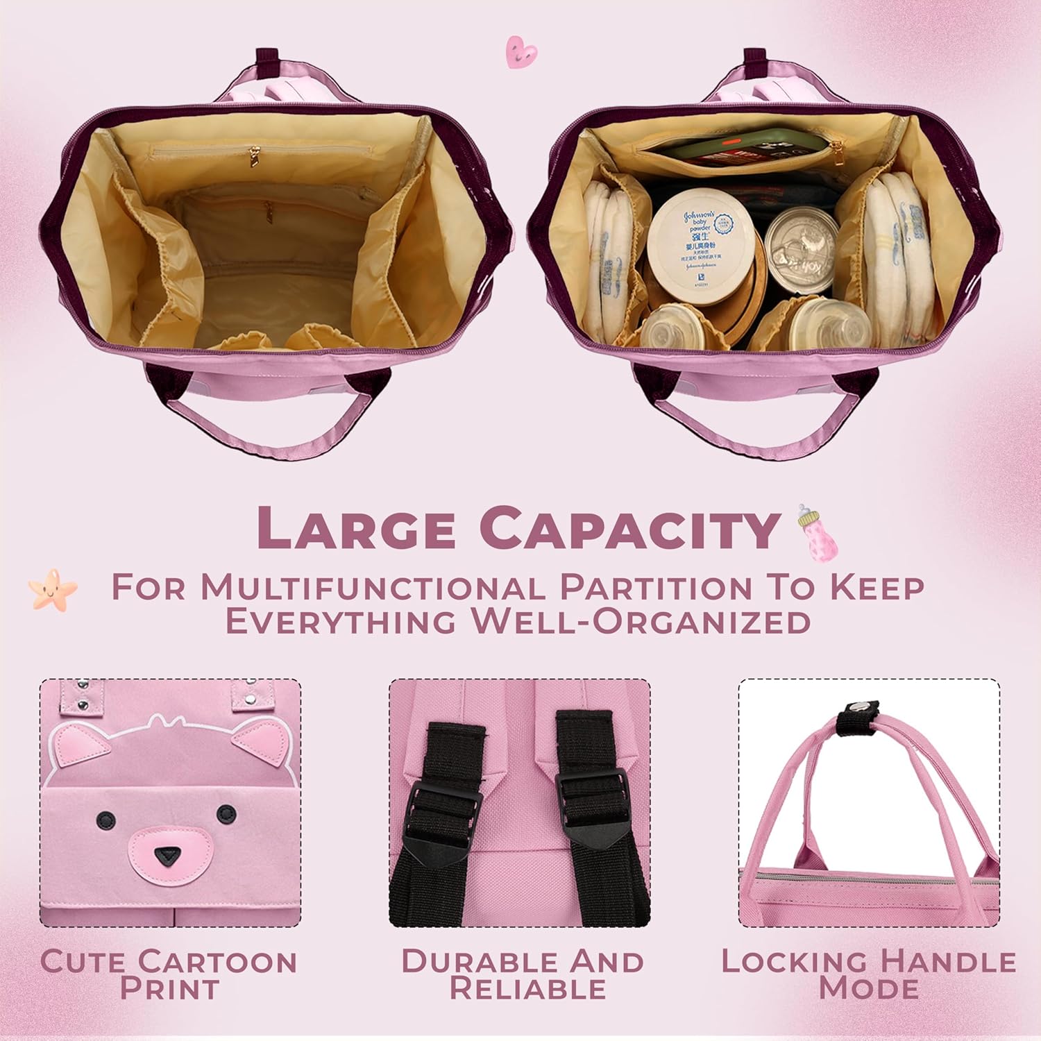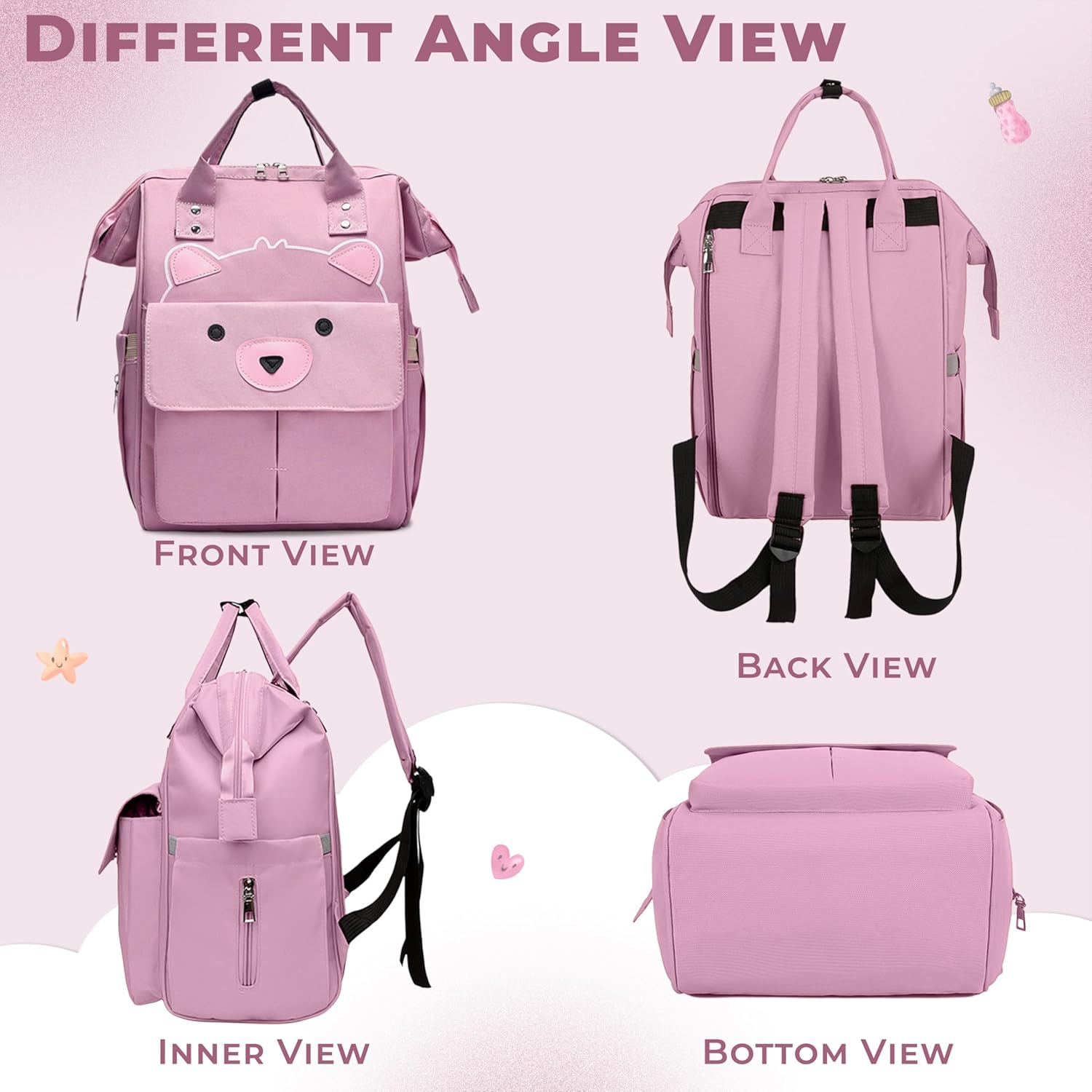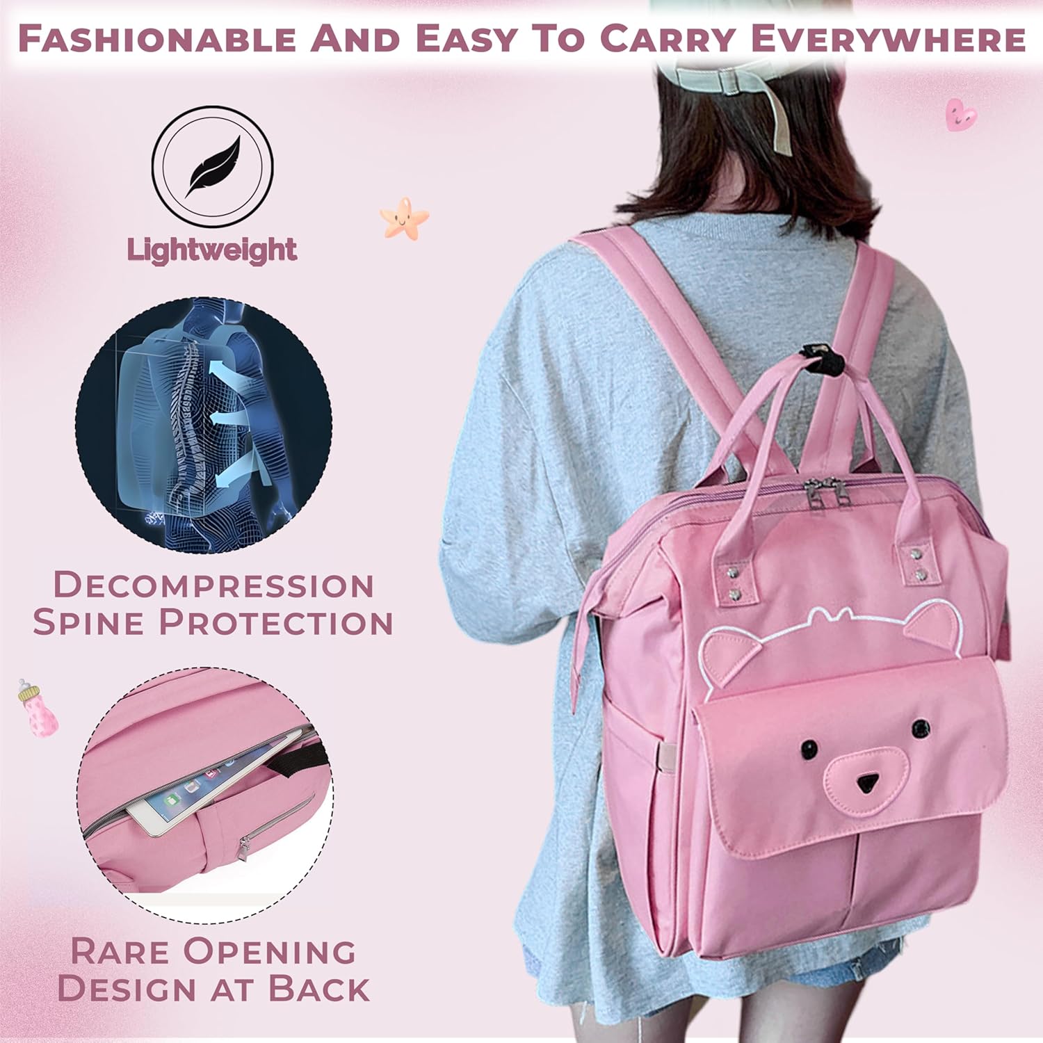BEMBIKA Diaper Bag The Ultimate Mother Bag for New Born Baby and Mothers Stylish Diaper Bags with Big Storage Capacity Make Diapering & Nursing Easy with Maternity Backpack-Bear Pink