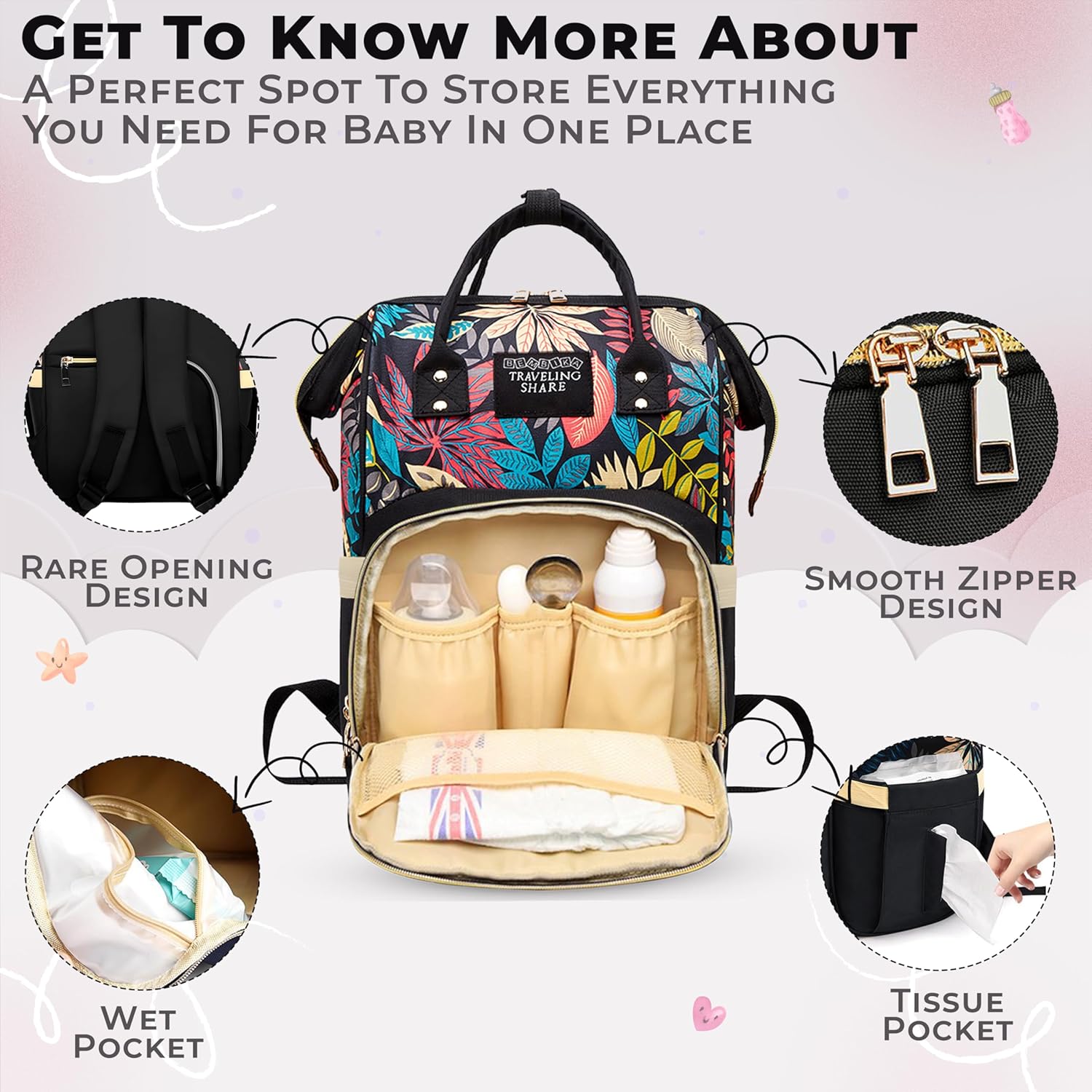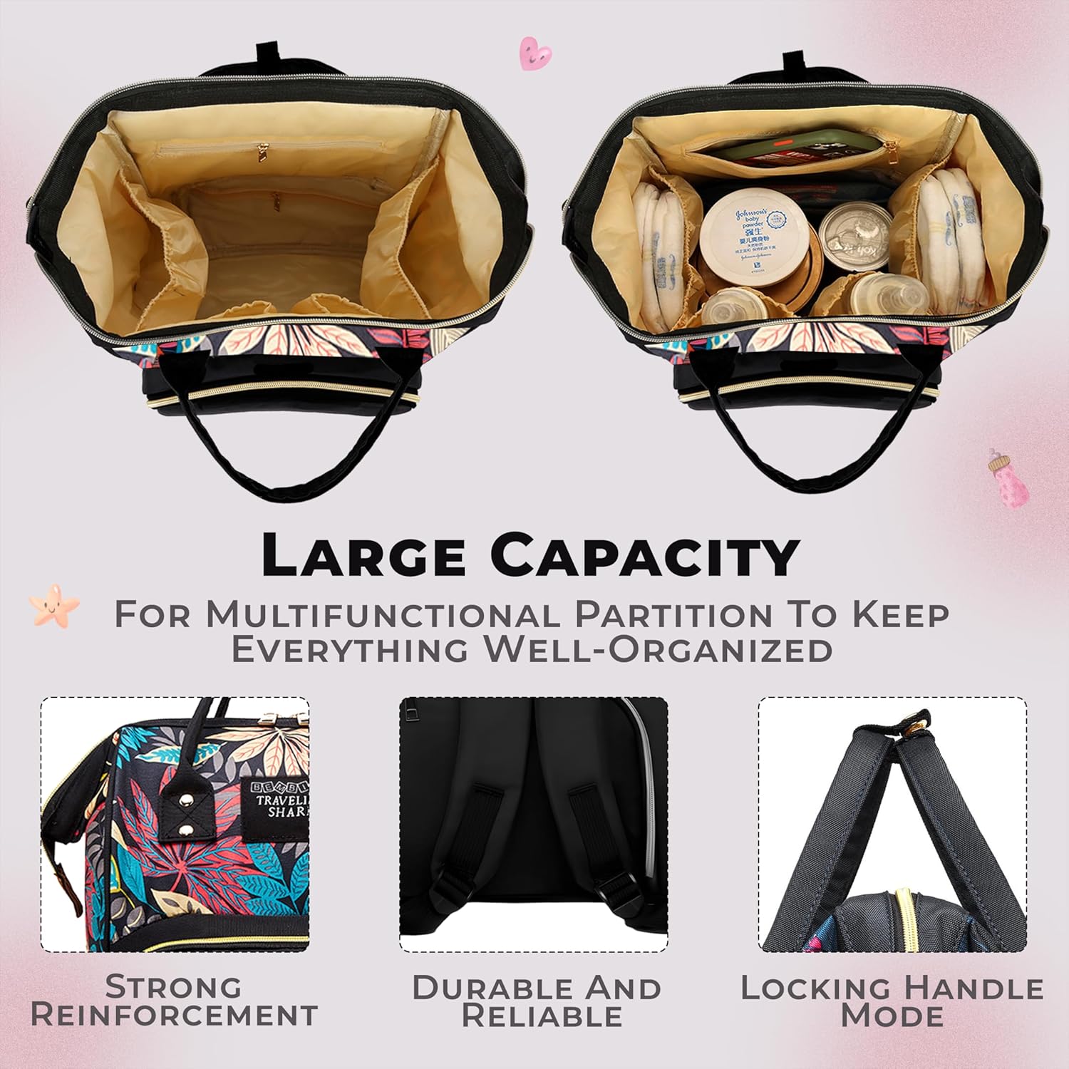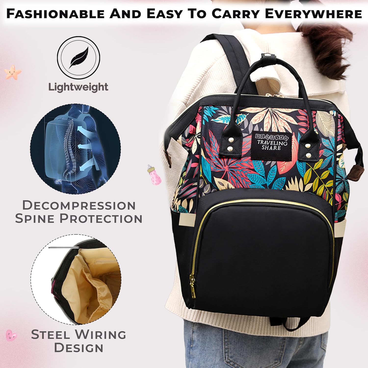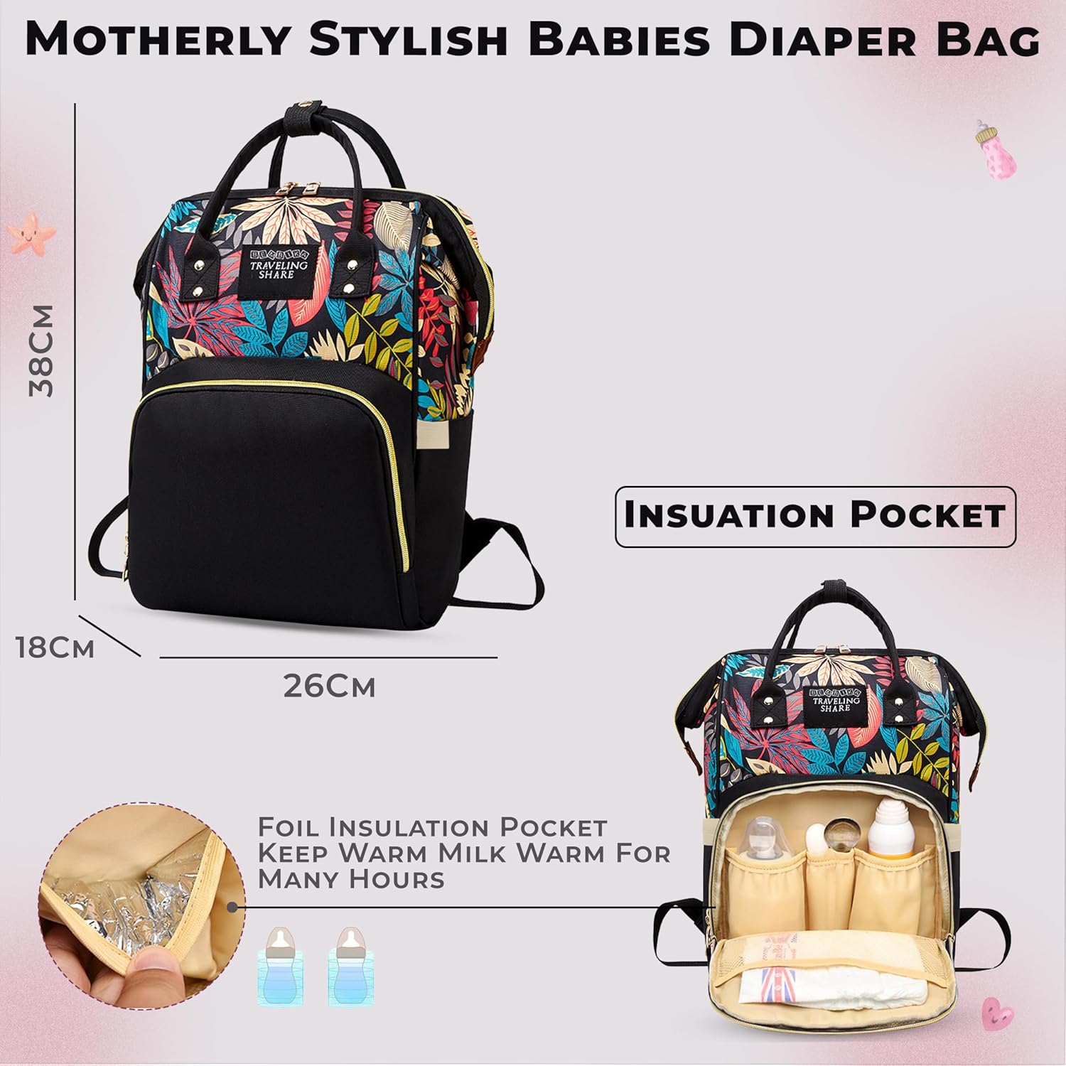 COMPACT AND STYLISH DESIGN – This Diaper Bag For Mothers is not only practical but also stylish. Its compact design makes it easy to carry, while still offering ample space. As a Kids Diaper Bag, it combines fashion with function, ensuring you look good while keeping all your baby essentials organized.